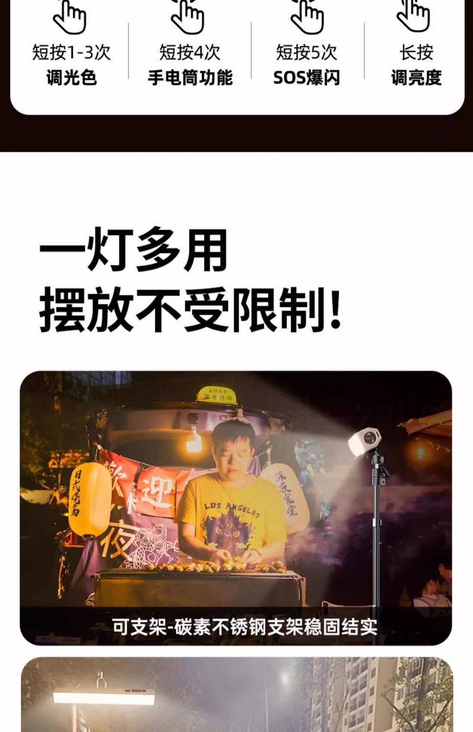 야외 캠핑 마그네틱 조명 LED 충전 비상 조명 긴 내구성 모바일 휴대용 스트리트 스톨 야간 시장 조명