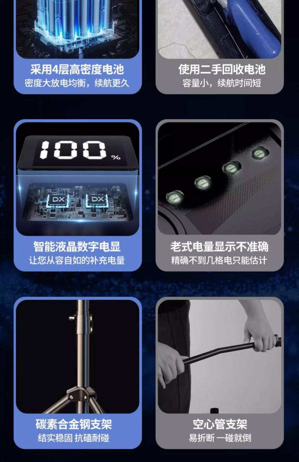 • 향상된 버전 - 32CM 단일 조명 5000W + 팬/틸트 스티어링 헤드 + 브래킷 2.1m개 [배터리 수명 7-8시간]
