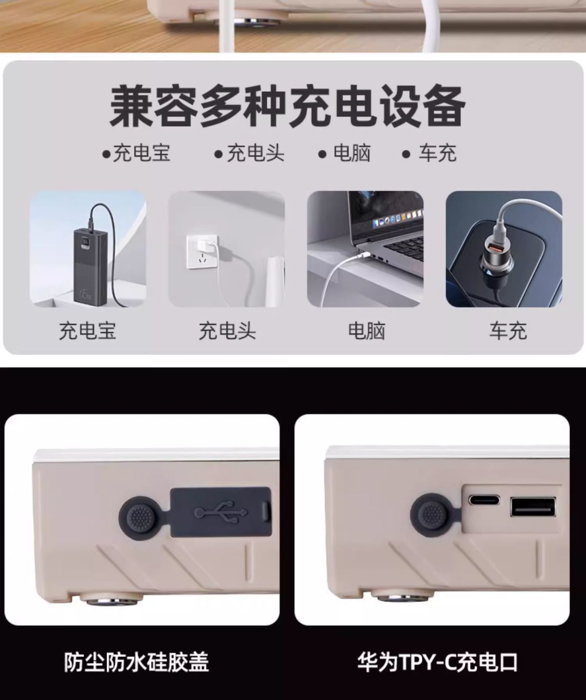 • 5단계 3색 조명 및 어두움 조절 가능 + 지능형 디지털 디스플레이 + 휴대폰 충전 가능