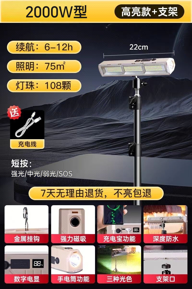 • 향상된 버전 - 22CM 단일 조명 2000W + 팬/틸트 스티어링 헤드 + 브래킷 2.1m개 [배터리 수명 6-7시간]