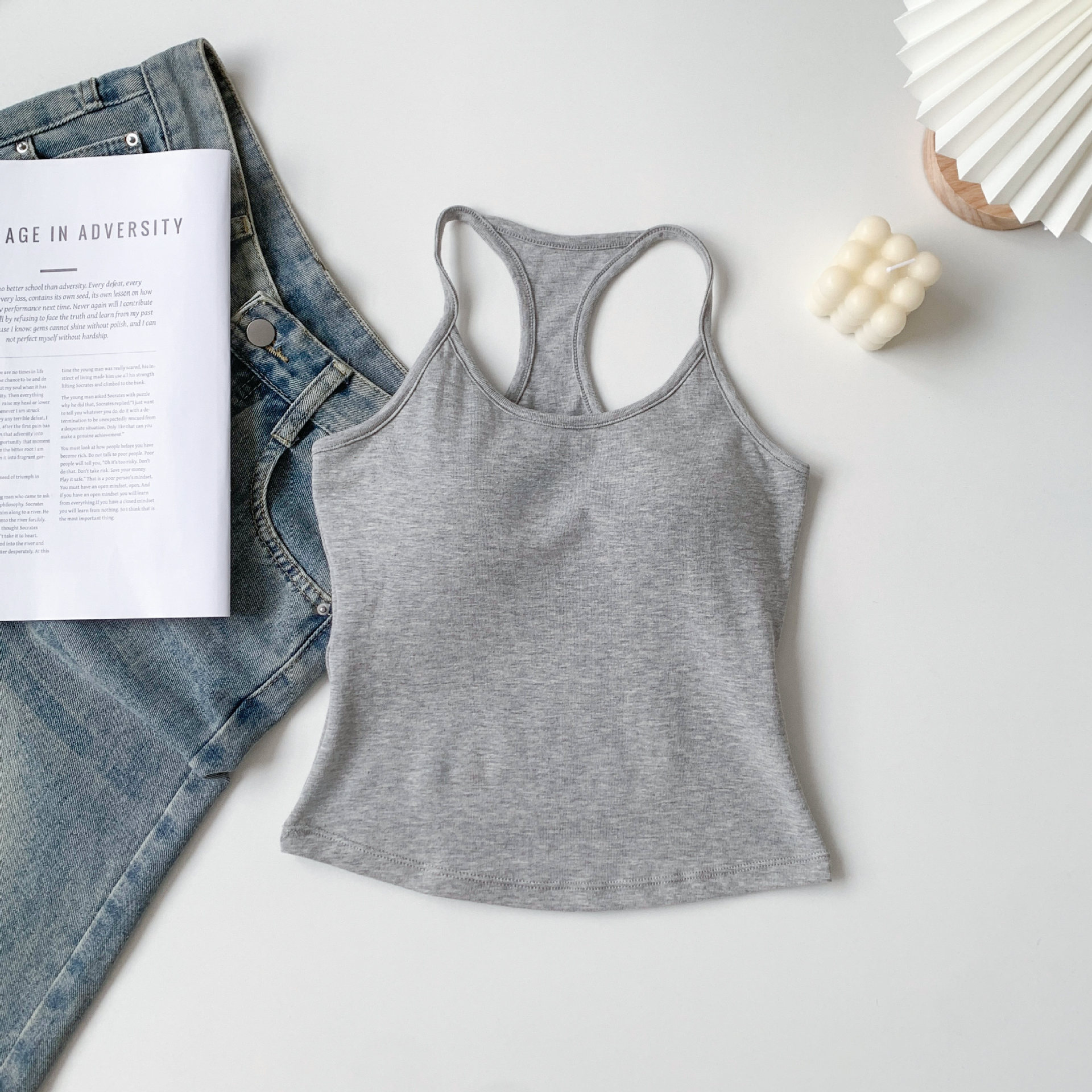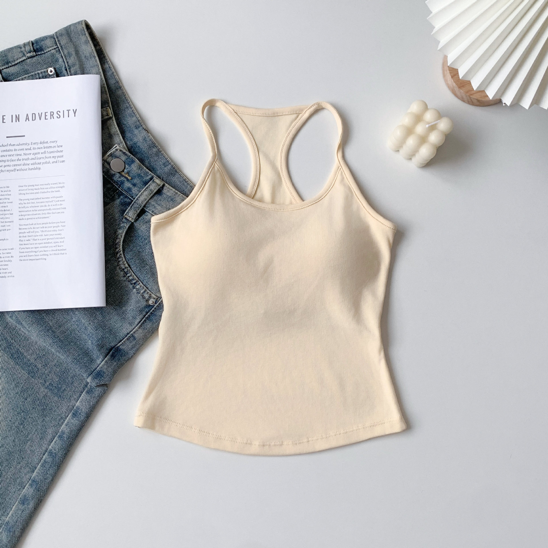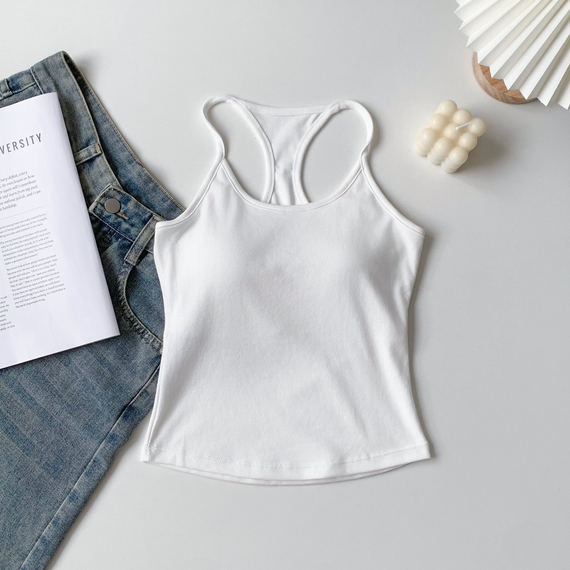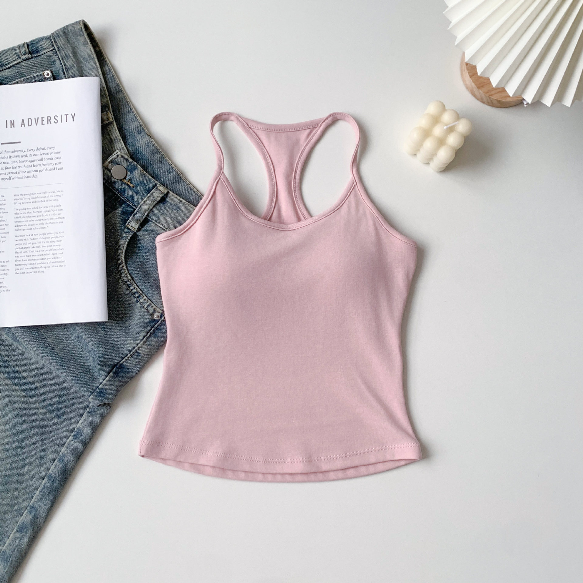 [패션걸] 아이자형 조끼 여성 민소매 자립형 가슴 패드 슈퍼 소프트 에어홀 패드 기질 한국 슬림