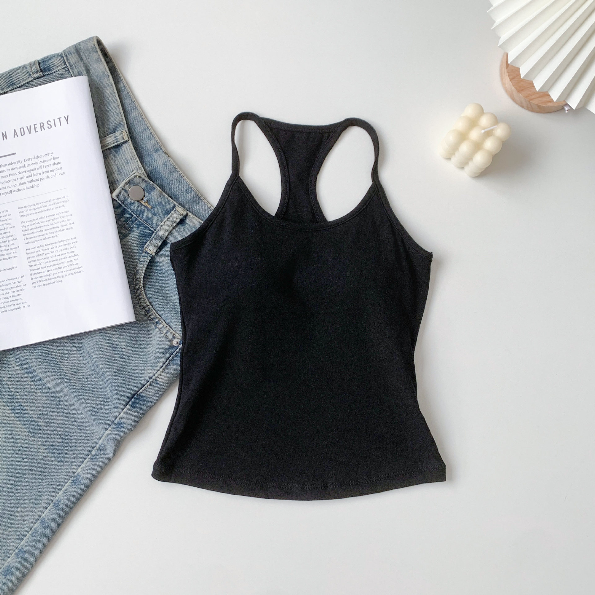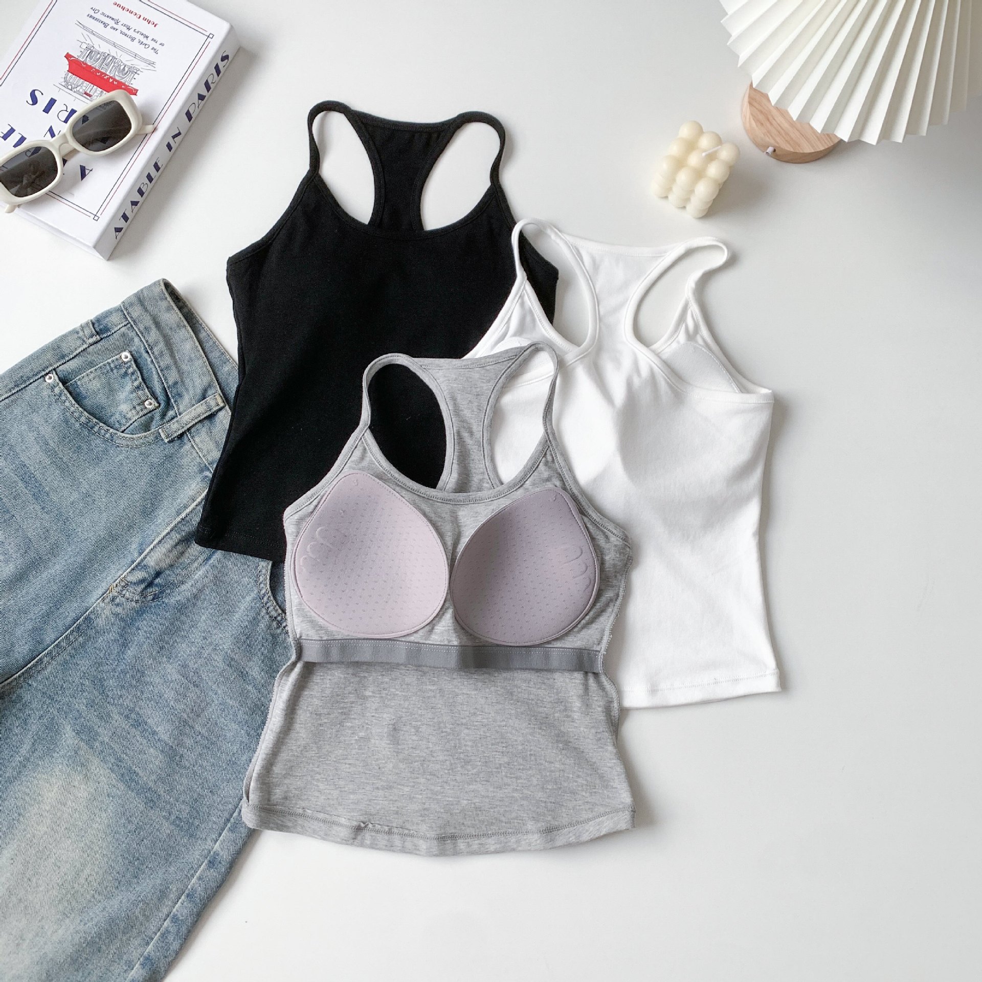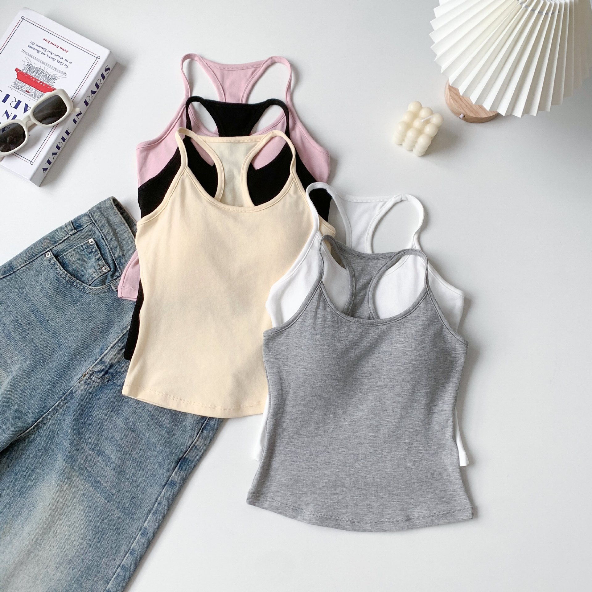[패션걸] 아이자형 조끼 여성 민소매 자립형 가슴 패드 슈퍼 소프트 에어홀 패드 기질 한국 슬림스토어 가기