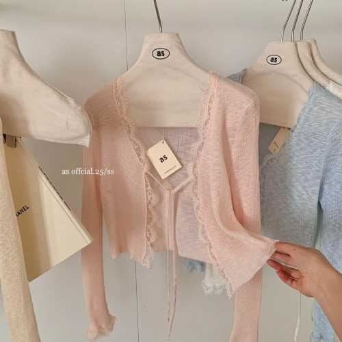 2026 봄 여름 레이스 숏 니트 스웨터와 스커트, 가디건, 고급스러운 스몰 셔츠, 매우 예쁘고 부드럽고 독특한 탑스토어 가기