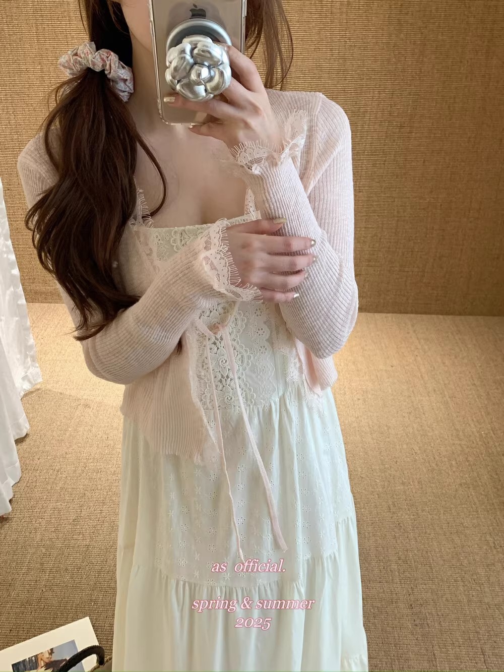 2026 봄 여름 레이스 숏 니트 스웨터와 스커트, 가디건, 고급스러운 스몰 셔츠, 매우 예쁘고 부드럽고 독특한 탑