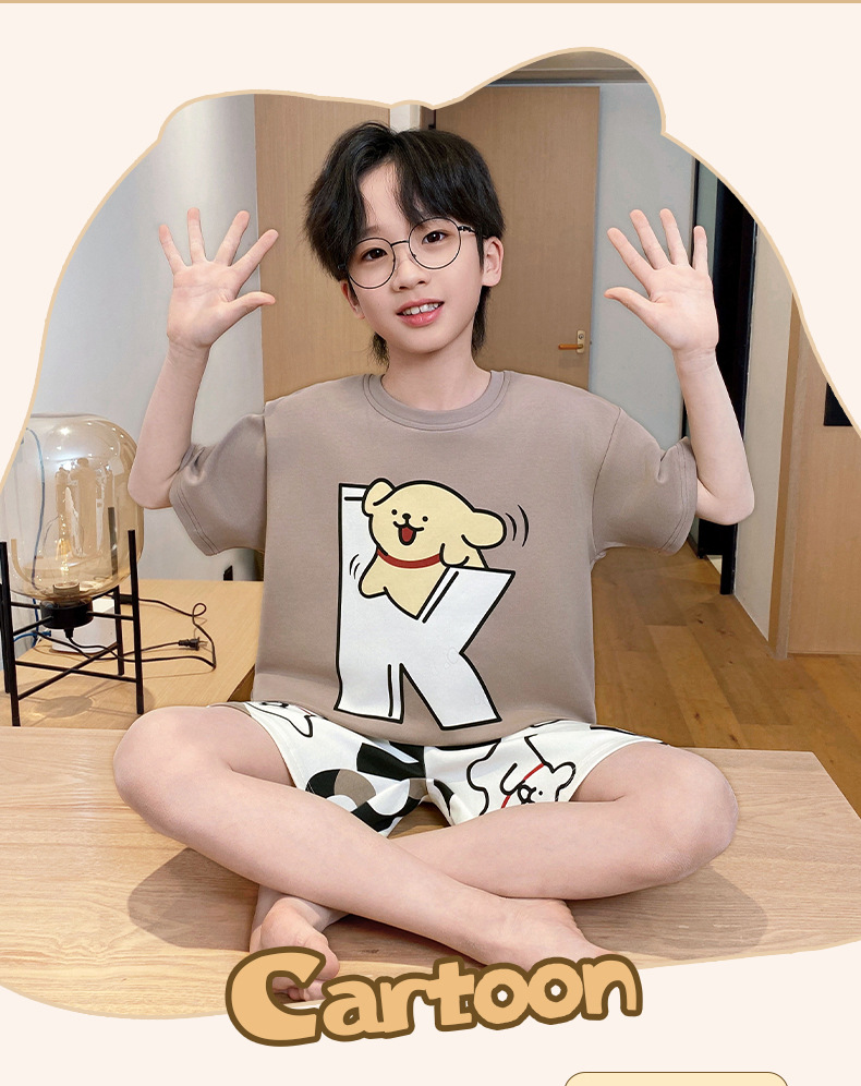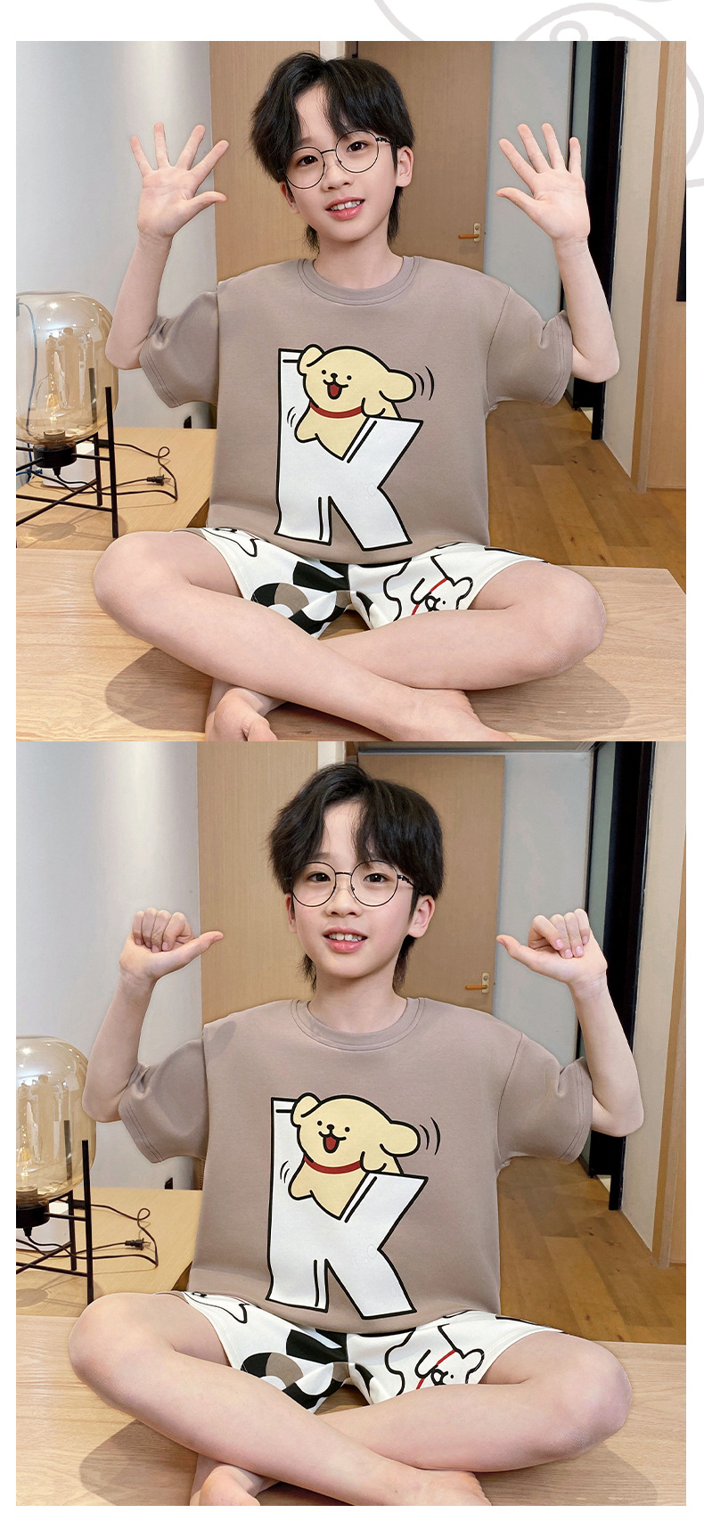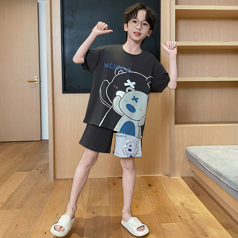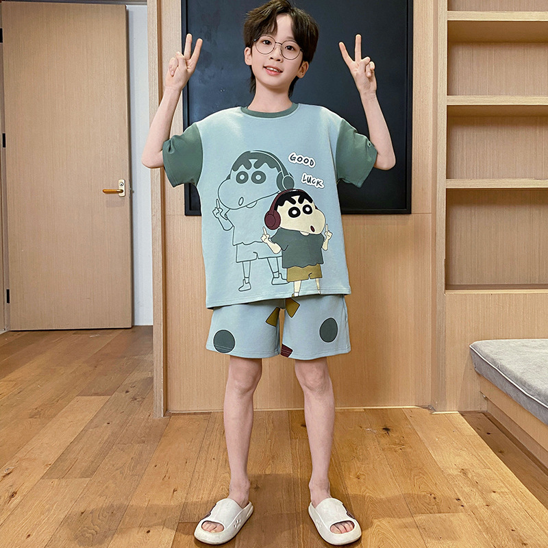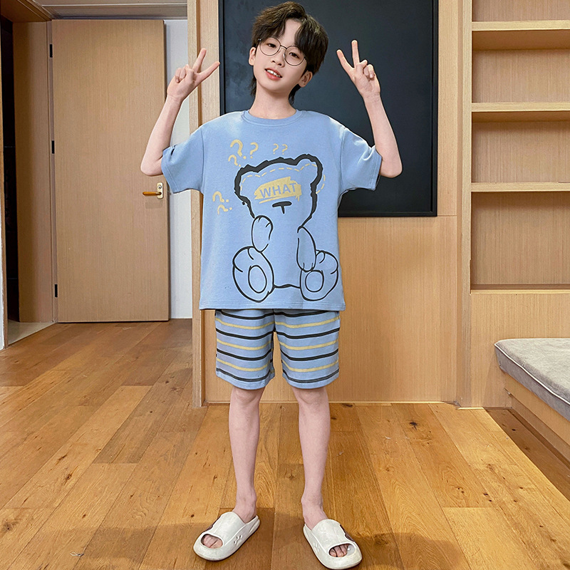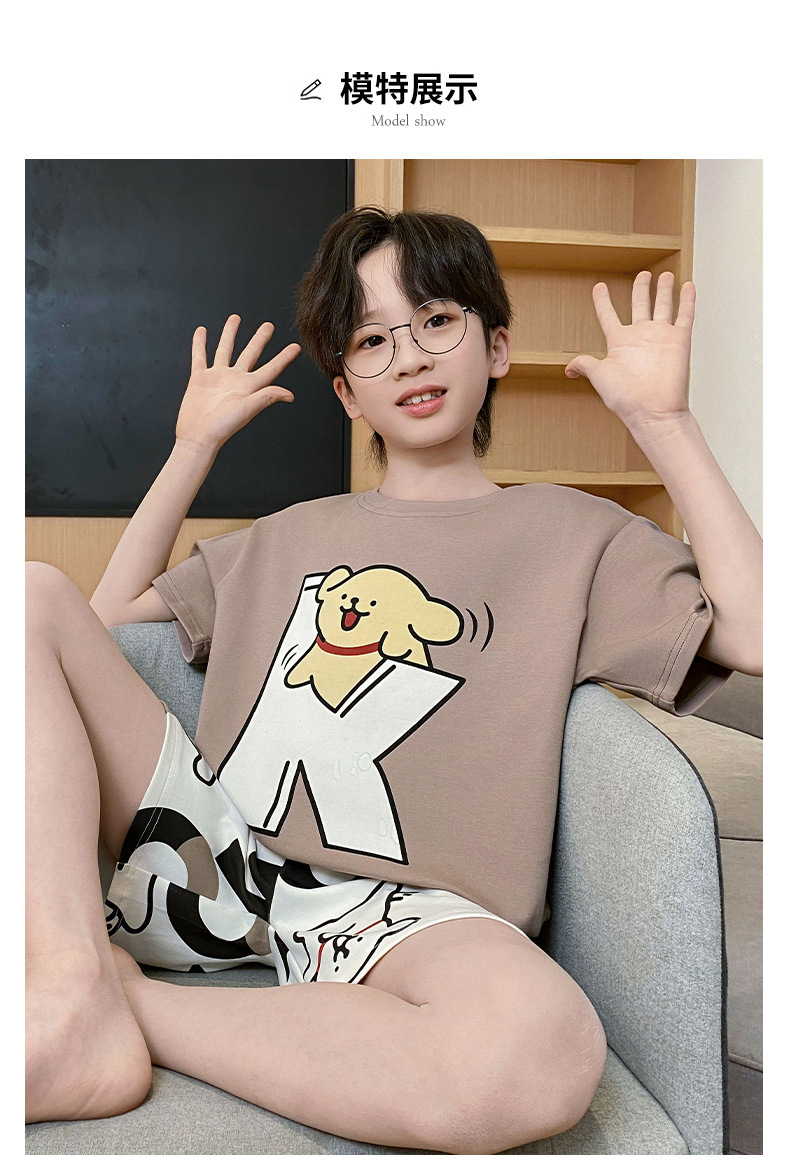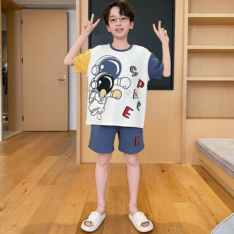 2025 여름 신제품 순수 코튼 만화 소년 잠옷 여름 반팔 어린이 소형, 중형 및 대형 어린이 여름 청소년 대형스토어 가기