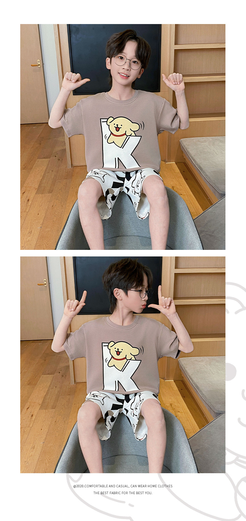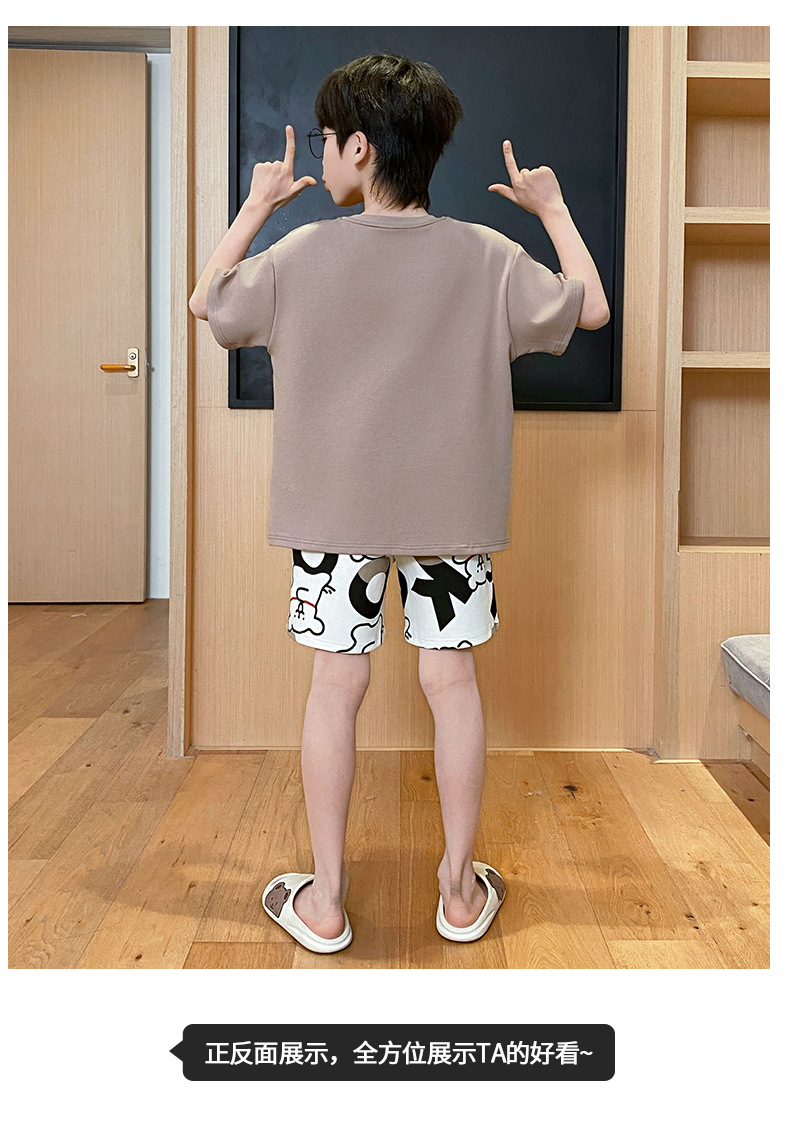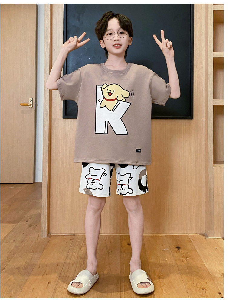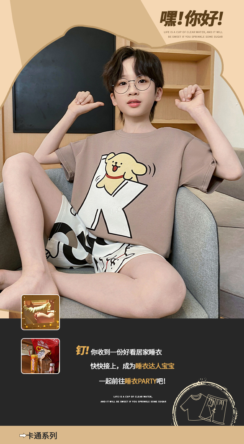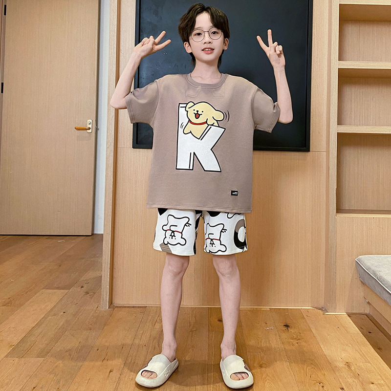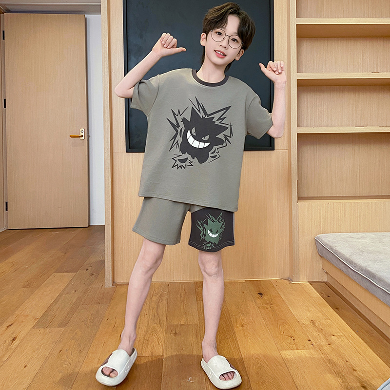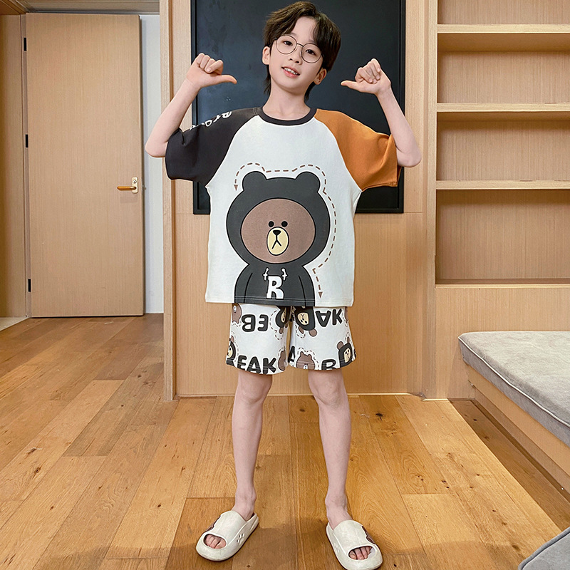 2025 여름 신제품 순수 코튼 만화 소년 잠옷 여름 반팔 어린이 소형, 중형 및 대형 어린이 여름 청소년 대형스토어 가기