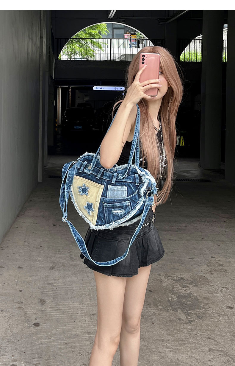 사랑 레트로 오래된 데님 캔버스 가방 틈새 디자인 유행 브랜드 싱글 숄더 크로스 바디 백 올 매치 한국식 핸드백스토어 가기