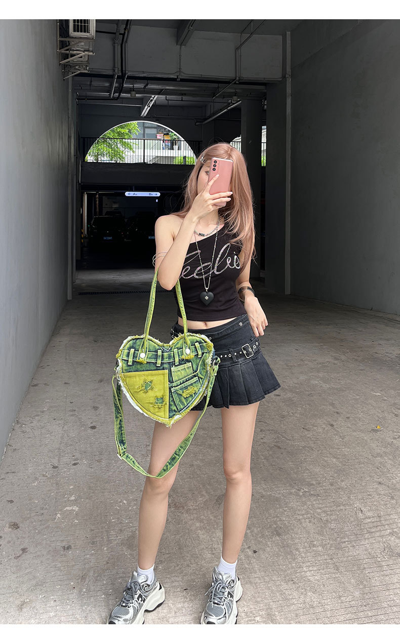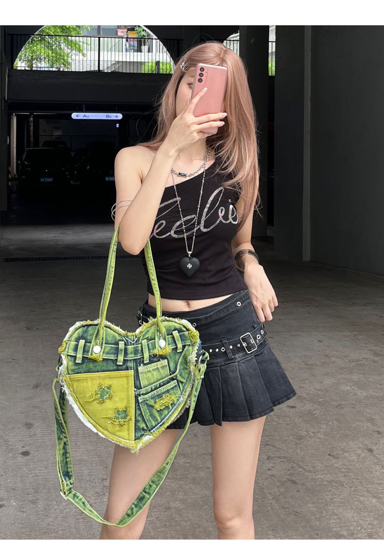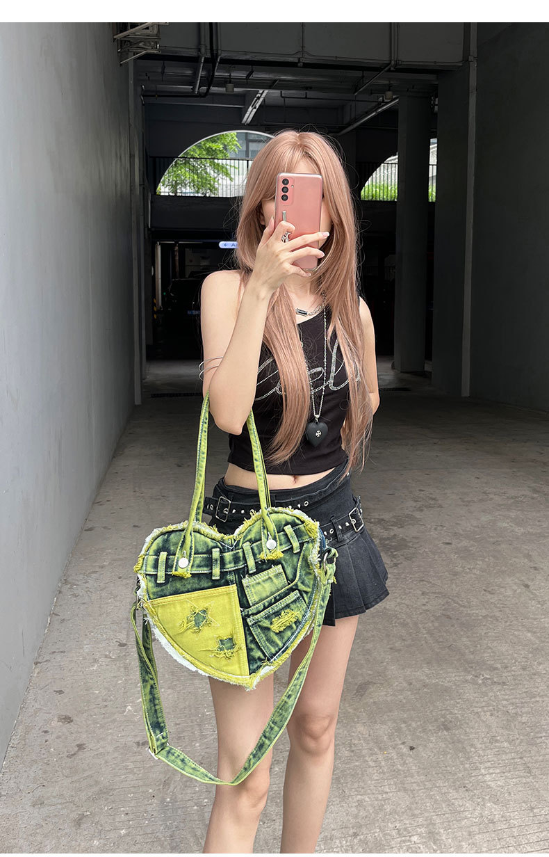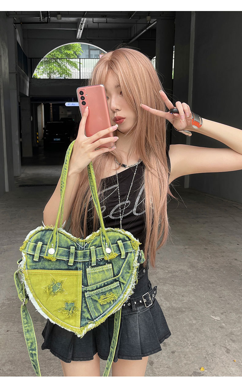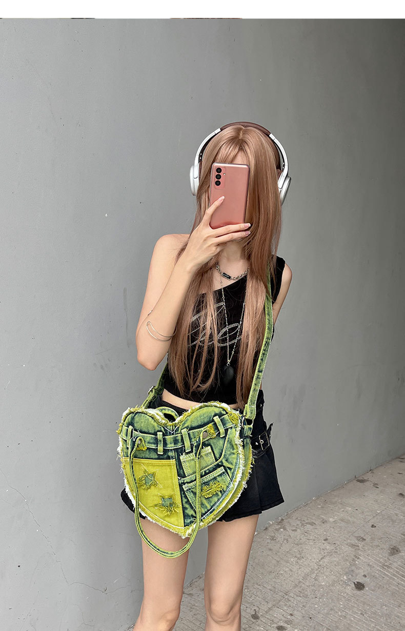 사랑 레트로 오래된 데님 캔버스 가방 틈새 디자인 유행 브랜드 싱글 숄더 크로스 바디 백 올 매치 한국식 핸드백
