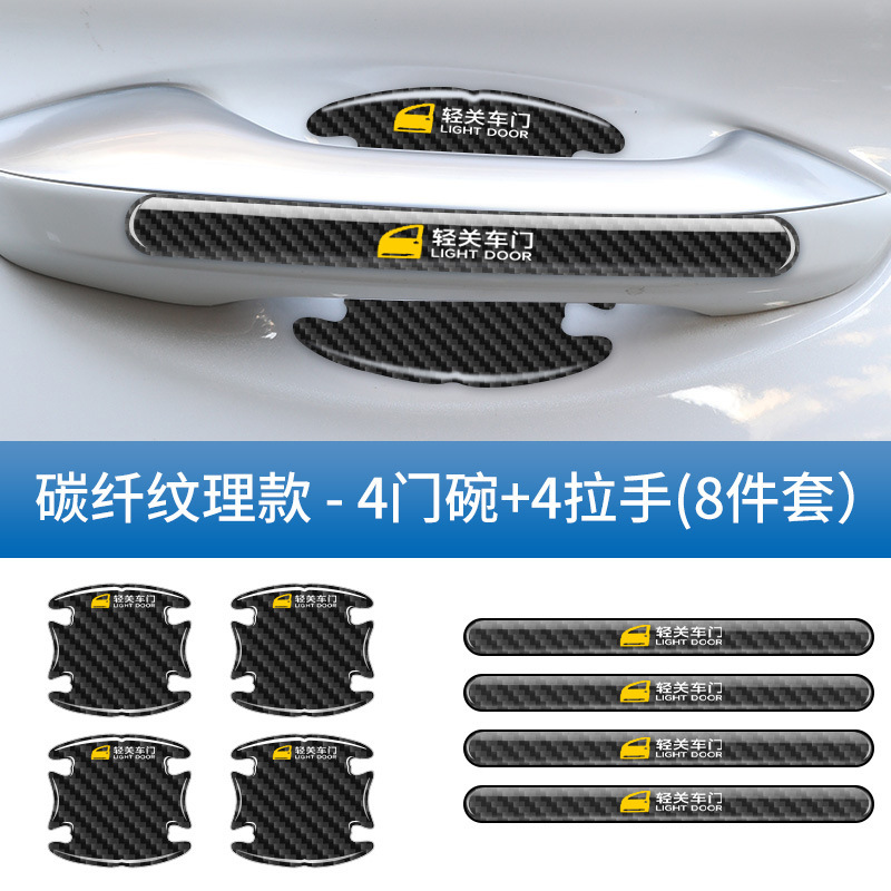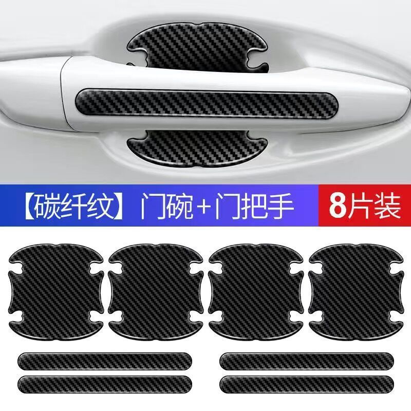 • 탄소 섬유 검정색 접착제 도어 그릇 손잡이 [도어 그릇 1세트, 4개 + 손잡이 4개] 자동차 로고 비고