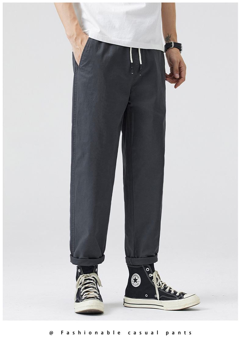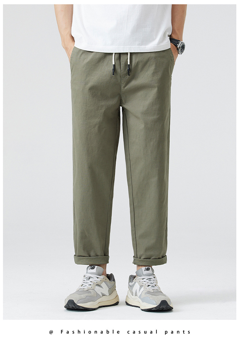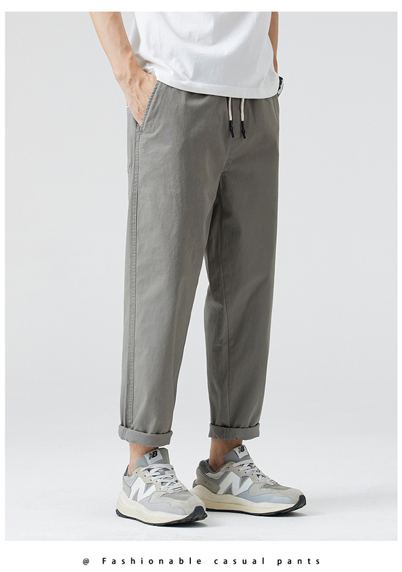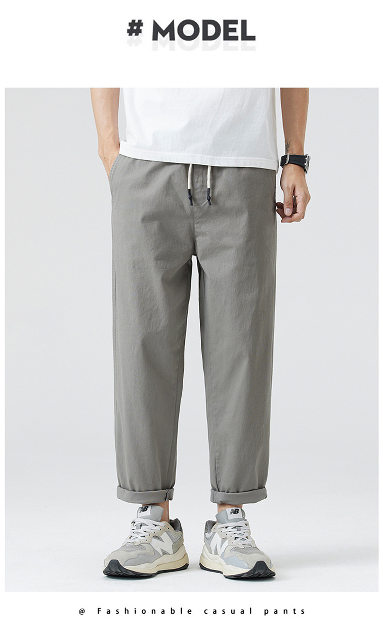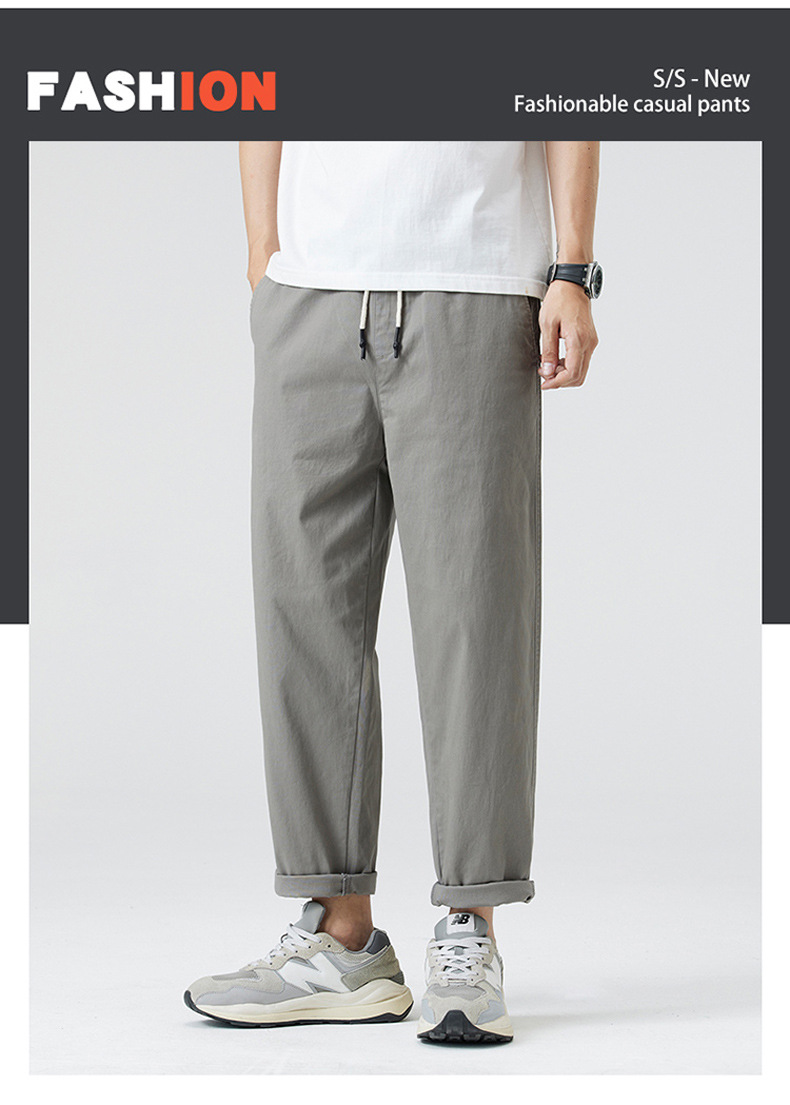 순수 코튼 스트레이트 팬츠 남성 2025 봄 여름 얇은 루즈 테이퍼 9부 팬츠 캐주얼 스포츠 팬츠 스트레이트 팬츠스토어 가기