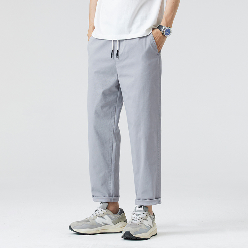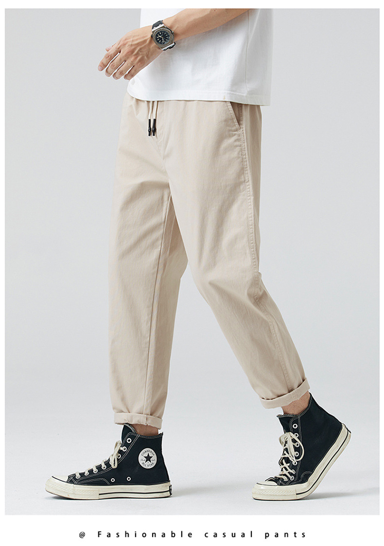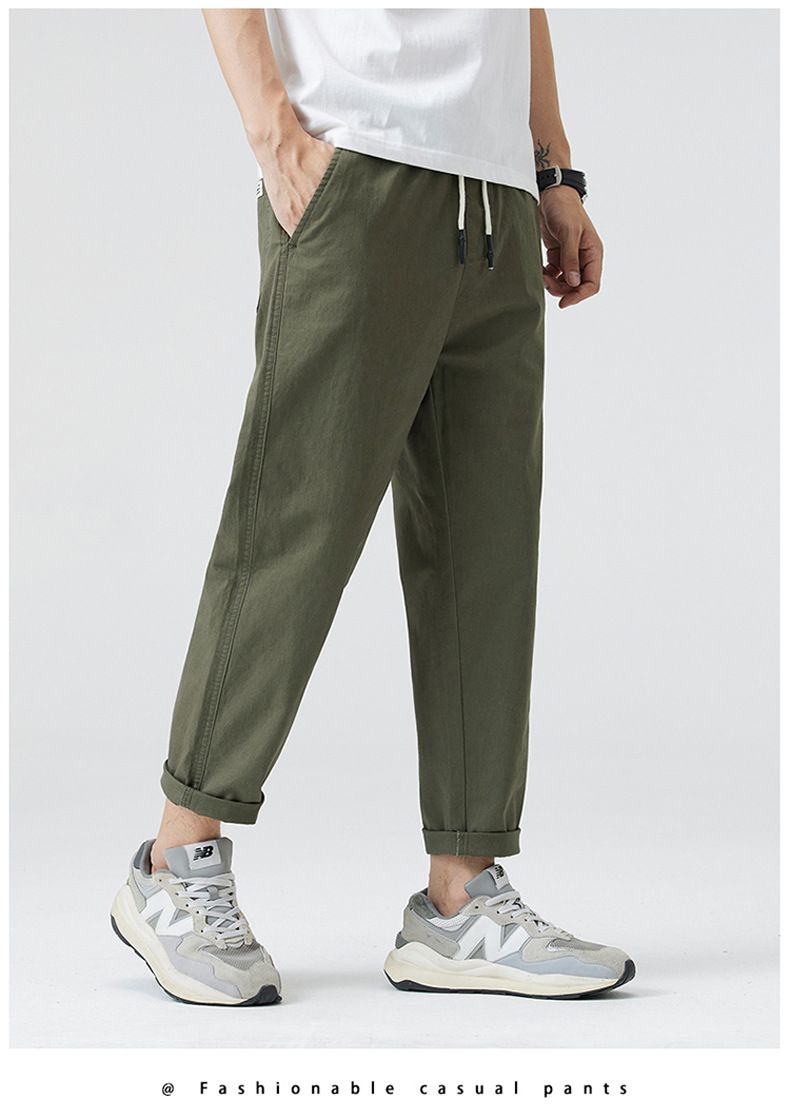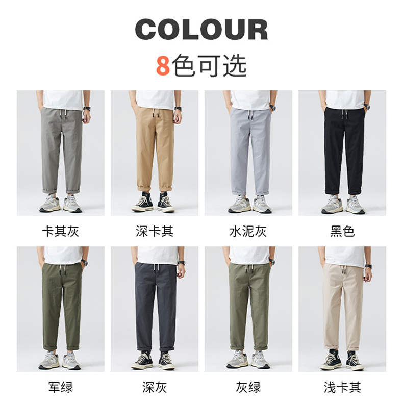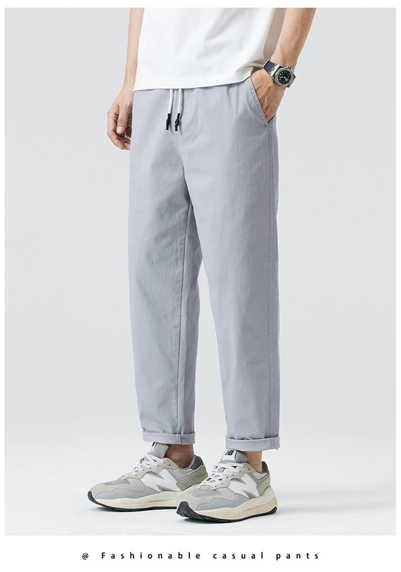 순수 코튼 스트레이트 팬츠 남성 2025 봄 여름 얇은 루즈 테이퍼 9부 팬츠 캐주얼 스포츠 팬츠 스트레이트 팬츠스토어 가기