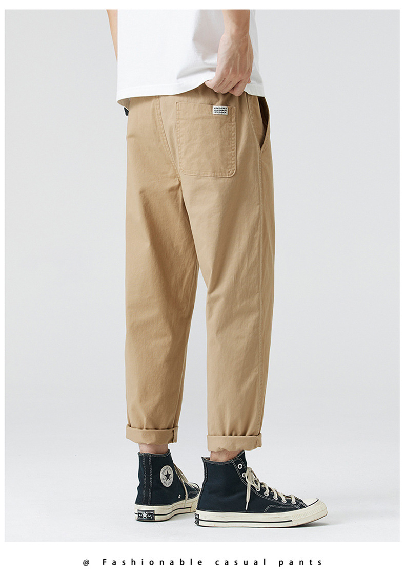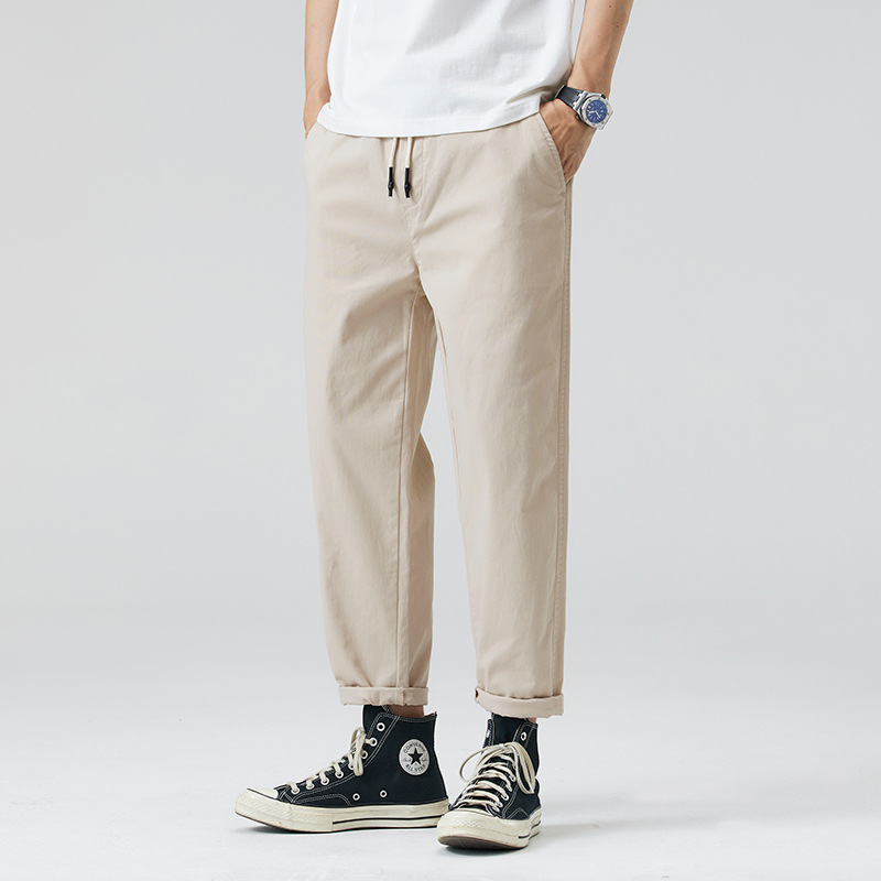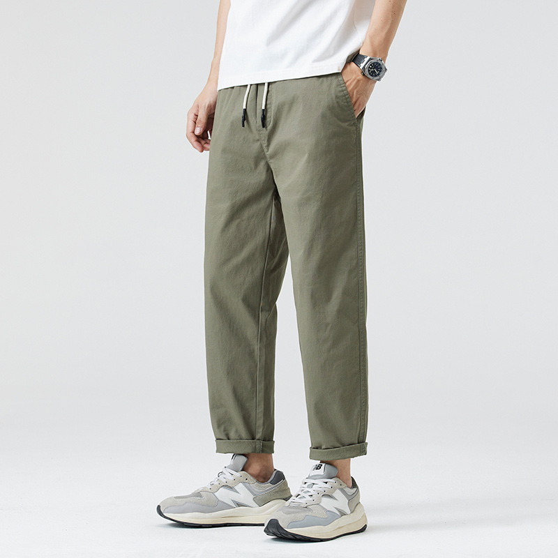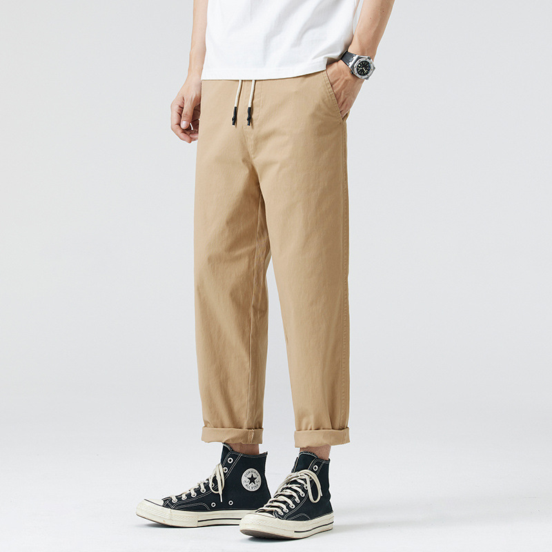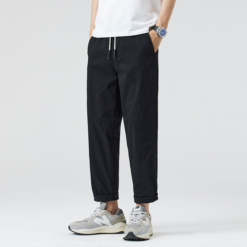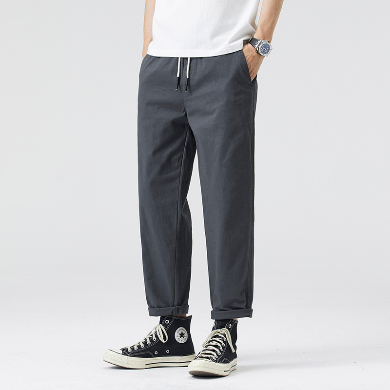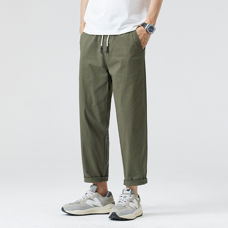 순수 코튼 스트레이트 팬츠 남성 2025 봄 여름 얇은 루즈 테이퍼 9부 팬츠 캐주얼 스포츠 팬츠 스트레이트 팬츠스토어 가기