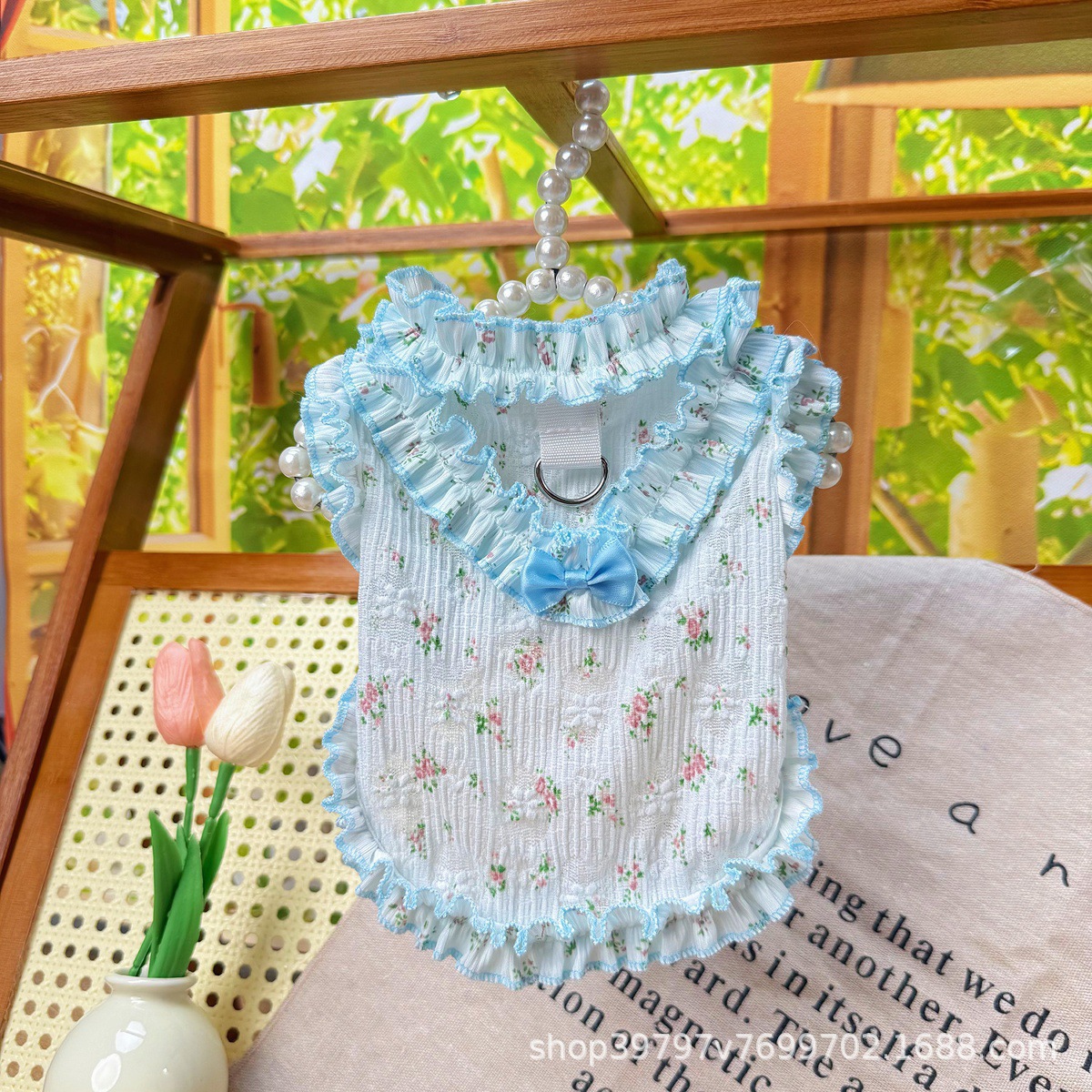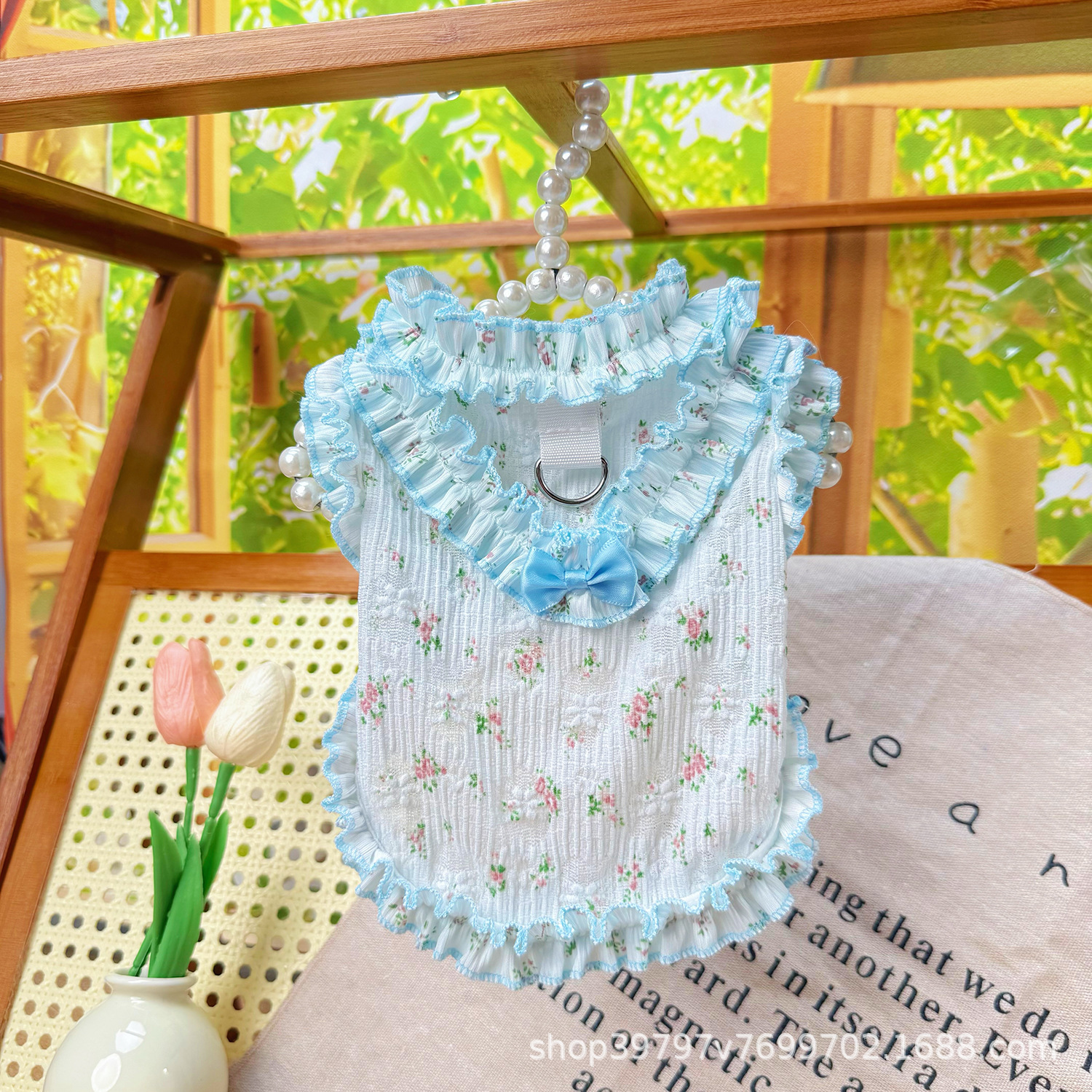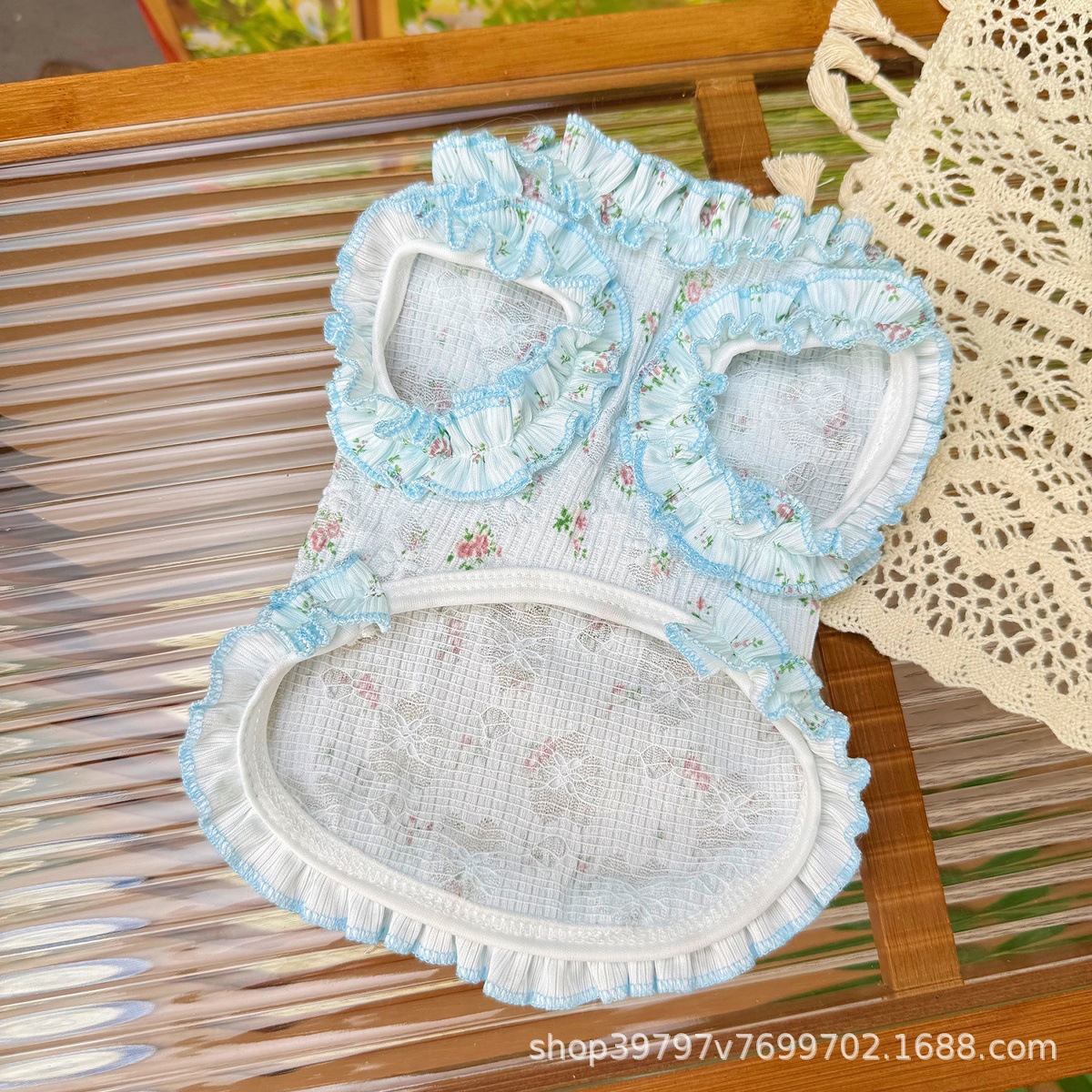 애완 동물 옷 봄과 여름 얇은 중공 조끼 스커트 시원한 옷 개 고양이 옷 냉각 통기성 자외선 차단제