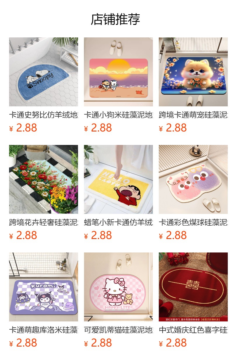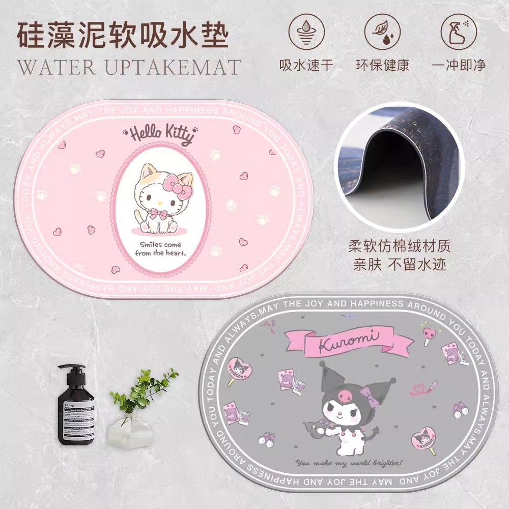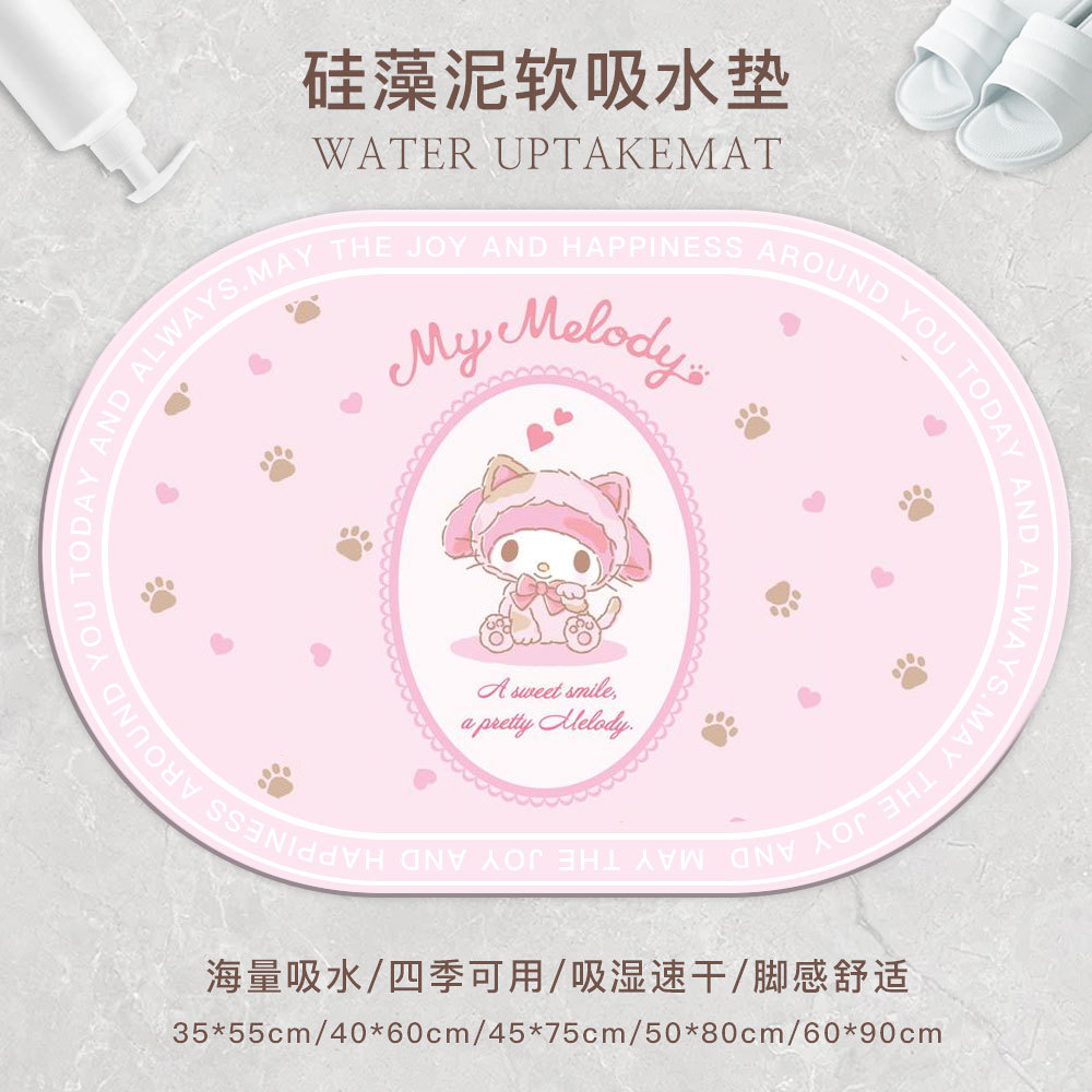 만화 규조토 진흙 귀여운 산리오 바닥 매트 욕실 흡수성 미끄럼 방지 매트 입구 문 얼룩 방지 및 내마모성 바닥 매트스토어 가기