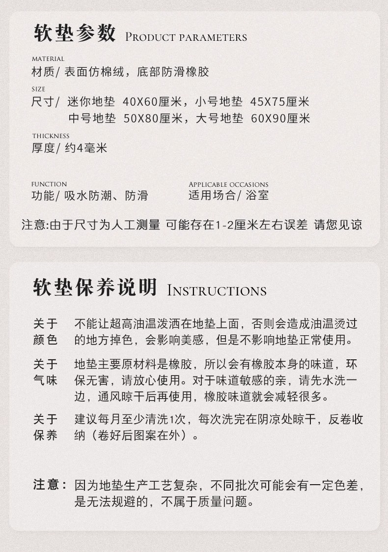 • 50*80cm(규조진흙 고무바닥)