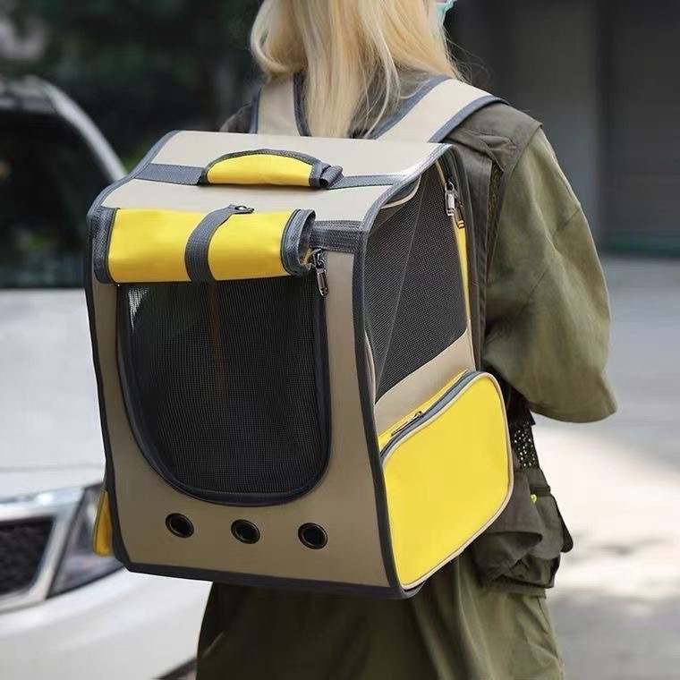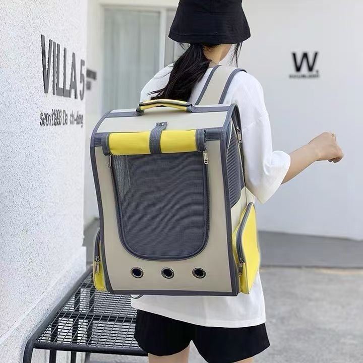 • 노란색과 흰색 대비 대용량 고양이 가방