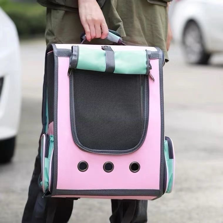 • 그린과 핑크의 대비되는 대용량 고양이 가방