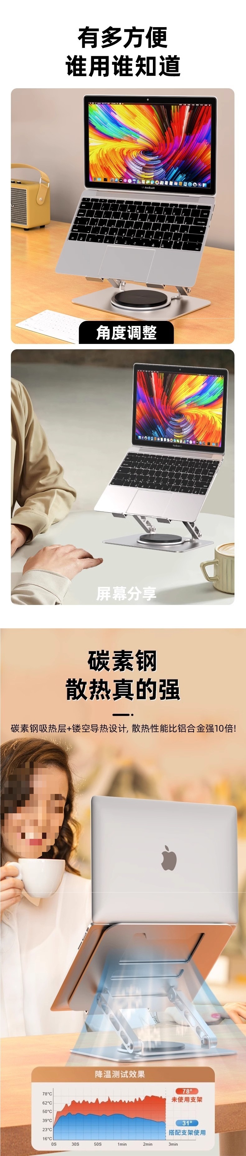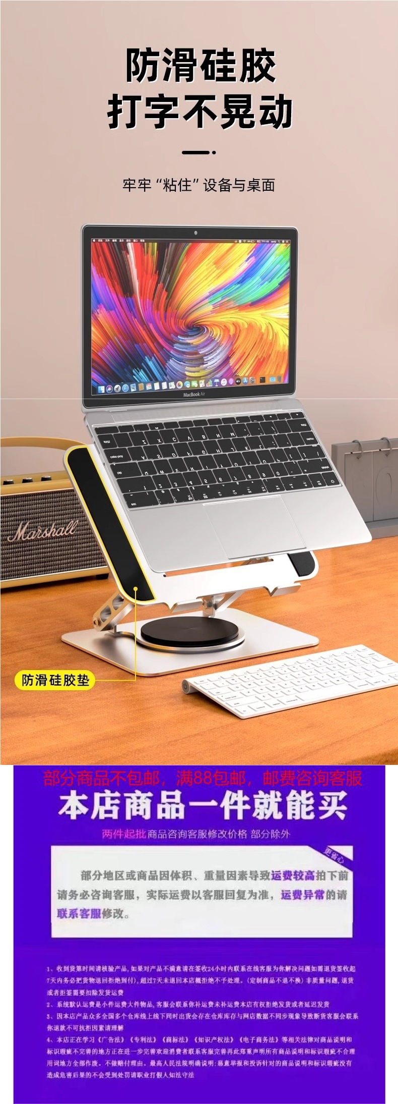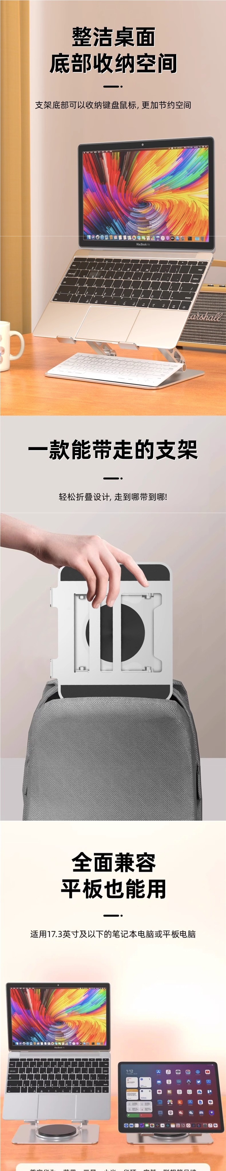 노트북 스탠드 브래킷, 조절 가능한 리프팅 및 360도 회전, 데스크탑 높이 조절 스탠드 베이스스토어 가기