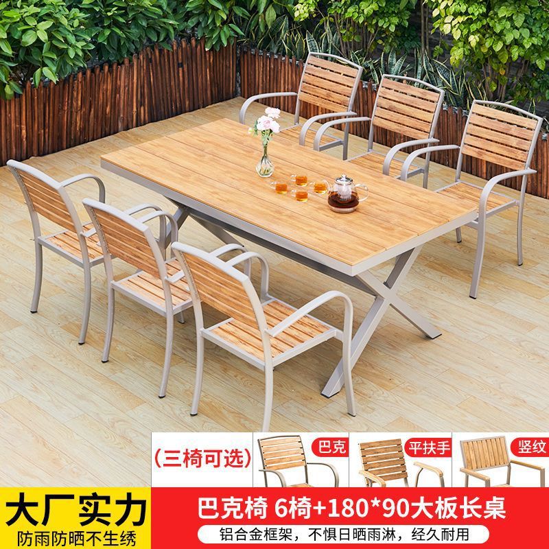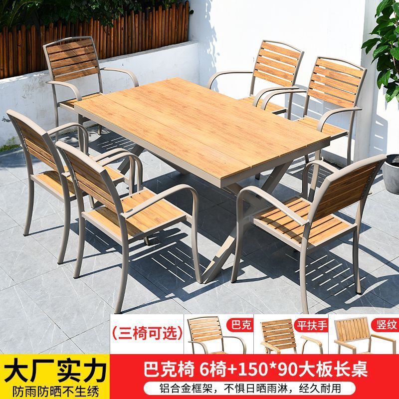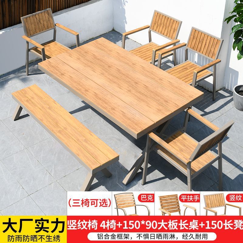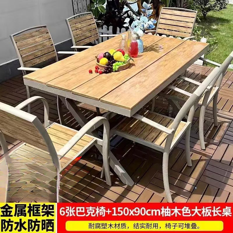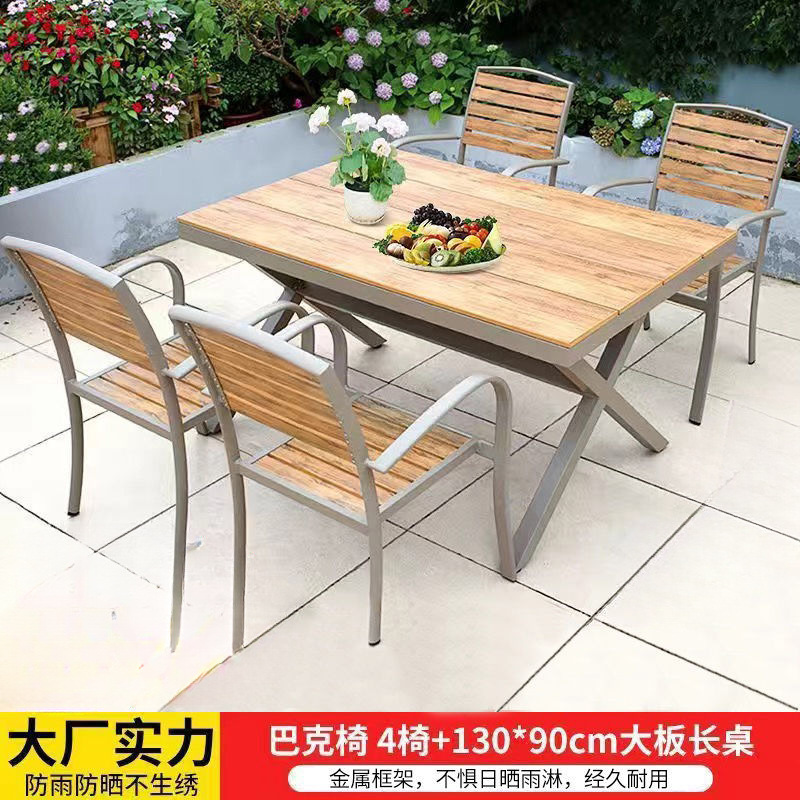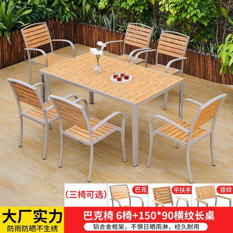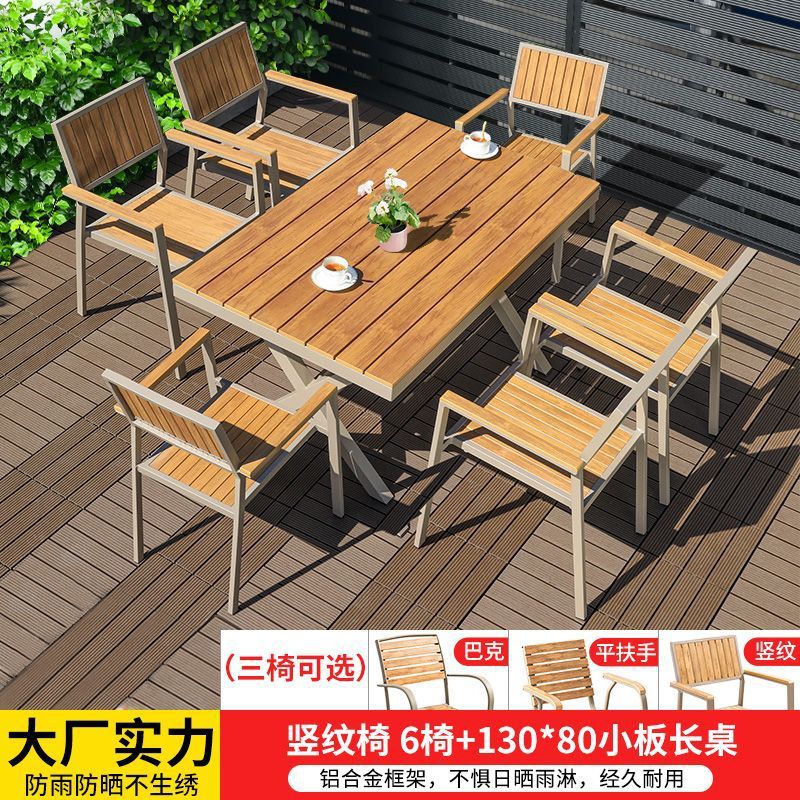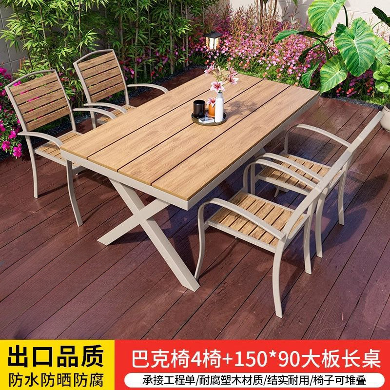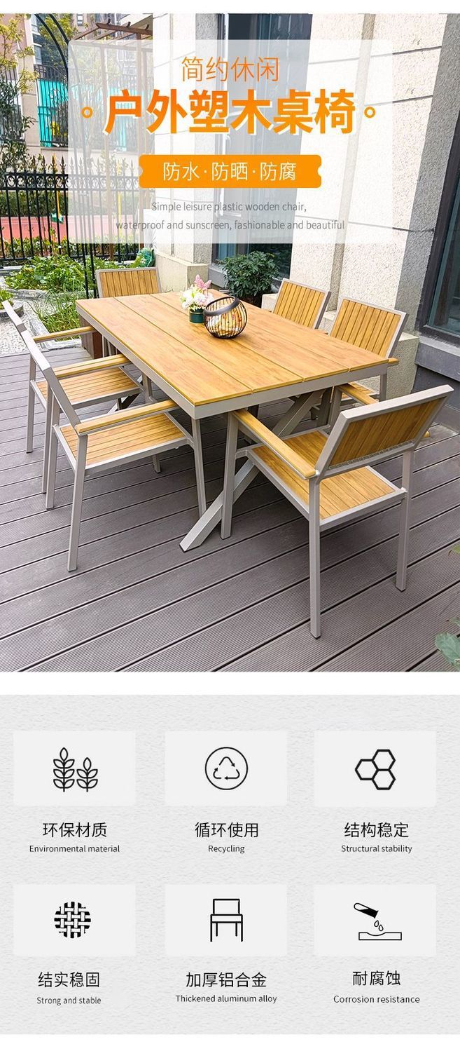 야외 테이블과 의자 플라스틱 목재 안뜰 식탁 태양 보호 부식 방지 목재 레저 카페 발코니 야외 테이블과 의자 정원