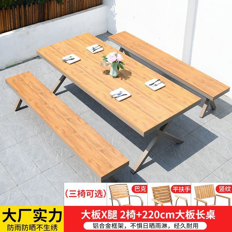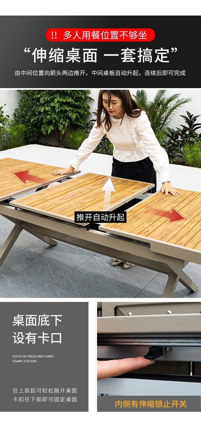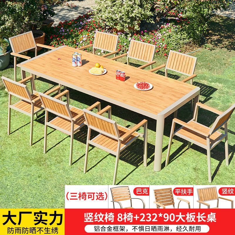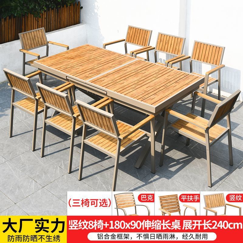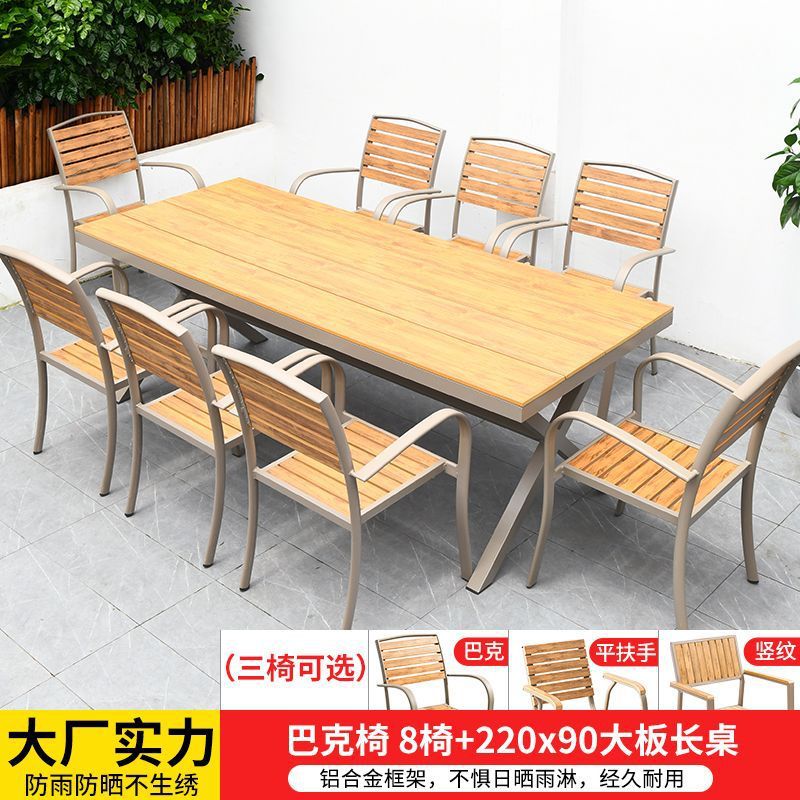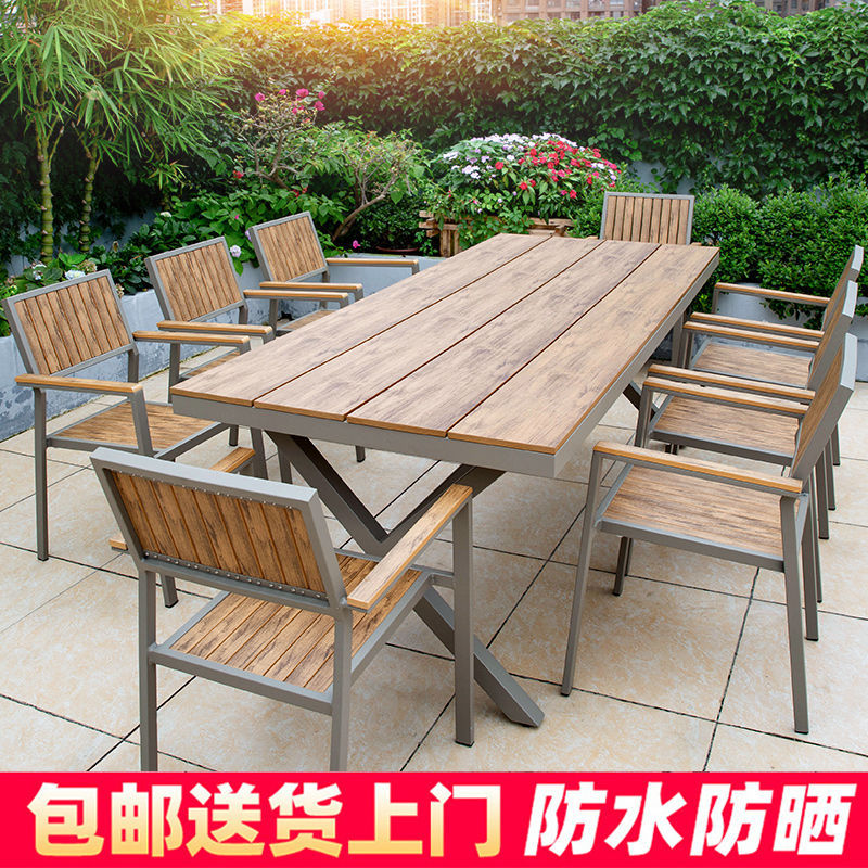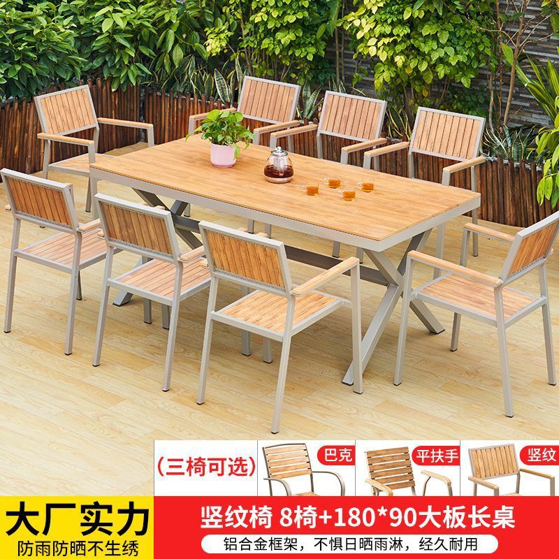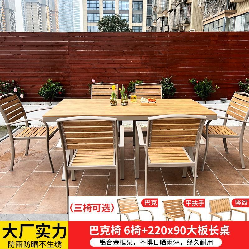 야외 테이블과 의자 플라스틱 목재 안뜰 식탁 태양 보호 부식 방지 목재 레저 카페 발코니 야외 테이블과 의자 정원