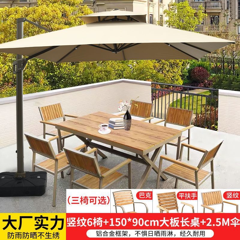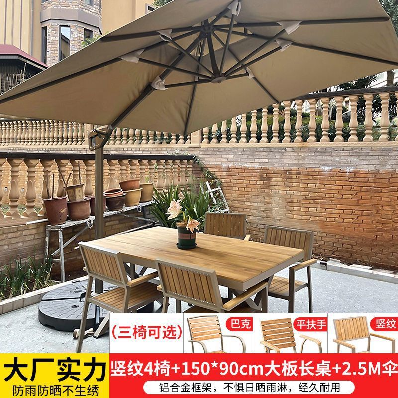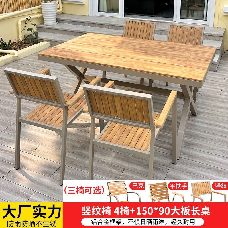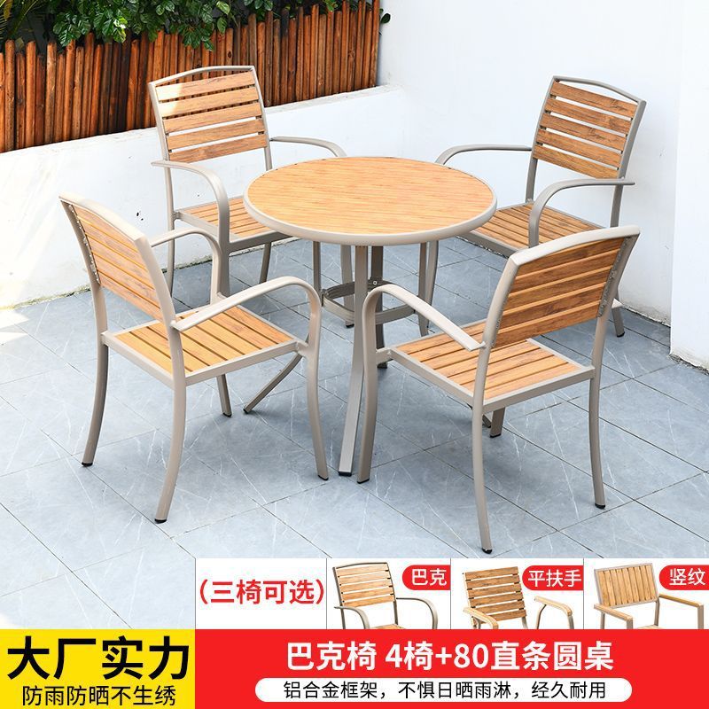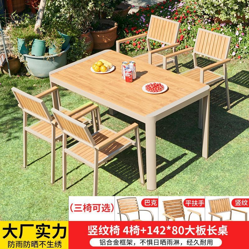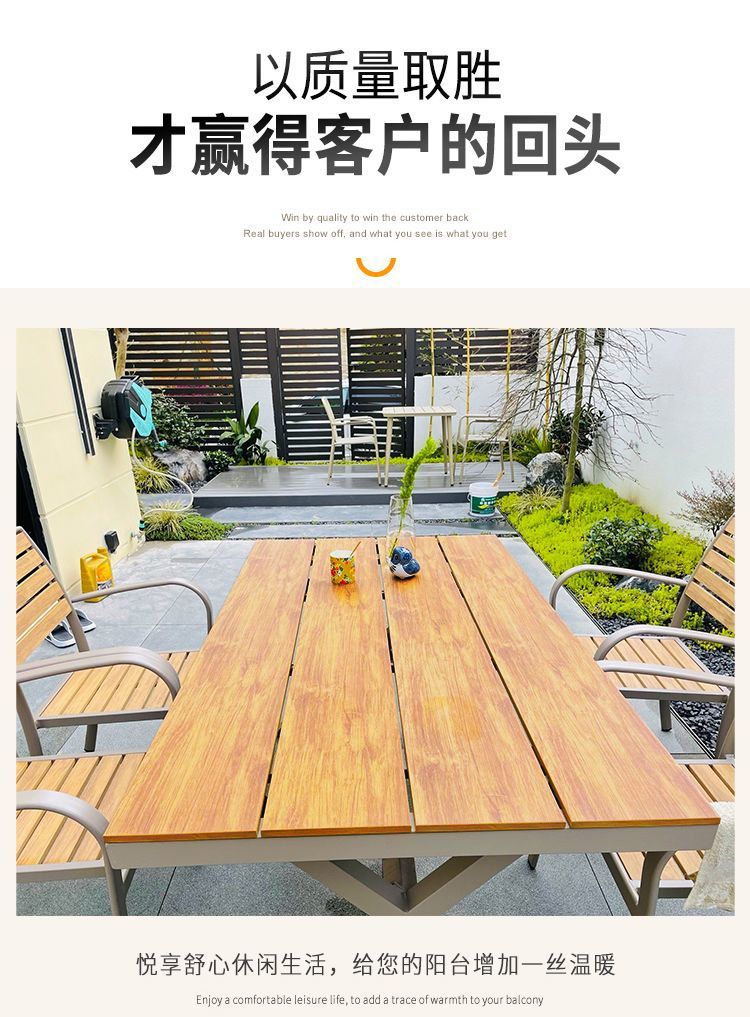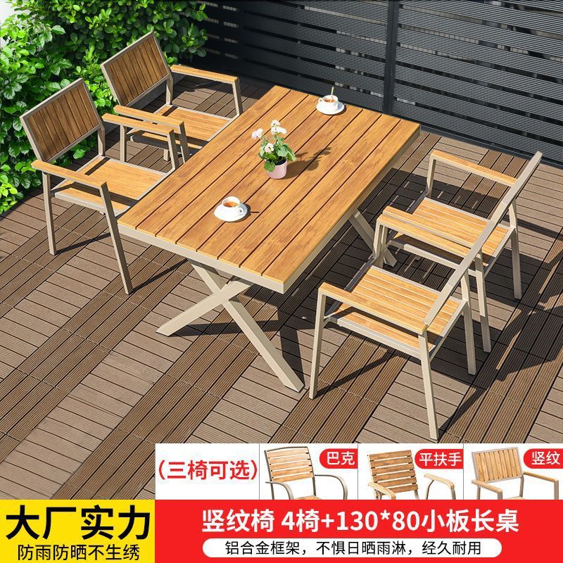 야외 테이블과 의자 플라스틱 목재 안뜰 식탁 태양 보호 부식 방지 목재 레저 카페 발코니 야외 테이블과 의자 정원스토어 가기