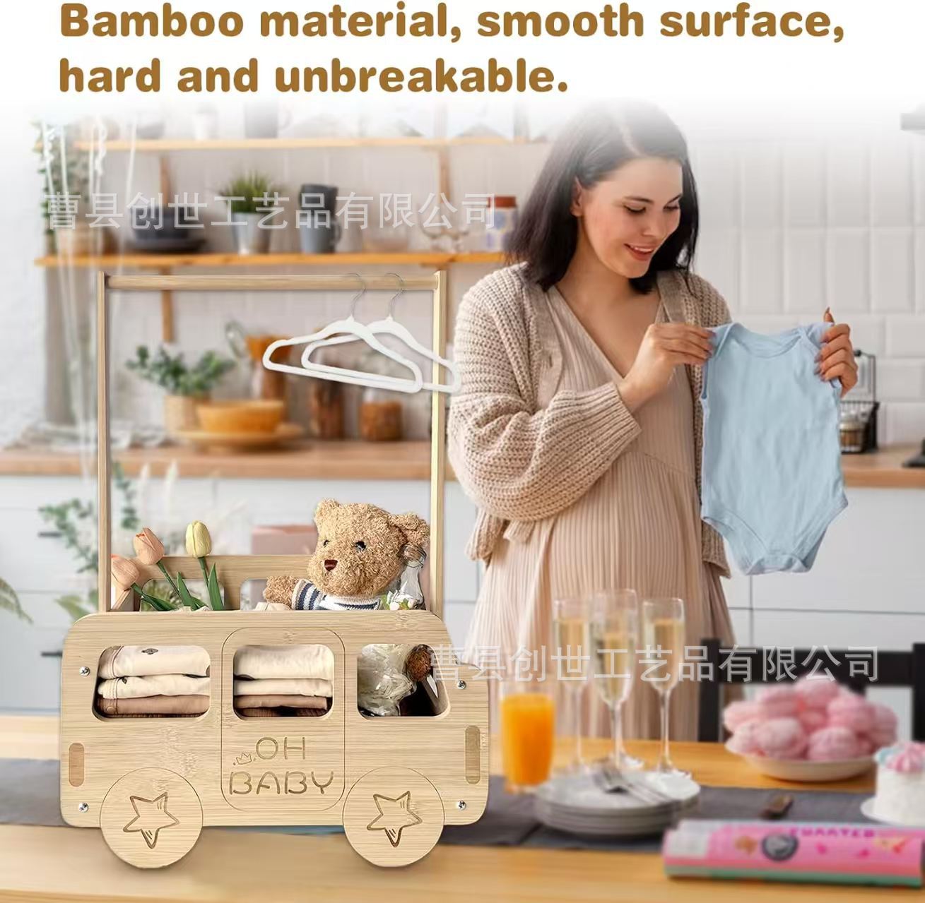 손잡이가있는 크로스 보더 신생아 의류 나무 보관 상자 홈 베이비 샤워 용품 단단한 나무 보관 바구니
