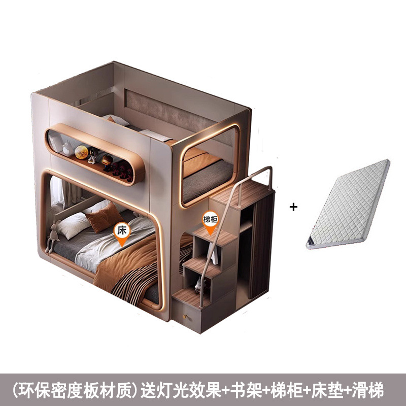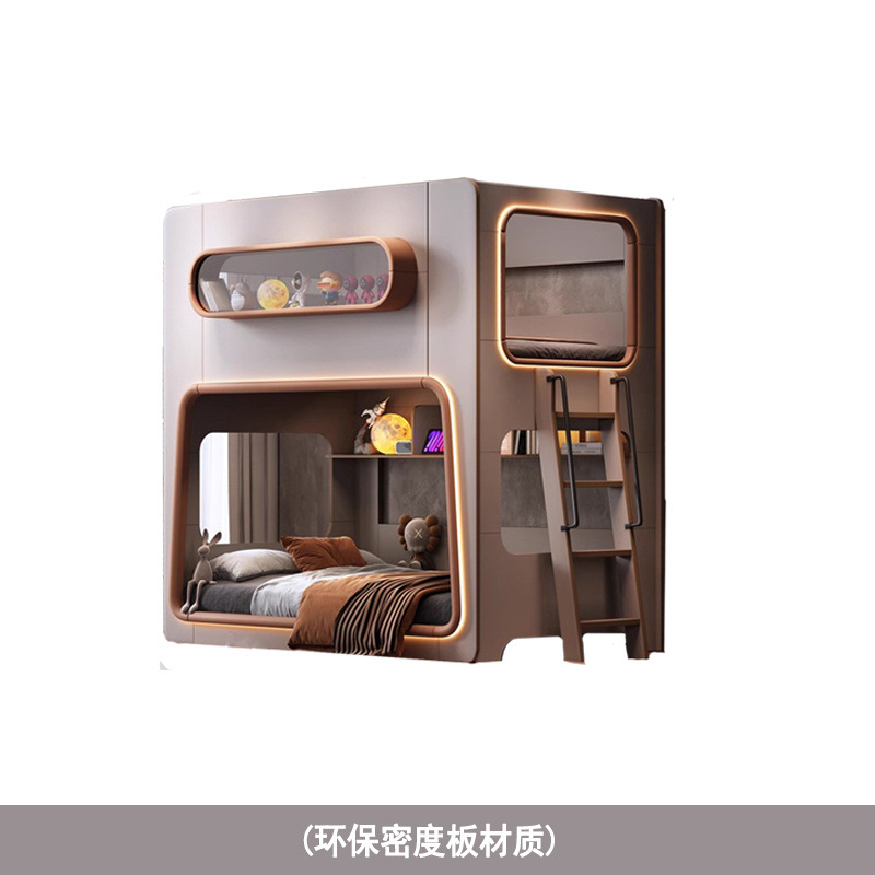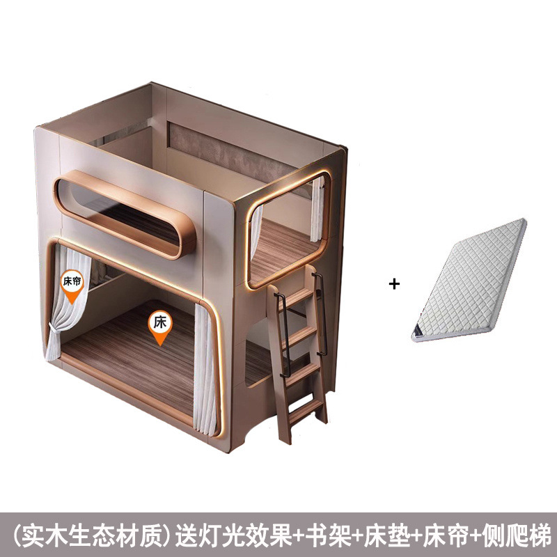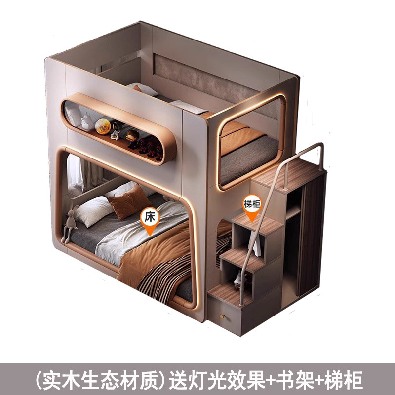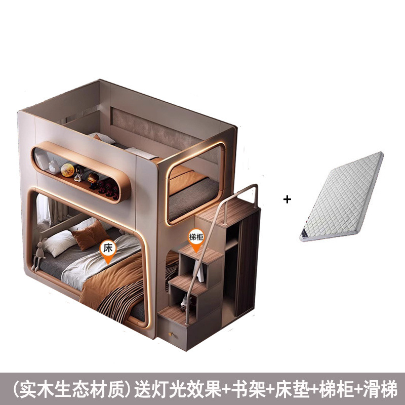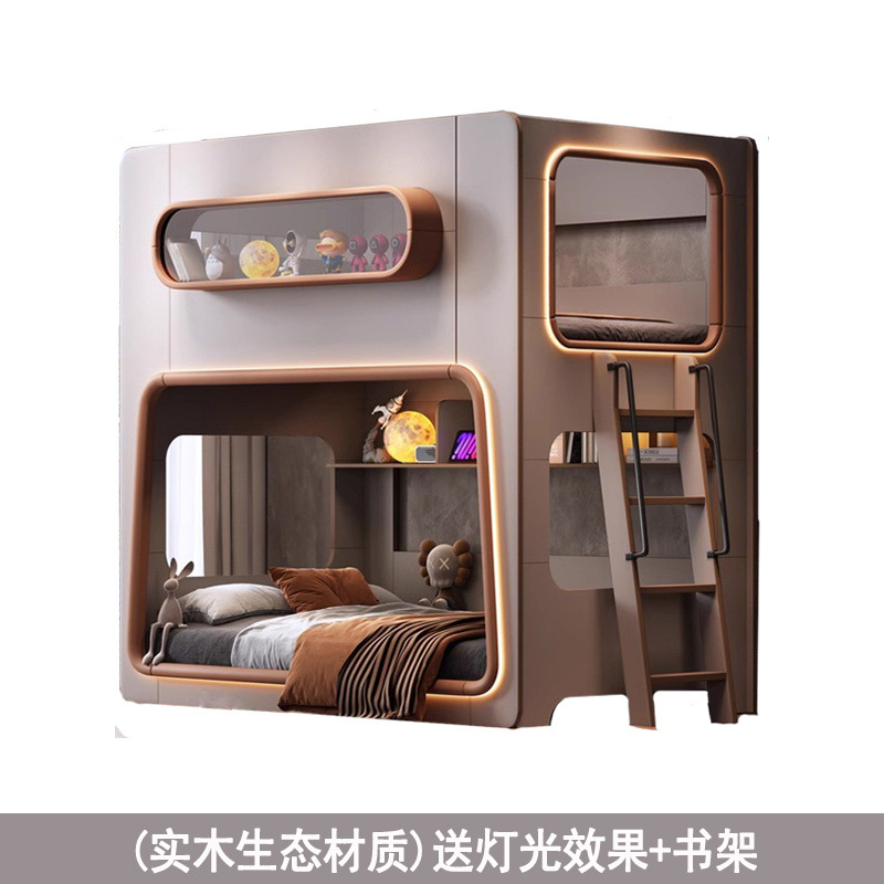 새로운 공간 캡슐 어린이 상하 침대 작은 아파트 같은 폭 엄마와 아이 단단한 나무 보호대 침대 자매와 형제 높고 낮은 침대