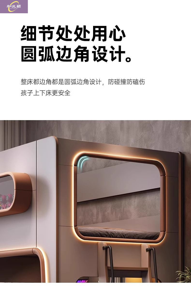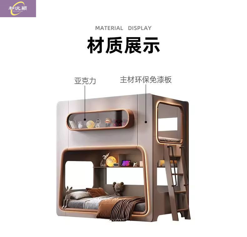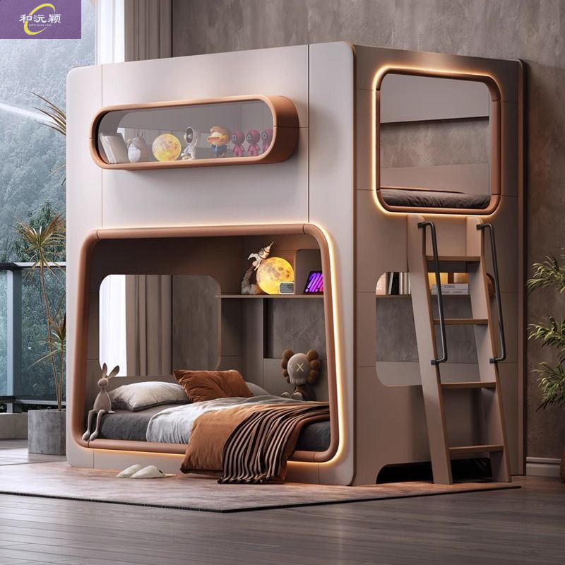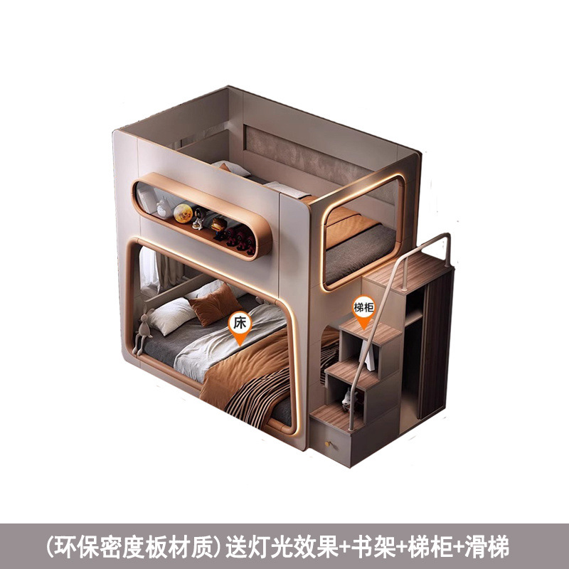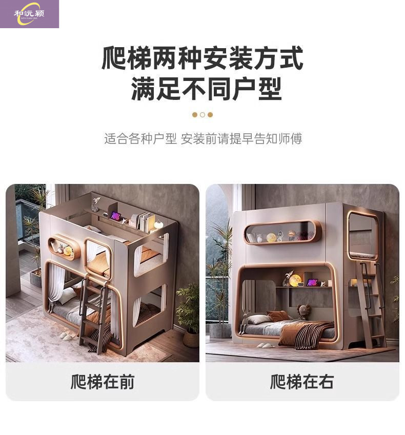 새로운 공간 캡슐 어린이 상하 침대 작은 아파트 같은 폭 엄마와 아이 단단한 나무 보호대 침대 자매와 형제 높고 낮은 침대