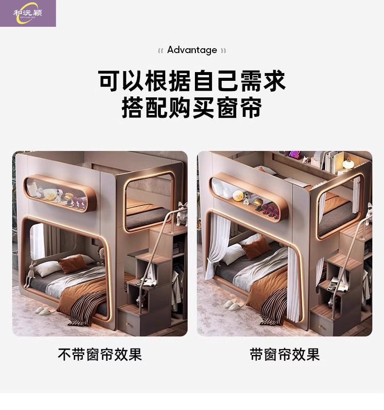 • 스페이스 침대 + 사다리 캐비닛 + 슬라이드 + 침대 커튼 (원목 생태 보드)