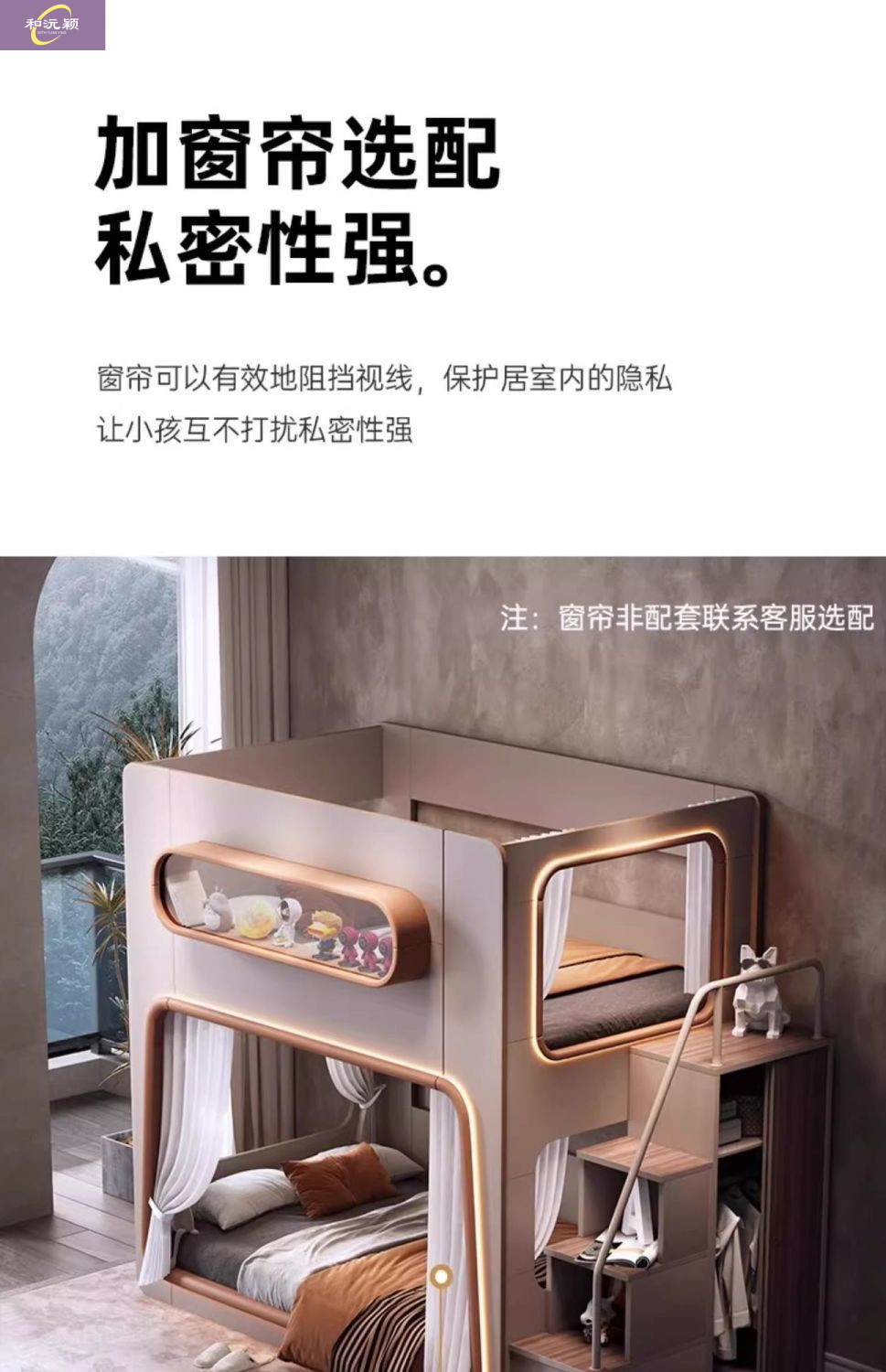 • 스페이스 침대 + 옆사다리 + 침대커튼 (원목 생태판)
