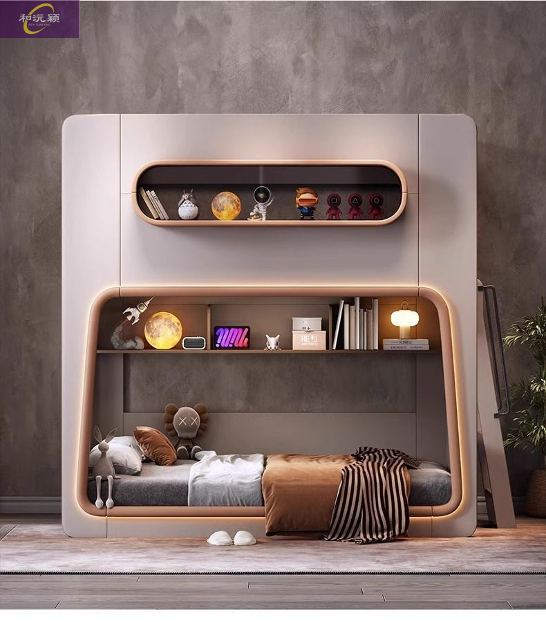 새로운 공간 캡슐 어린이 상하 침대 작은 아파트 같은 폭 엄마와 아이 단단한 나무 보호대 침대 자매와 형제 높고 낮은 침대스토어 가기