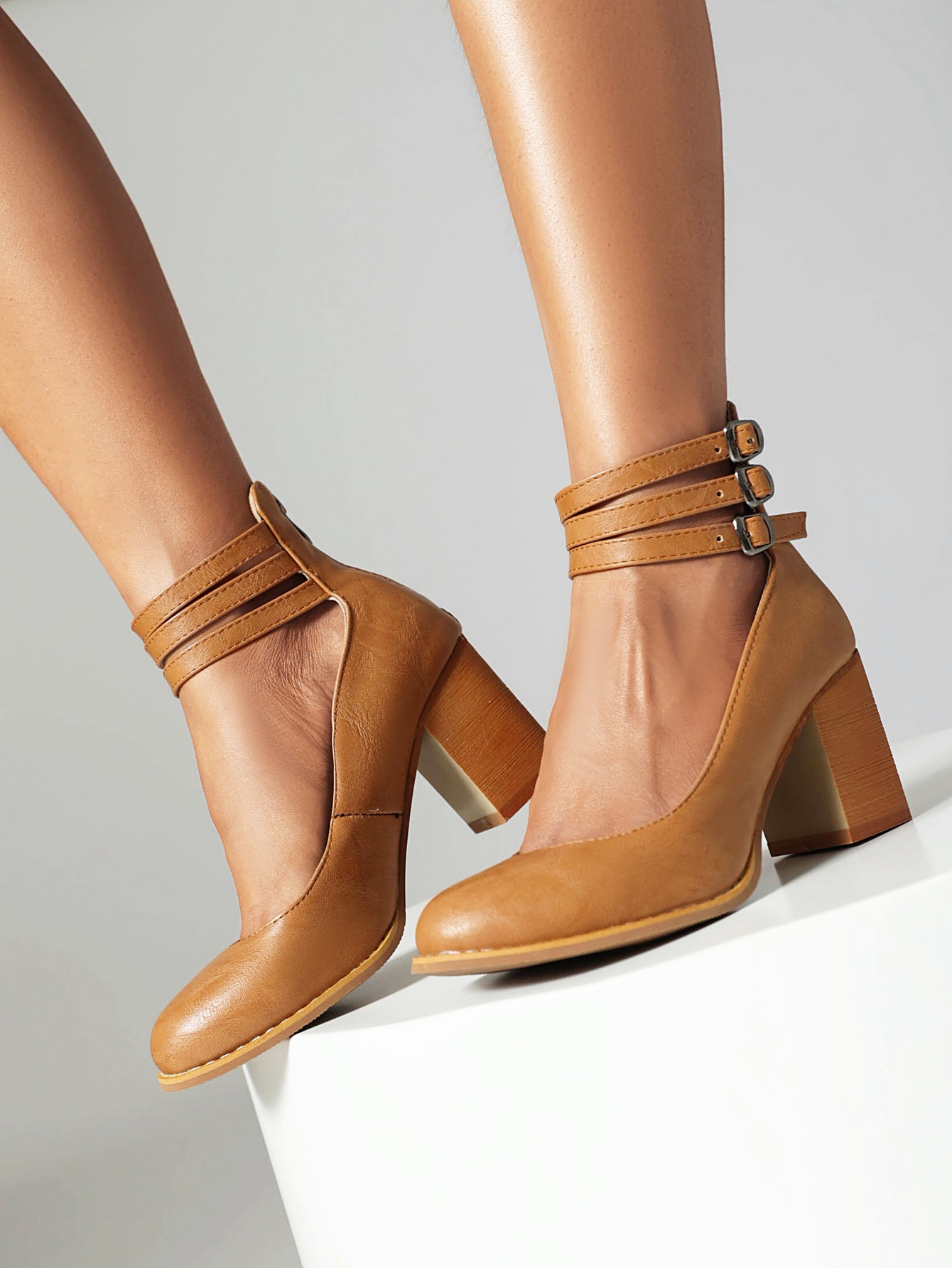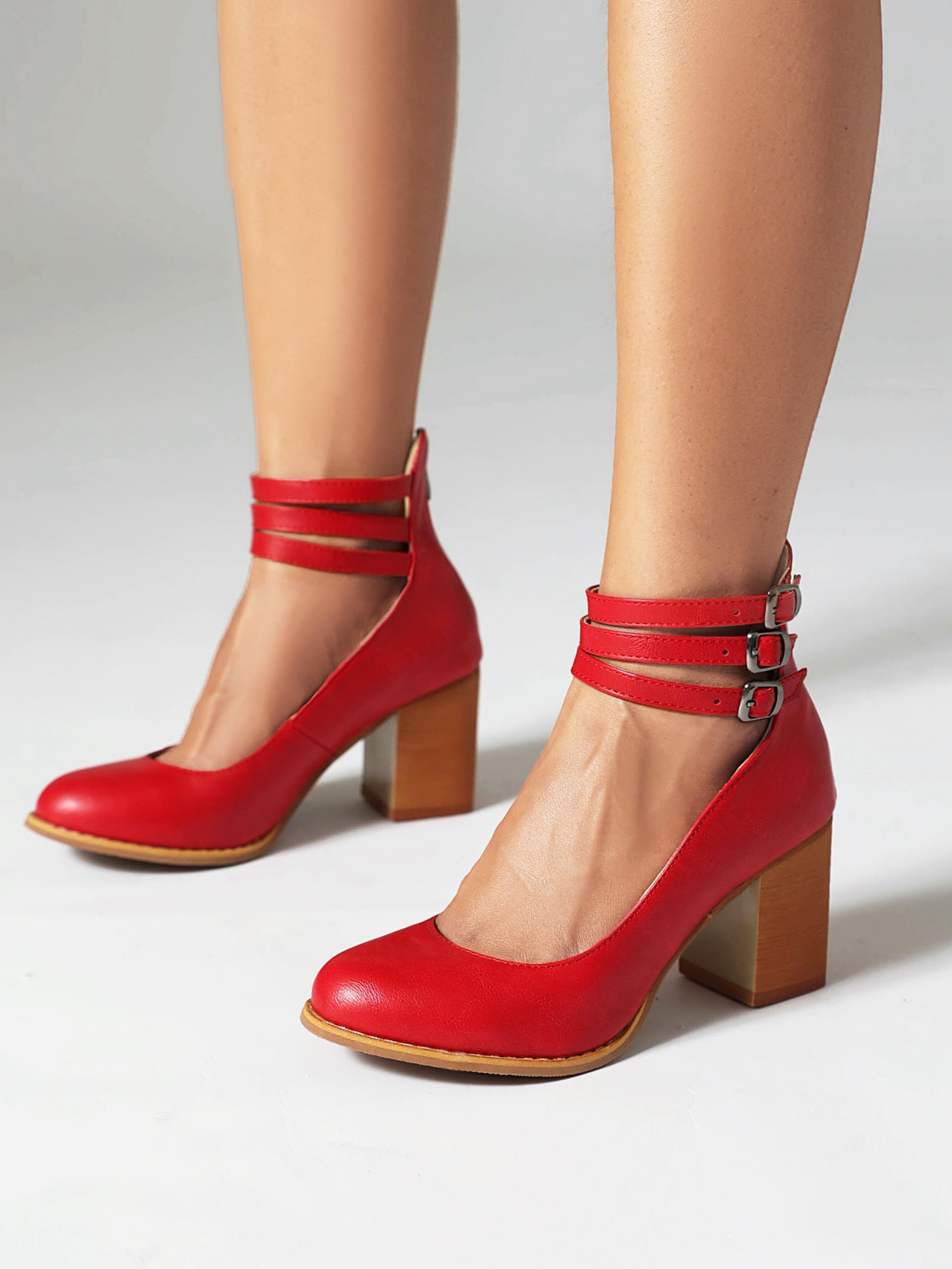 2023 춘키 힐 하이힐 레트로 메리 제인 여성 신발 40-48 봄과 가을 새 단어 버클 하이힐스토어 가기