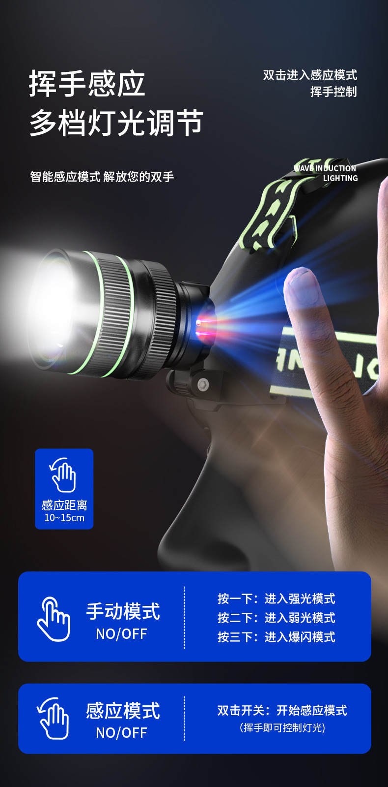 국경 간 야간 낚시 특수 헤드 라이트 강한 조명 충전 슈퍼 밝은 헤드 장착 유도 손전등 긴 내구성 야외 광부의 램프스토어 가기