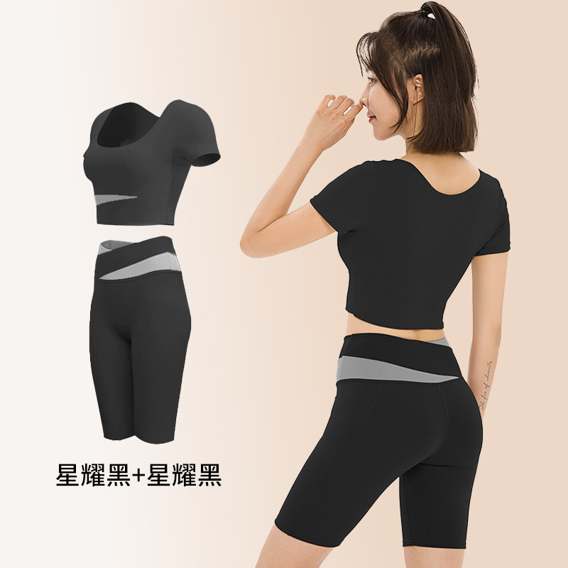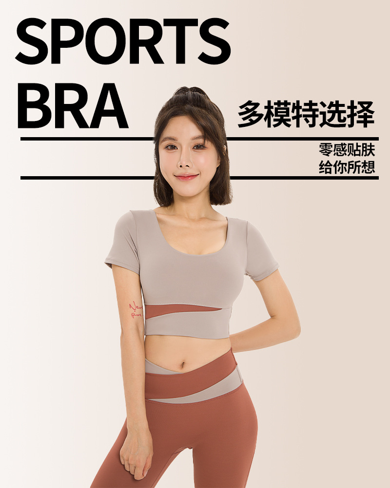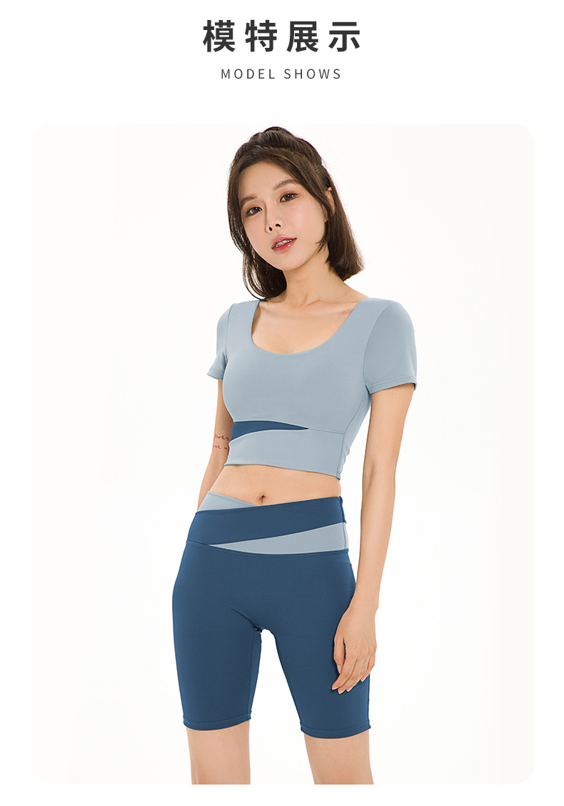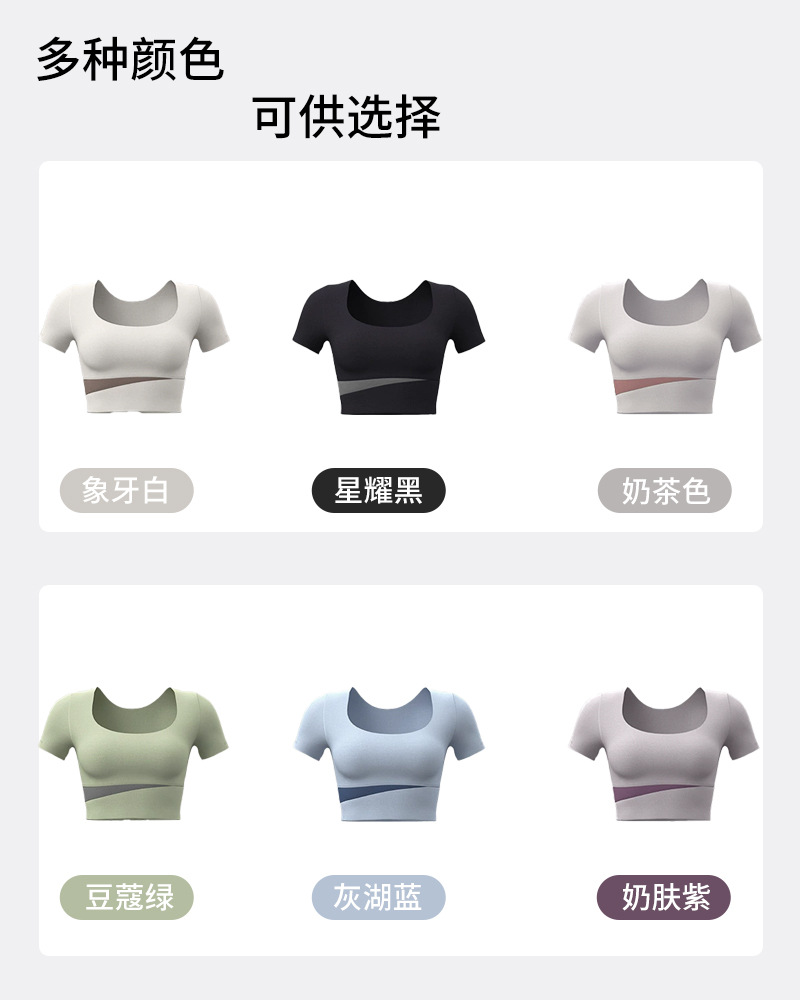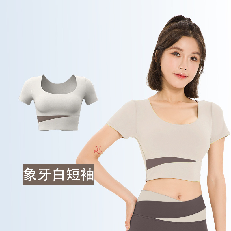 요가복, 피트니스복, 여성용 런닝 스포츠 요가복, 여성용 반팔 충격 방지 2024 여름 신상품 배꼽 노출 속건복스토어 가기