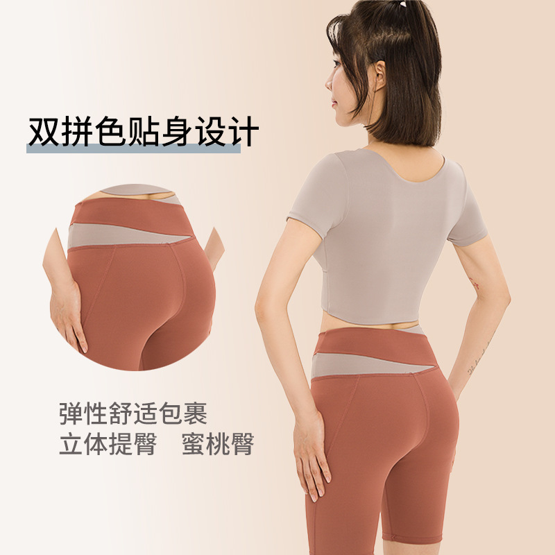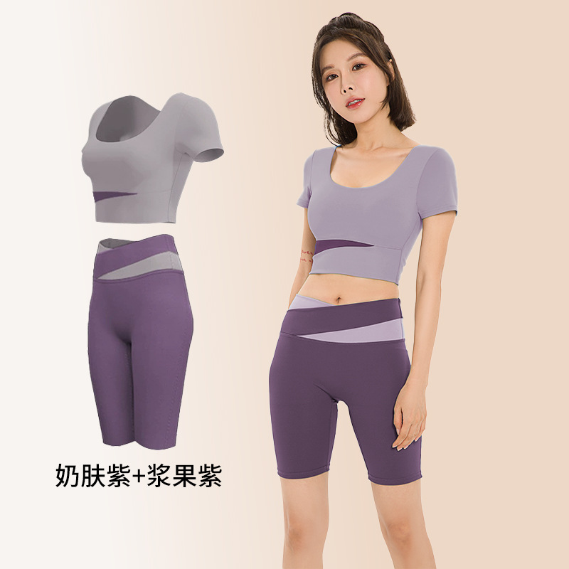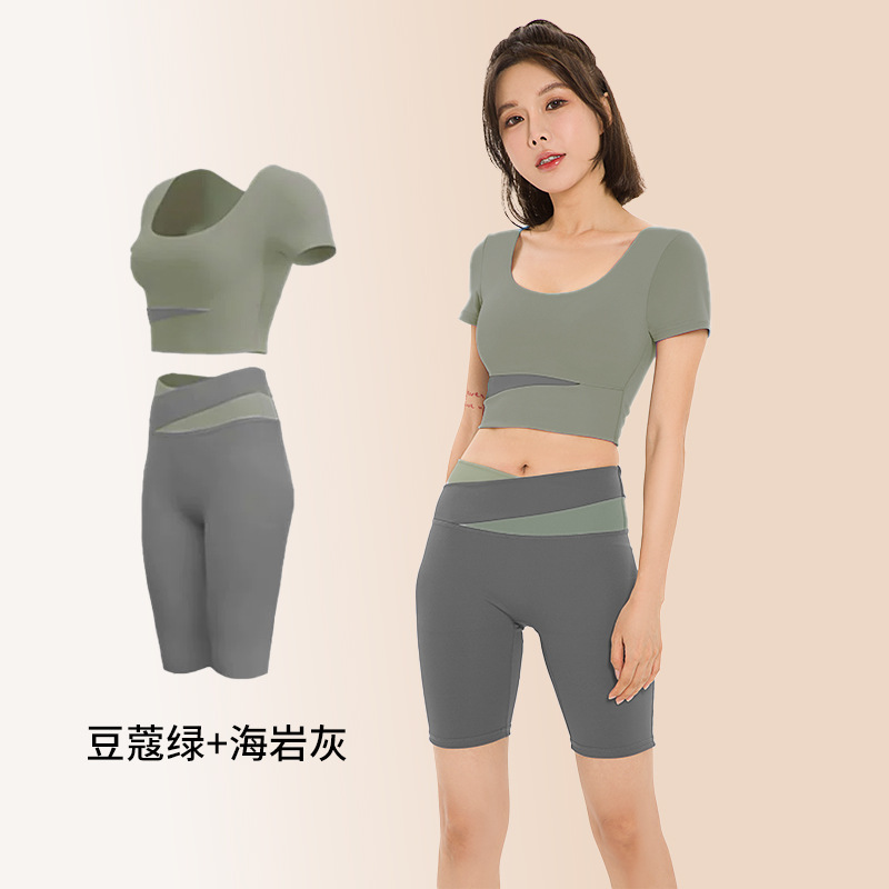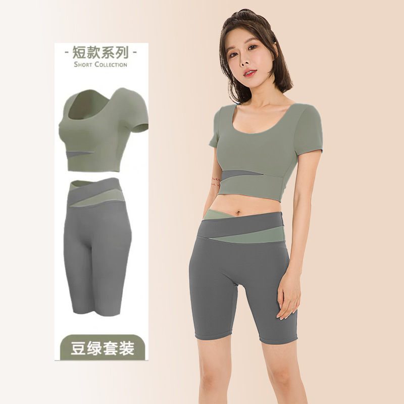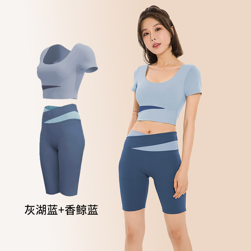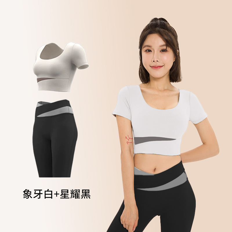 요가복, 피트니스복, 여성용 런닝 스포츠 요가복, 여성용 반팔 충격 방지 2024 여름 신상품 배꼽 노출 속건복스토어 가기