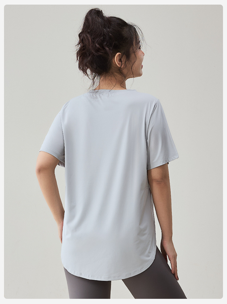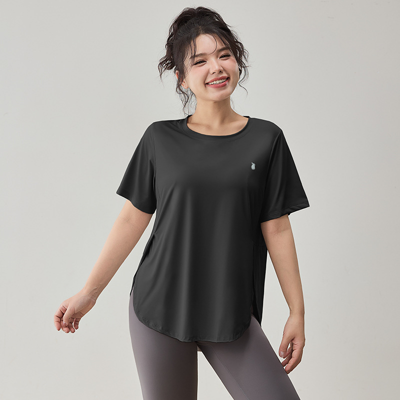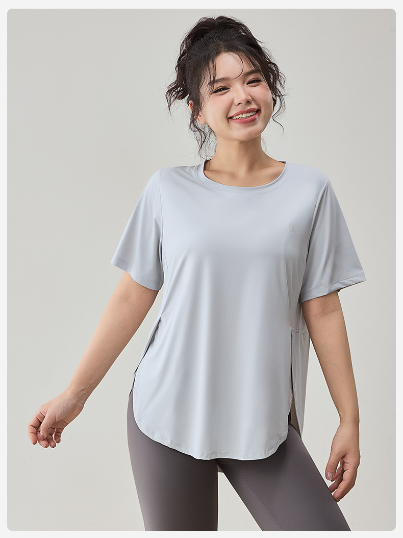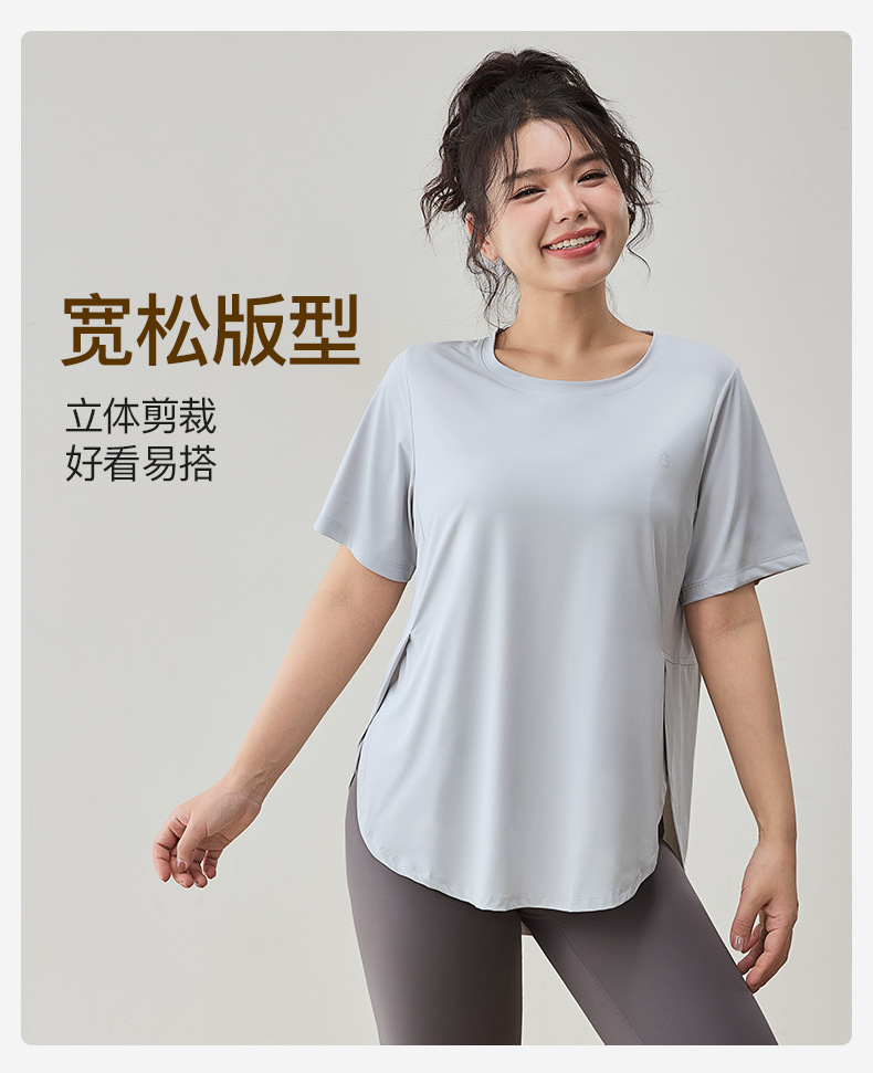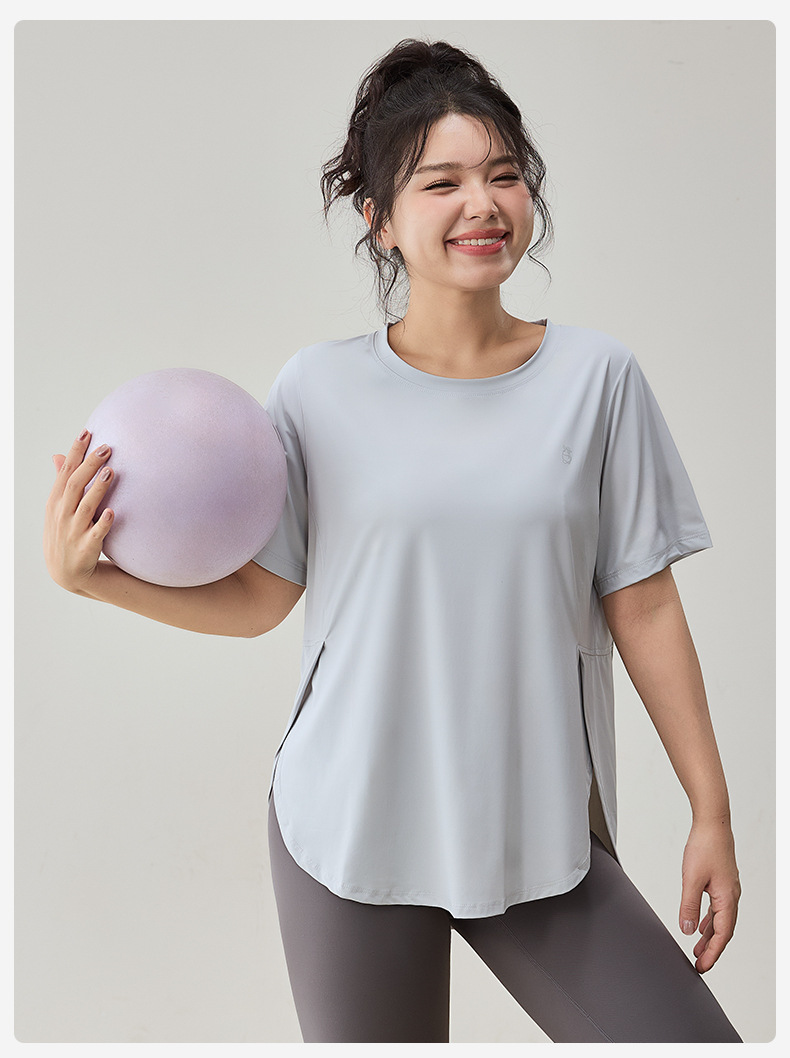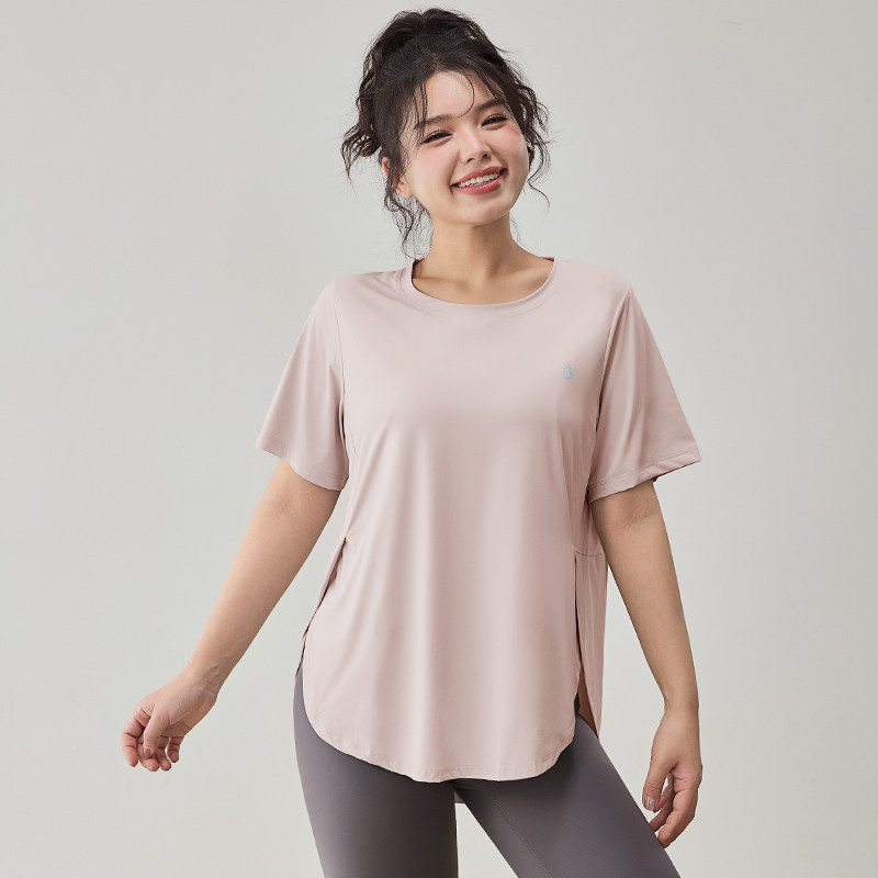 플러스 사이즈 스포츠 티셔츠 여성용 느슨한 슬리밍 알몸 요가 의류 통통녀 통기성 빠른 건조 피트니스 훈련 짧은 소매