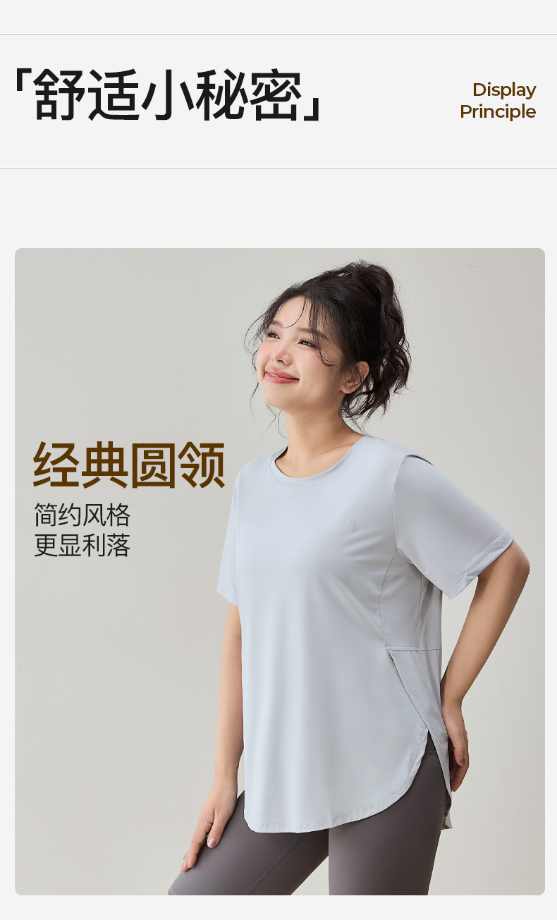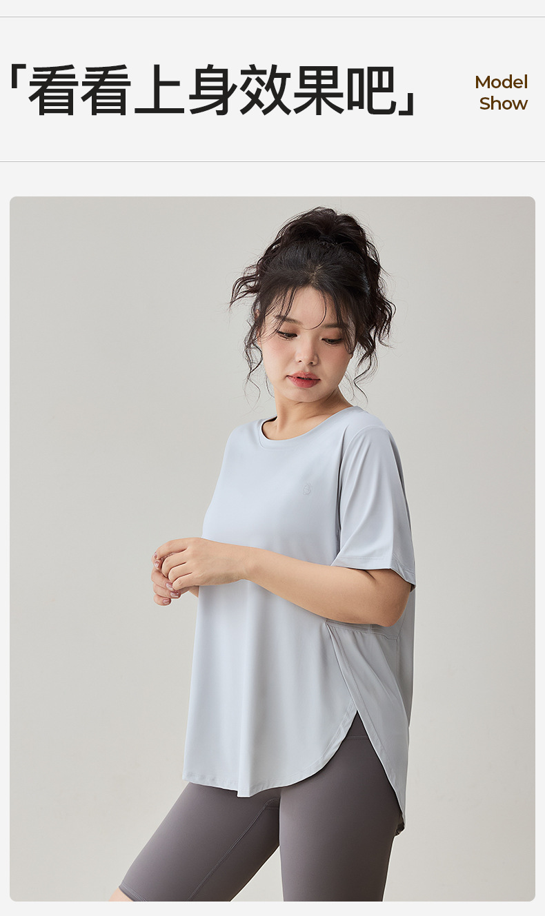 플러스 사이즈 스포츠 티셔츠 여성용 느슨한 슬리밍 알몸 요가 의류 통통녀 통기성 빠른 건조 피트니스 훈련 짧은 소매스토어 가기