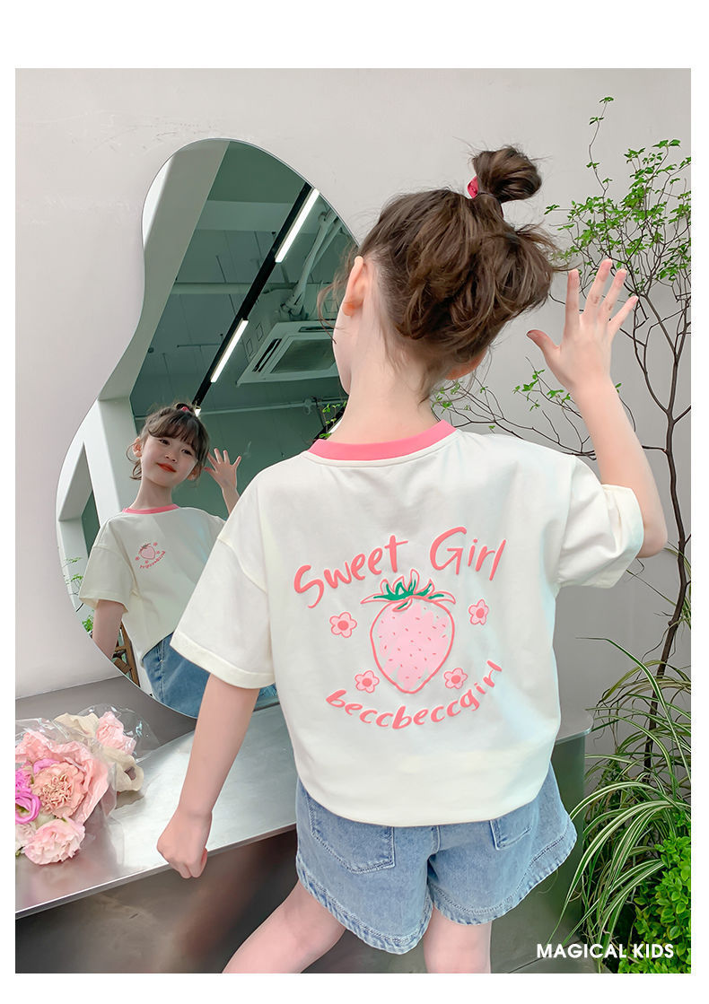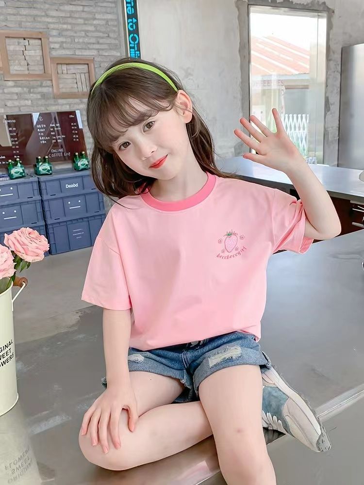 2025 신형 여자 서양식 아동복 여자 반팔 티셔츠 여름 티셔츠 어린이 여름 반소매 탑스토어 가기