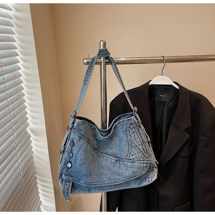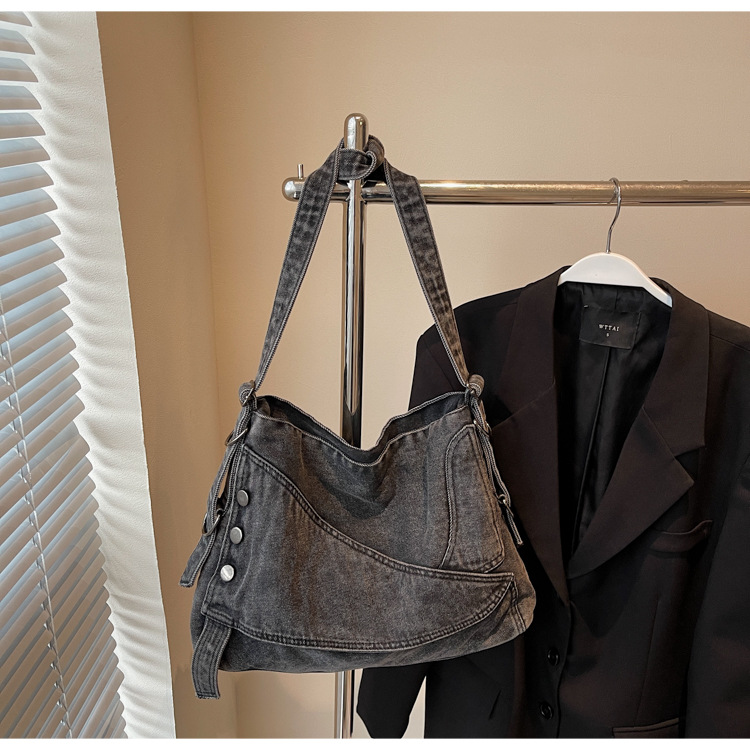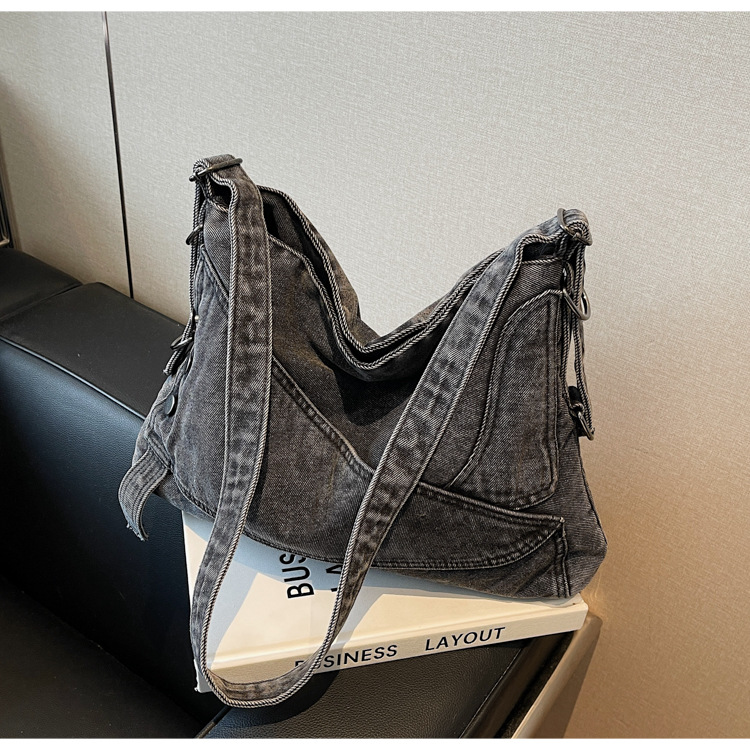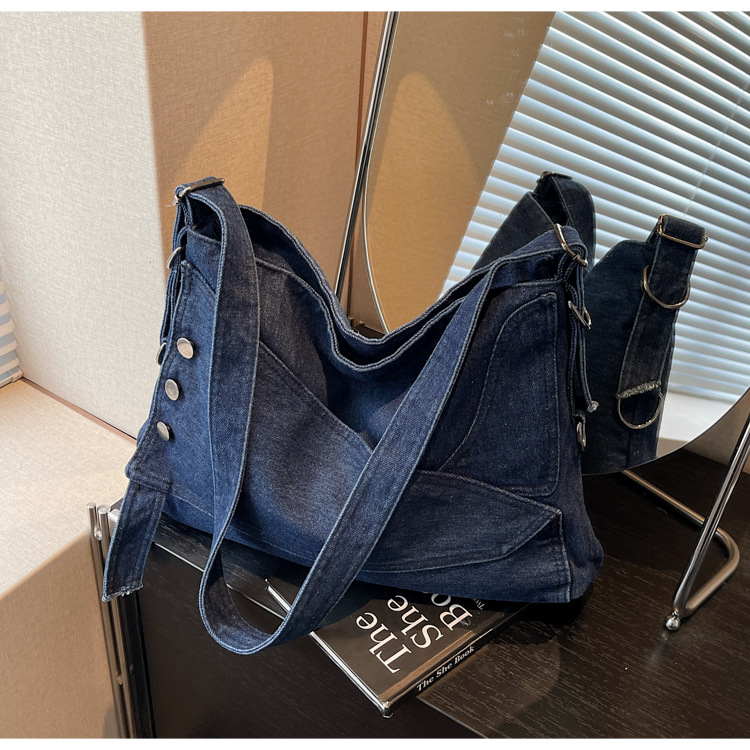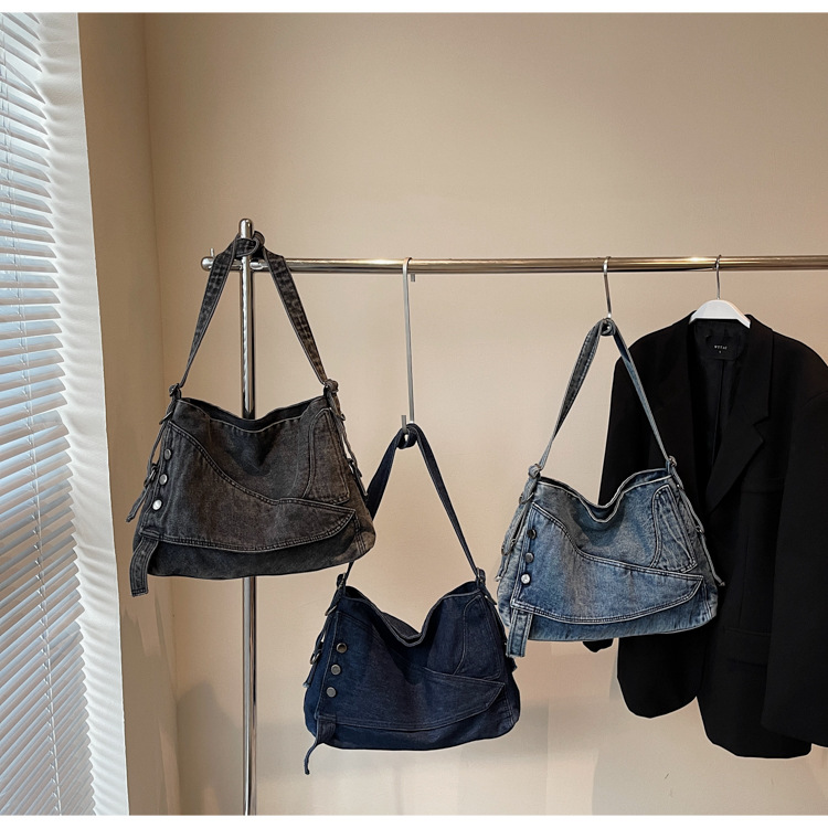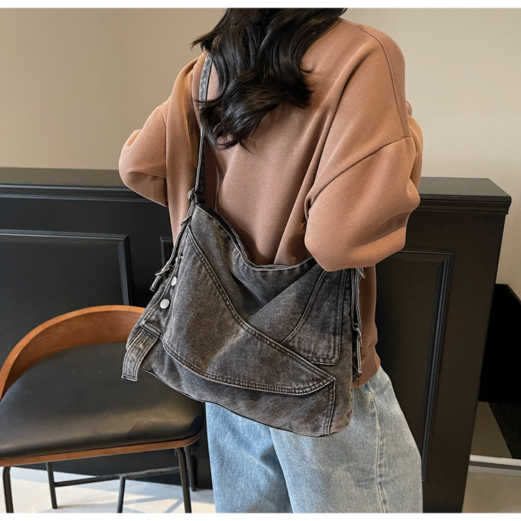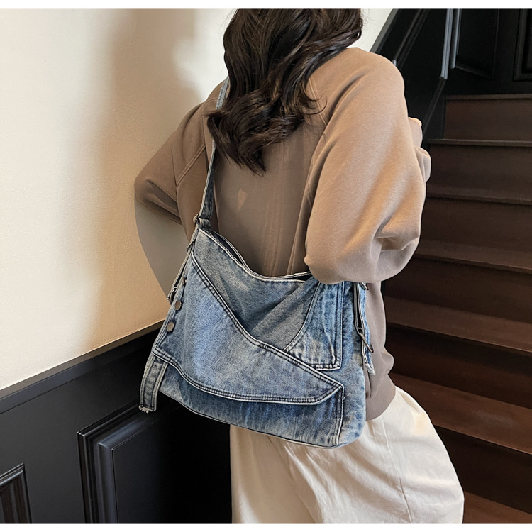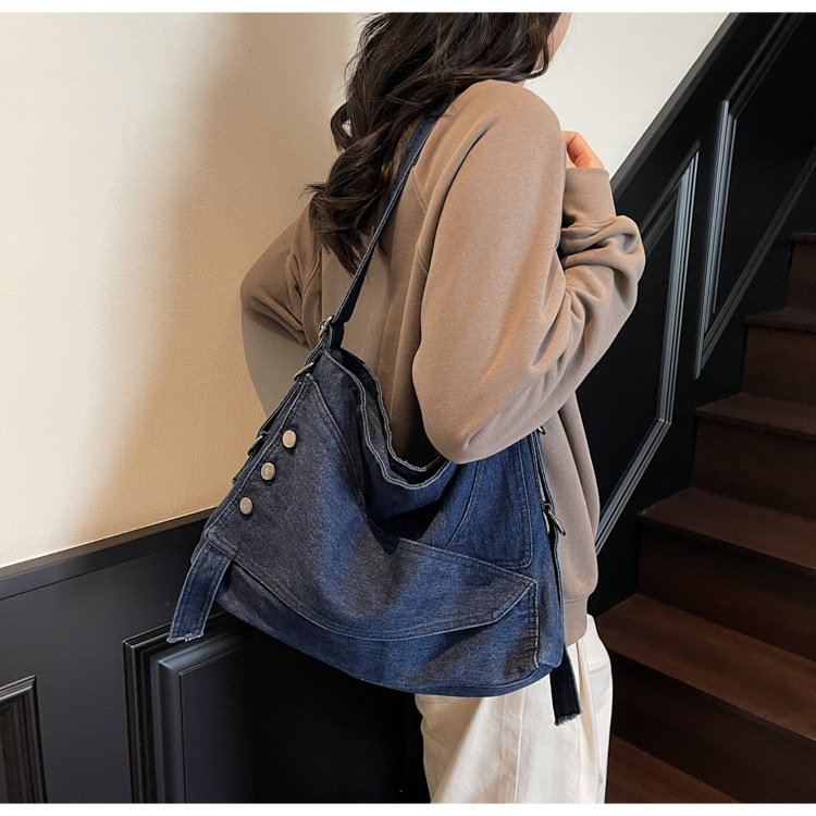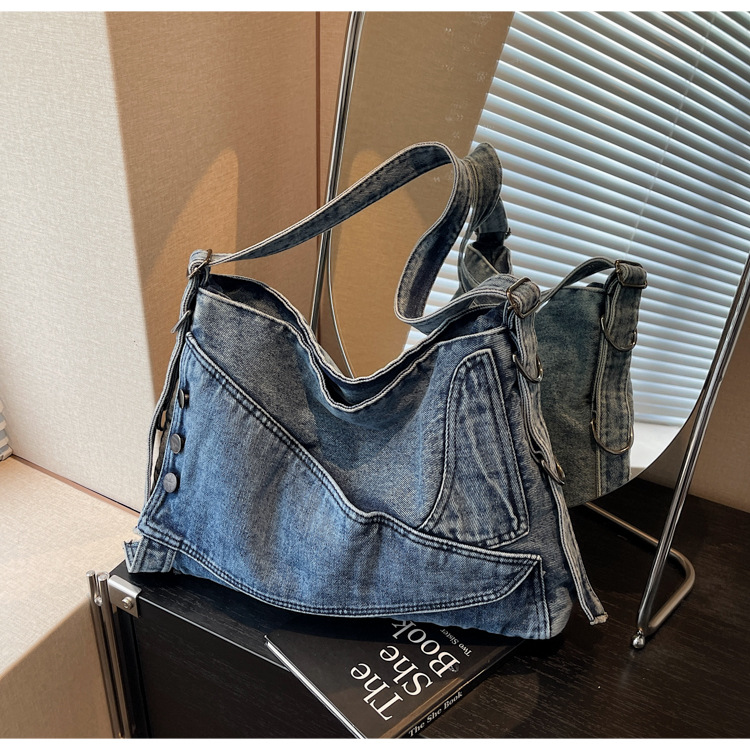 여성을위한 크로스 보더 레트로 데님 대용량 가방 2025 새로운 캐주얼 어깨 크로스 바디 백 통근 토트 백