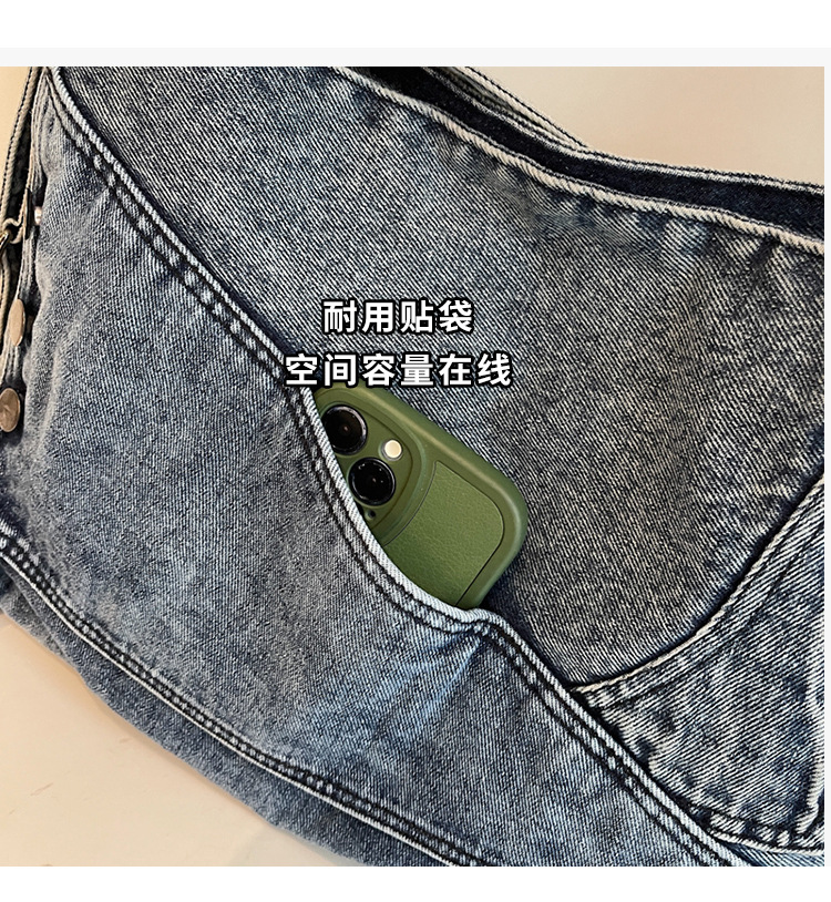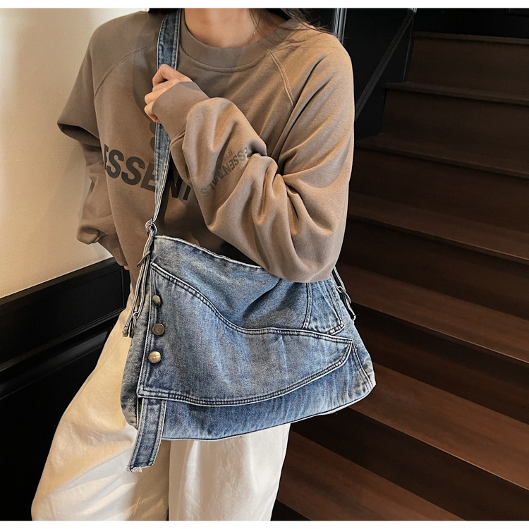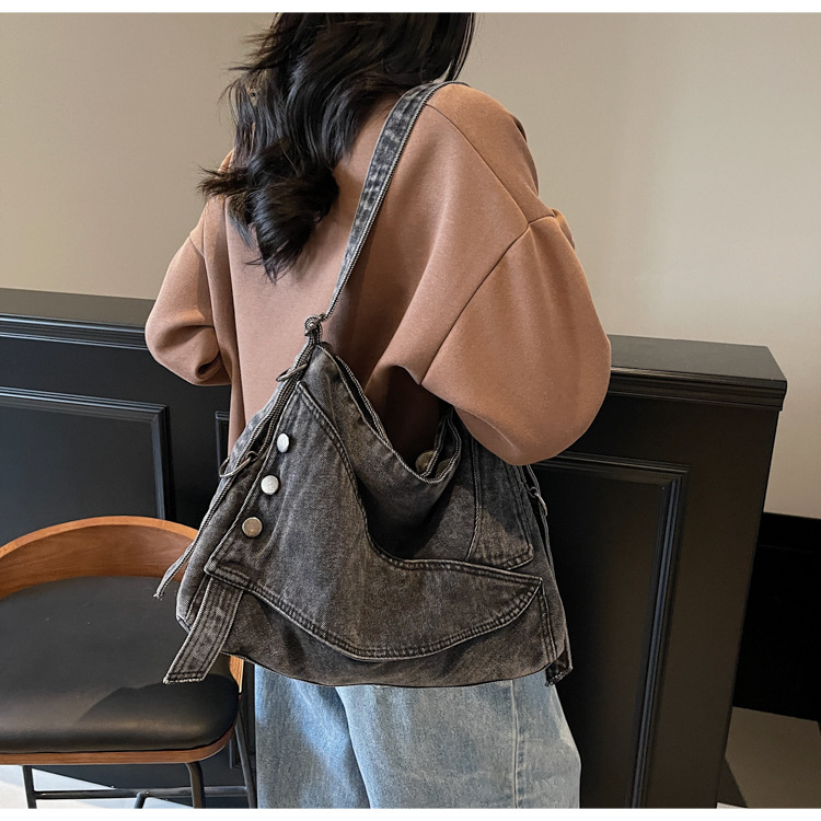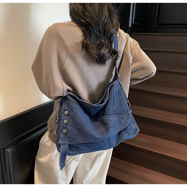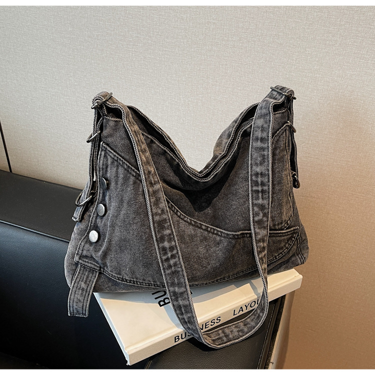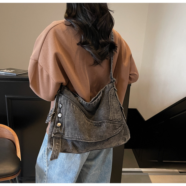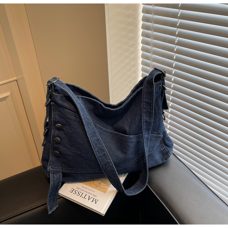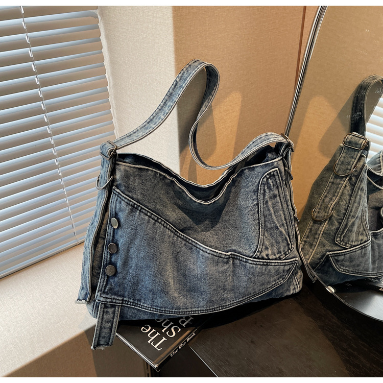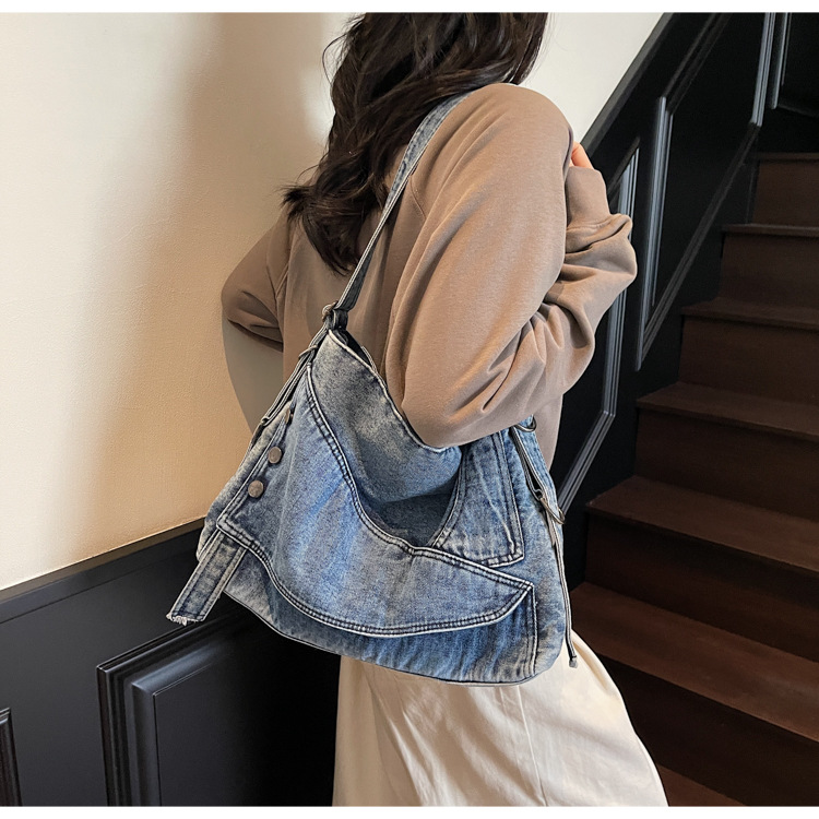 여성을위한 크로스 보더 레트로 데님 대용량 가방 2025 새로운 캐주얼 어깨 크로스 바디 백 통근 토트 백