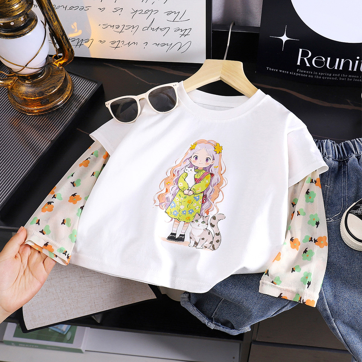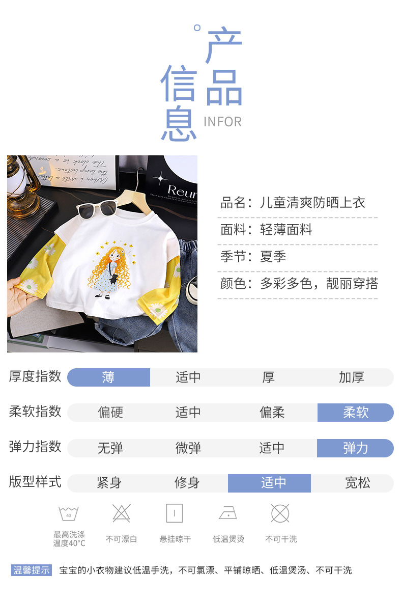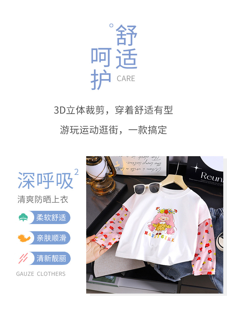 소녀 여름 새 아기 선스크린 소매 티셔츠 한국식 만화 캐릭터 인쇄 얇은 긴 소매 최고 아동복스토어 가기