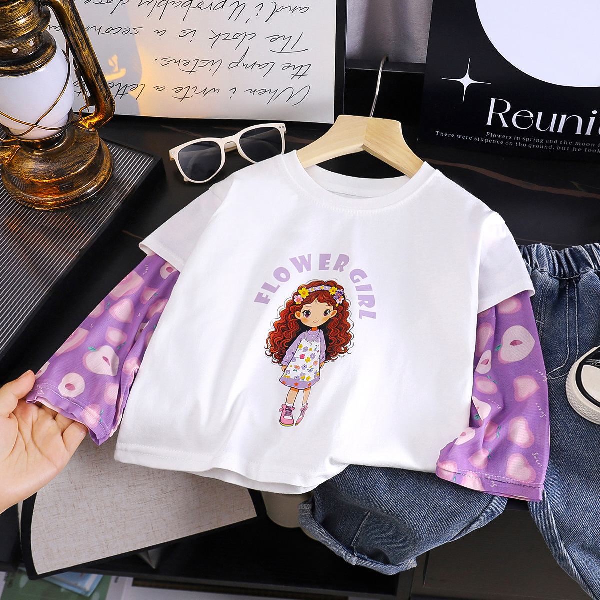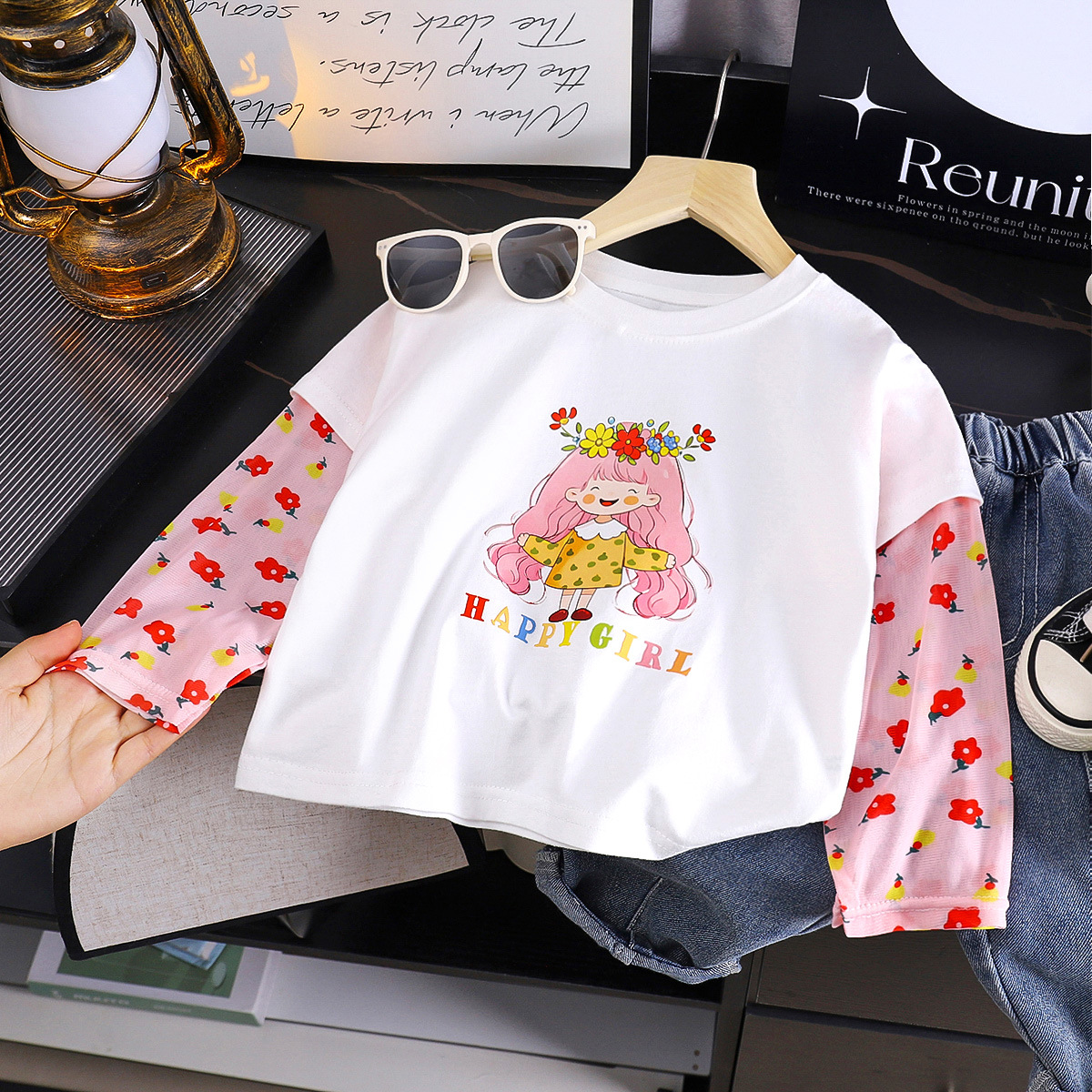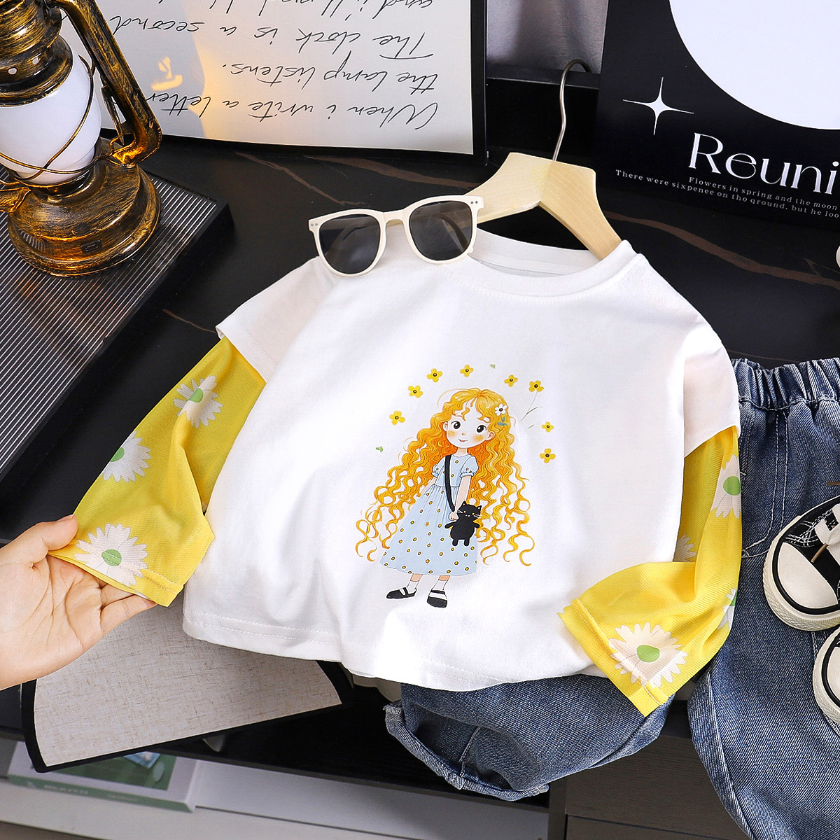 소녀 여름 새 아기 선스크린 소매 티셔츠 한국식 만화 캐릭터 인쇄 얇은 긴 소매 최고 아동복스토어 가기