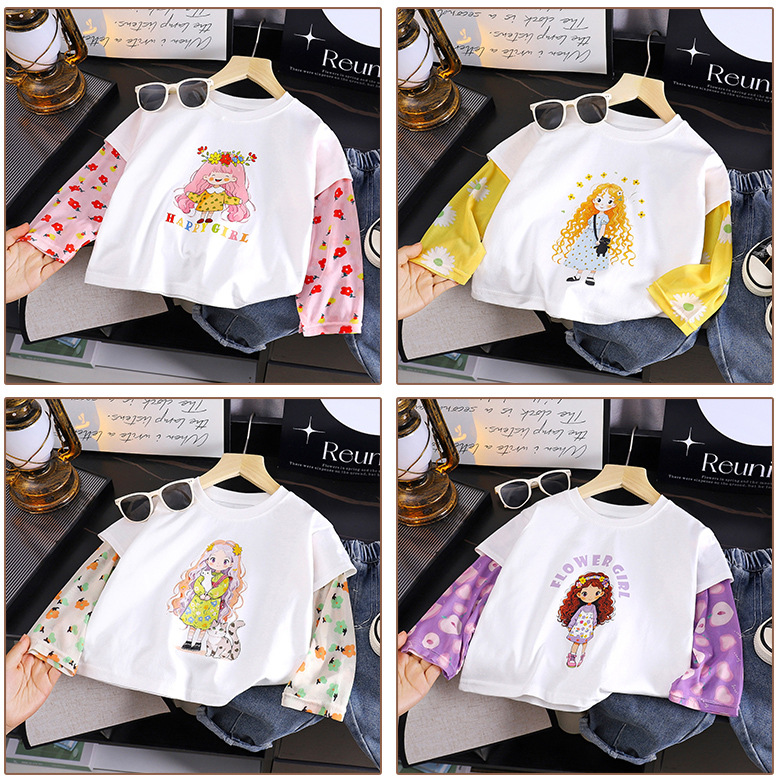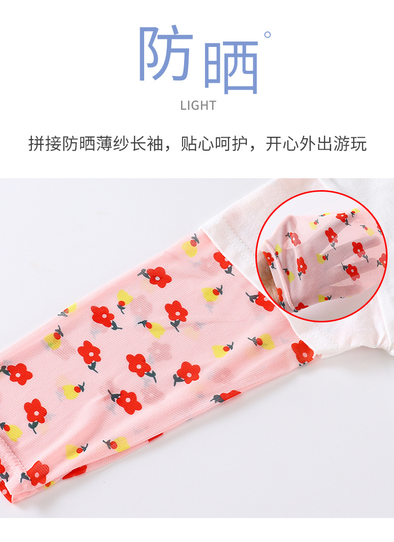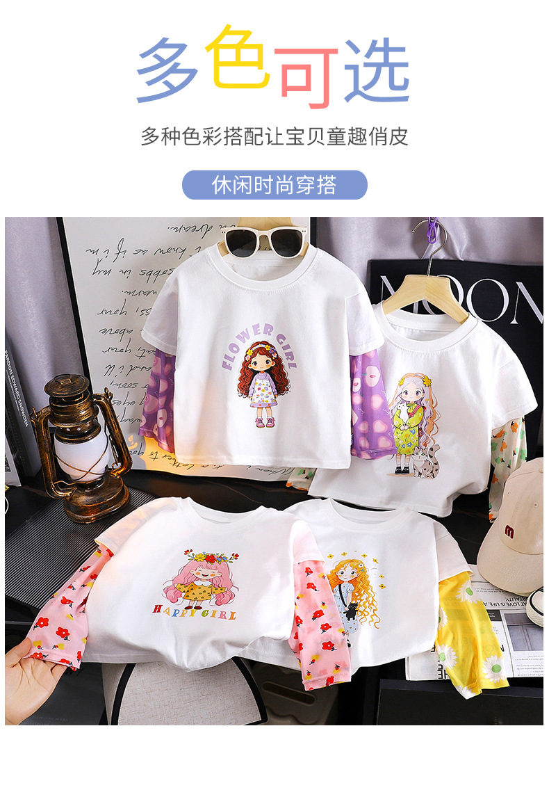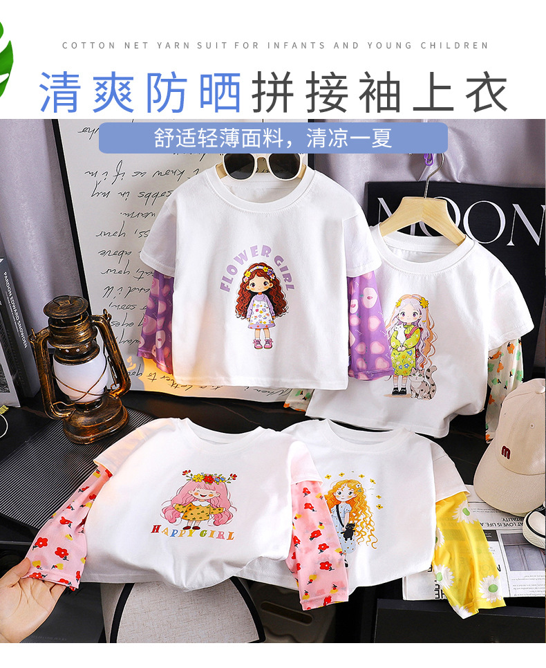 소녀 여름 새 아기 선스크린 소매 티셔츠 한국식 만화 캐릭터 인쇄 얇은 긴 소매 최고 아동복