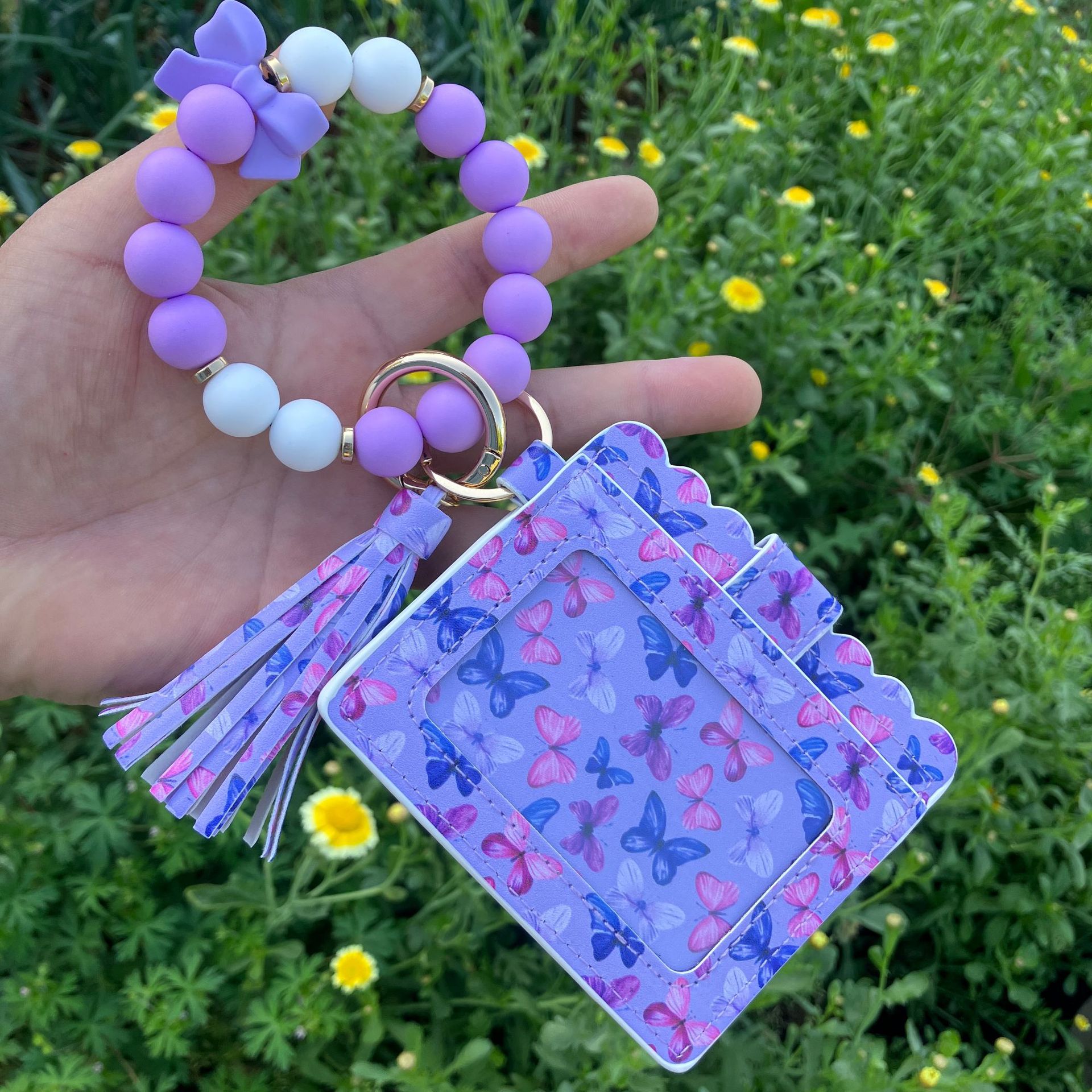 2025 새로운 레오파드 아마존 카드 케이스 손목 키 체인 동전 지갑 PU 가죽 나비 팔찌 펜던트
