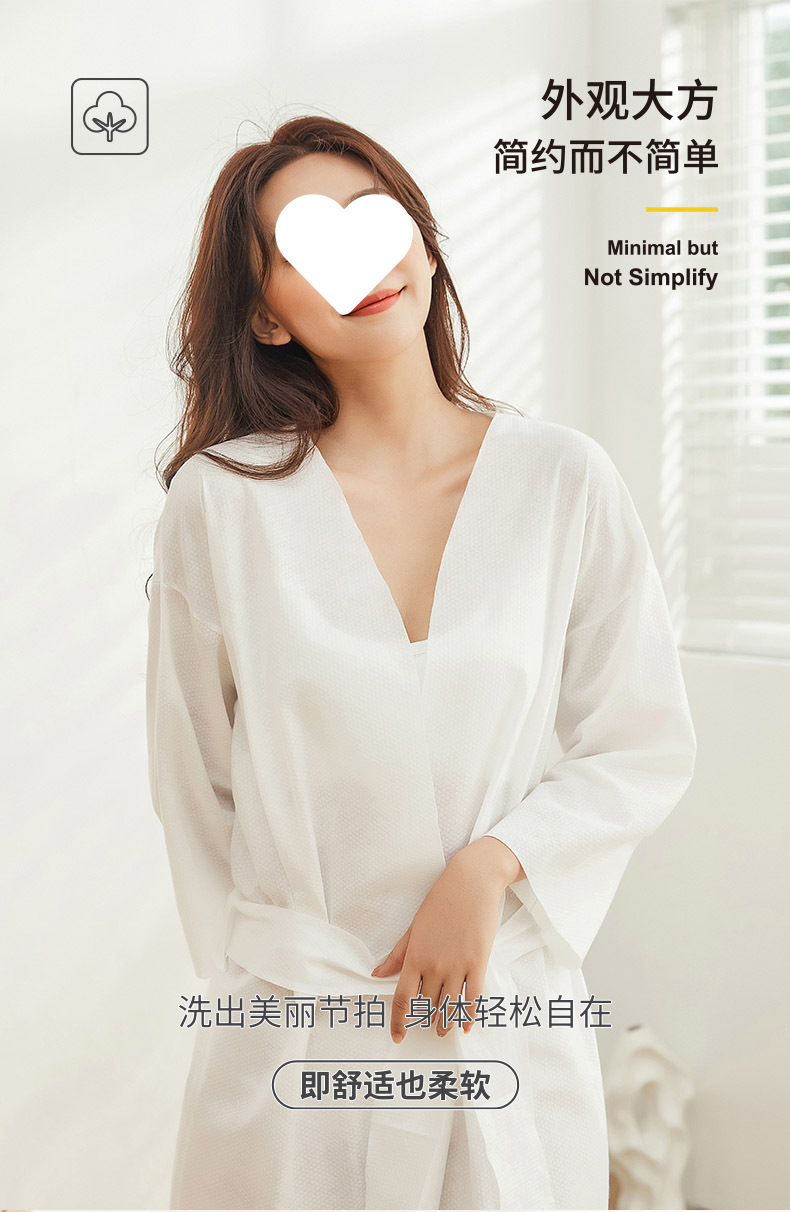 • 일회용 목욕가운, 무지 흰색, 길이 90cm, 무게 50