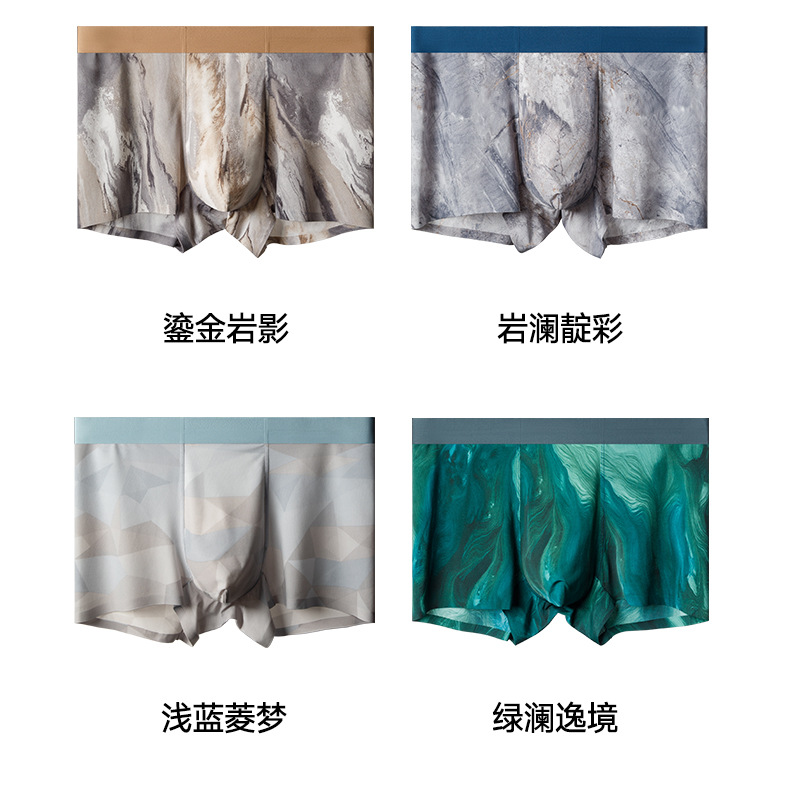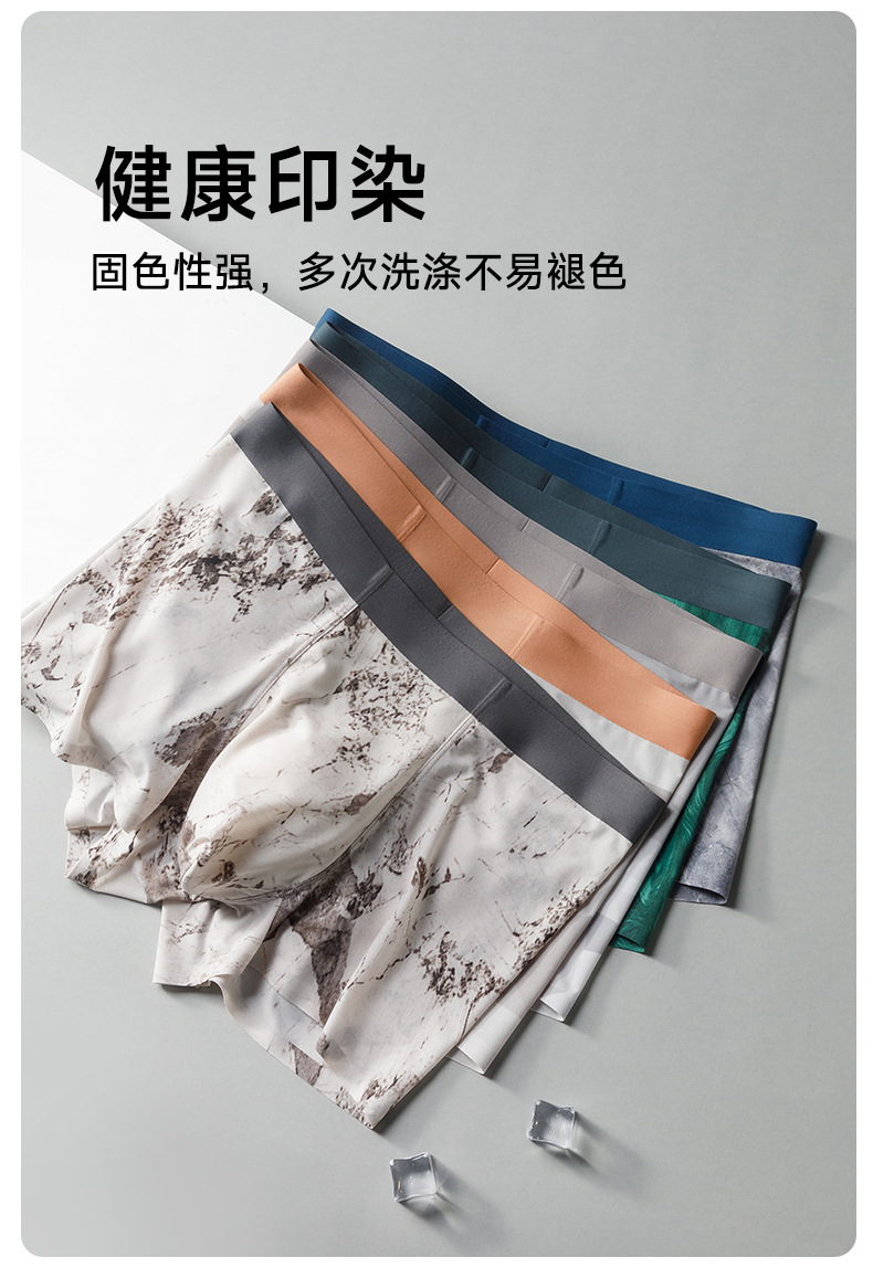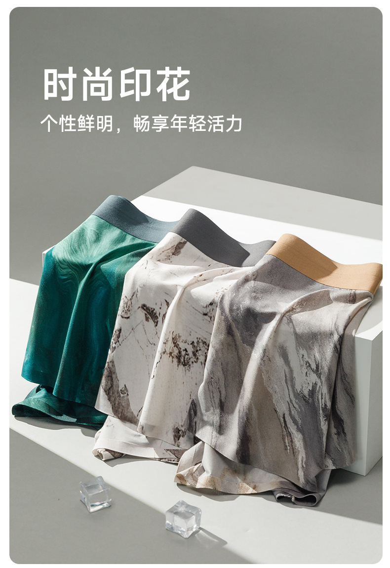 남성용 인쇄 메쉬 통기성 얼음 실크 속옷 2025 여름 새로운 얇은 원활한 소년의 사각형 복서 반바지 남성용스토어 가기