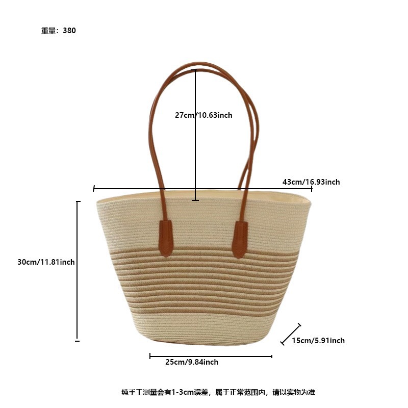 새로운 여름 줄무늬 어깨 통근 밀짚 가방 새로운 대용량 캐주얼 패션 여성 해변 비치 토트 백
