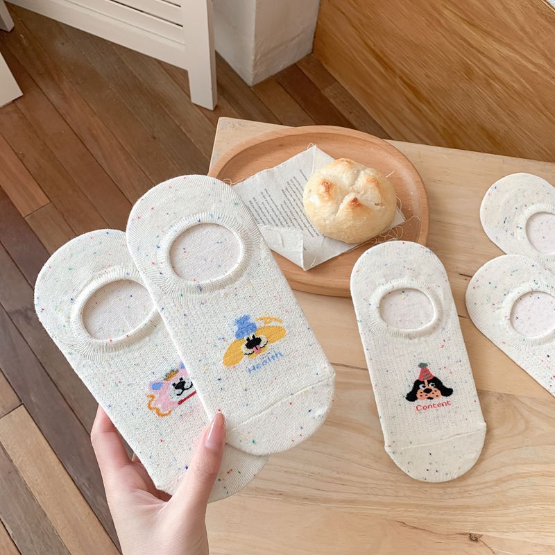 로우탑, 다재다능하고 귀엽고 어린애 같은 강아지 아이디어 원사 미끄럼 방지 얕은 입 보트 양말 도매 피부 친화적인 부드러운 여성용 여름 양말