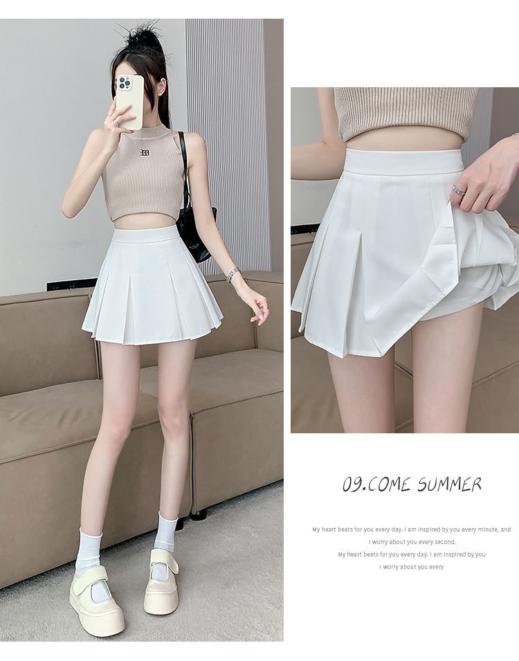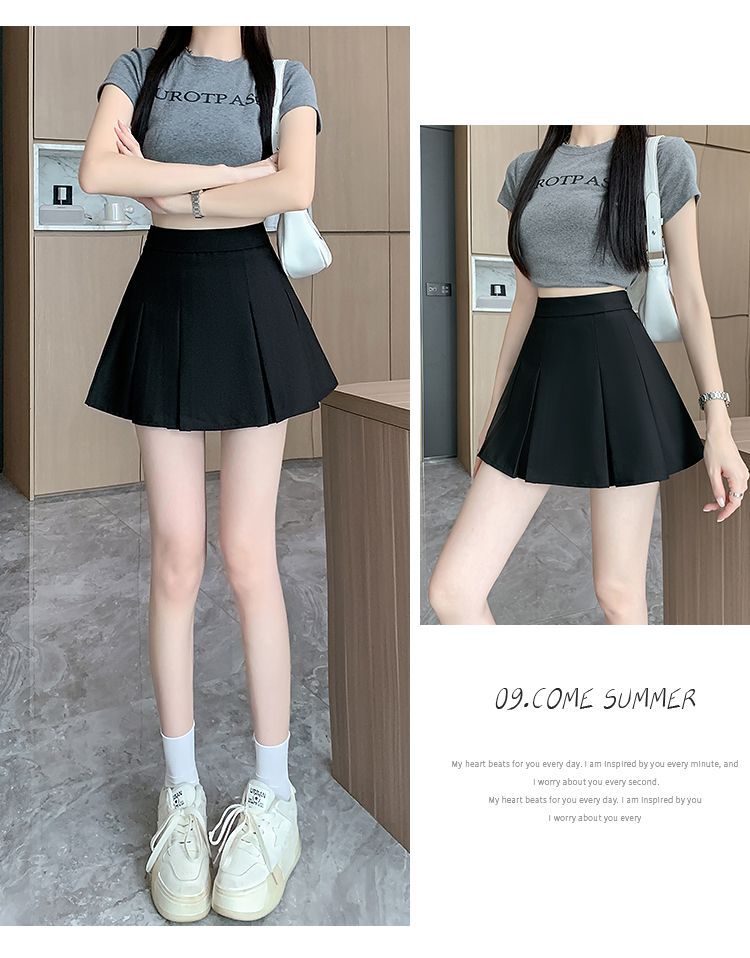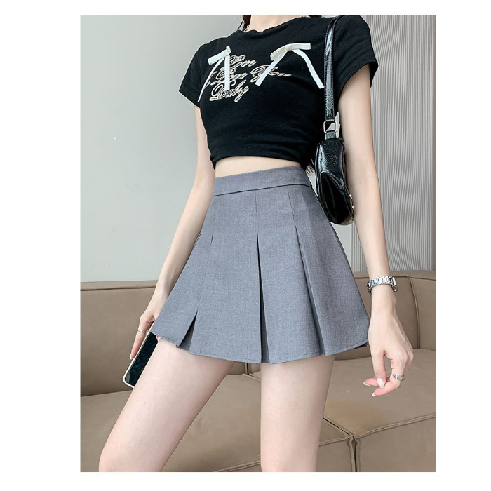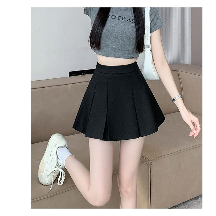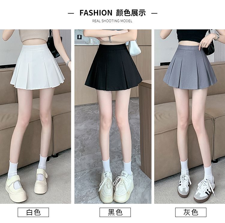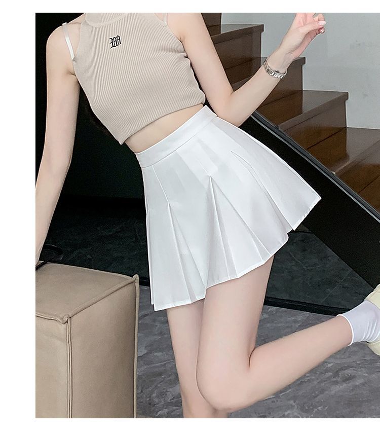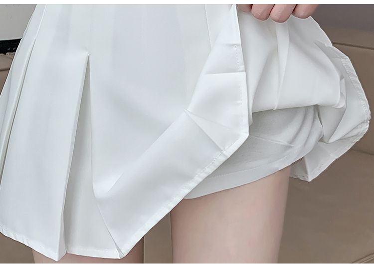 여름 여성을 위한 한국식 플리츠 스커트 새로운 스타일 쁘띠 캐주얼 하이웨이스트 슬림 A라인 푹신한 정장 숏팬츠스토어 가기
