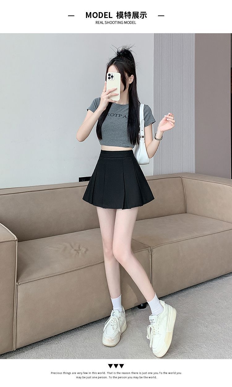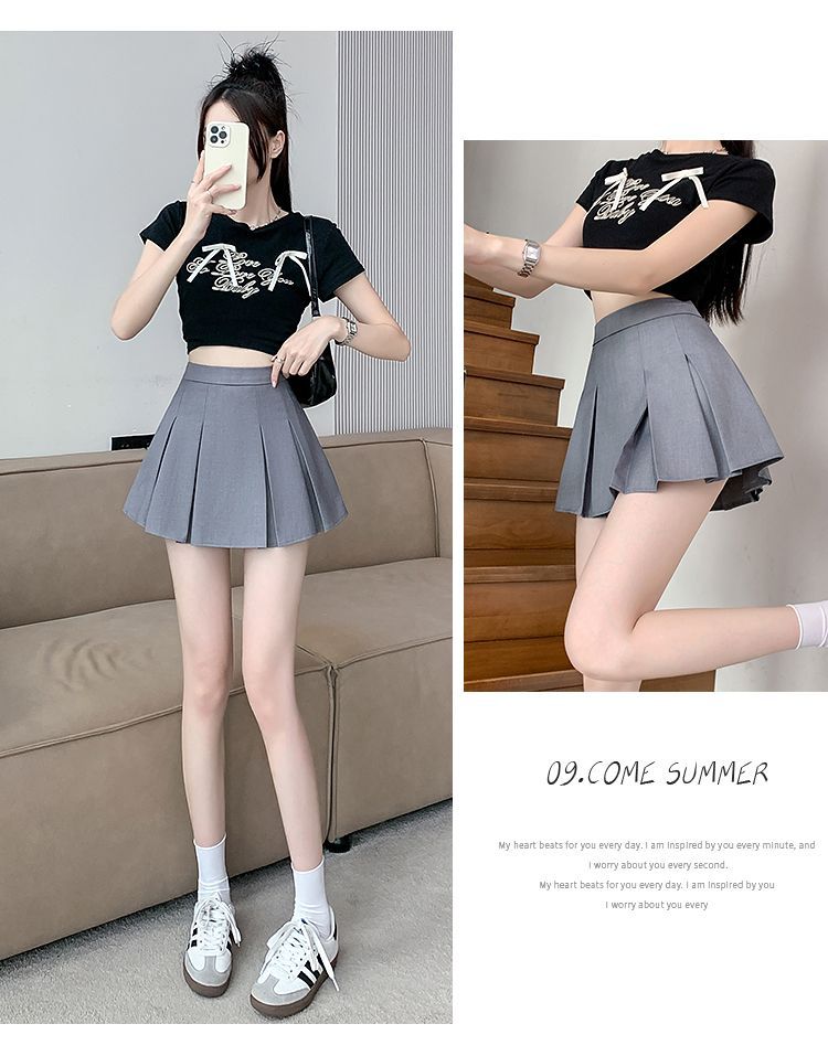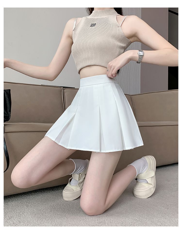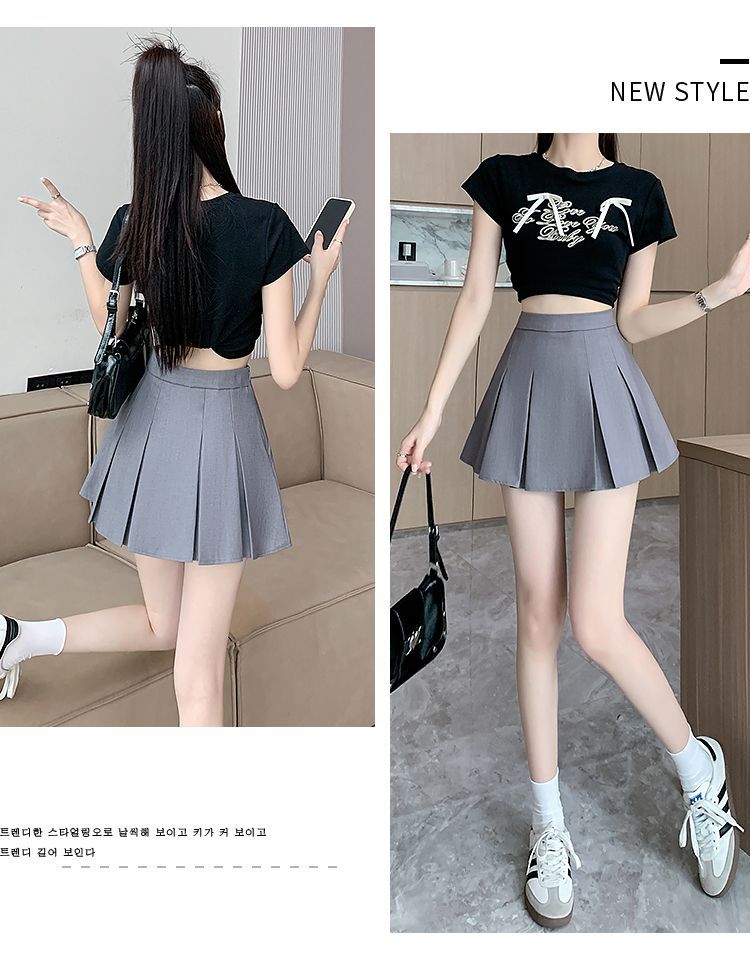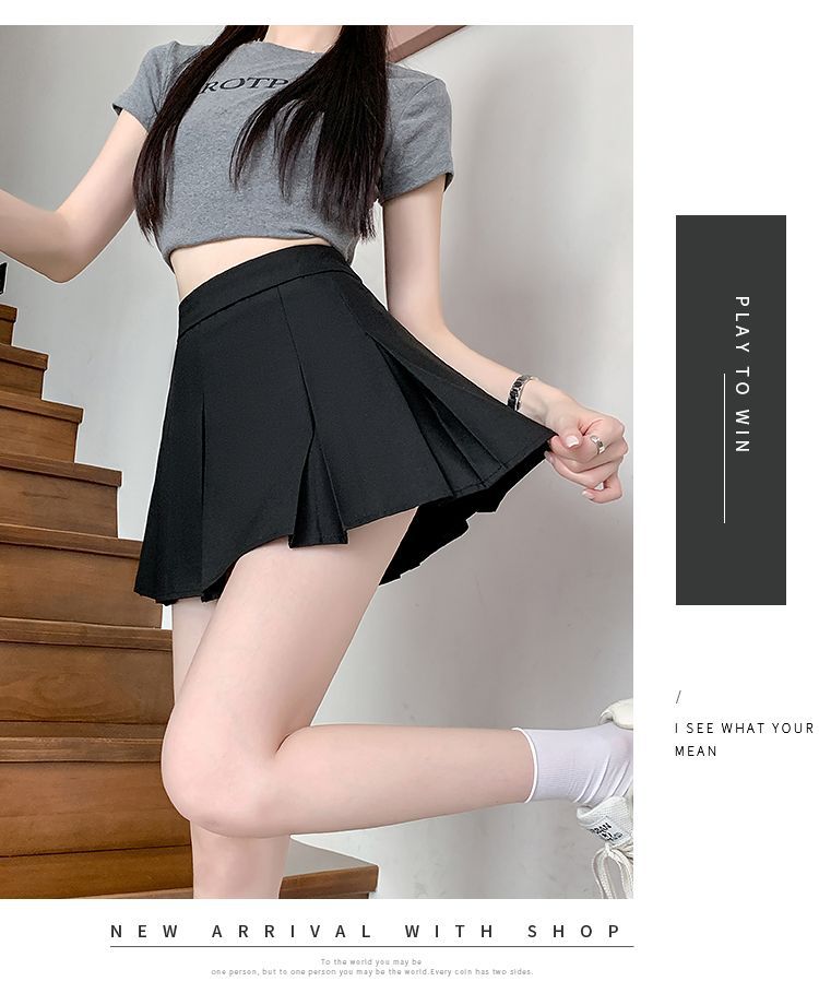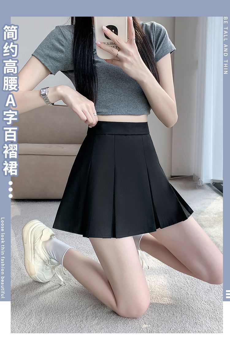 여름 여성을 위한 한국식 플리츠 스커트 새로운 스타일 쁘띠 캐주얼 하이웨이스트 슬림 A라인 푹신한 정장 숏팬츠스토어 가기